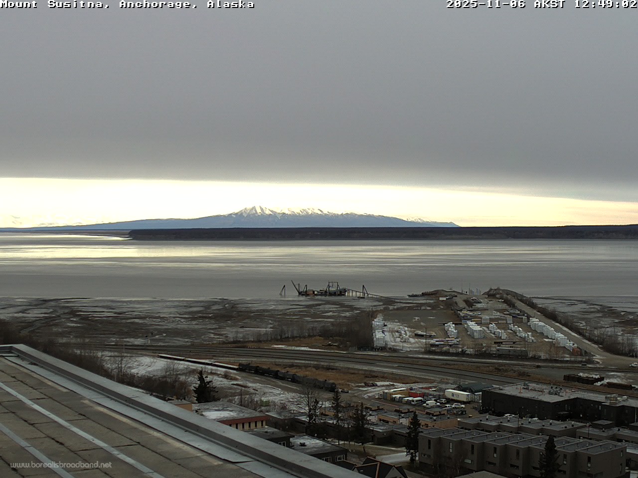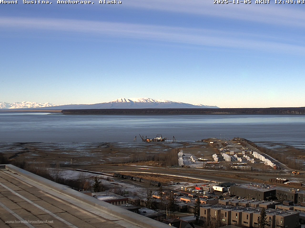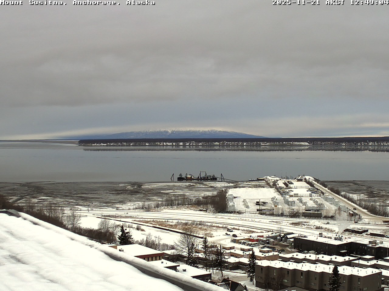 Anchorage, Alaska, USA - 191.9 km von Anchor Point: Midtown Anchorage - Diese Webcam befindet sich auf dem Denali Towers North Building und blickt nach Südosten. Das große einstöckige Gebäude in der Bildmitte ist die Sears Mall. Der einstöckige Gebäudekomplex auf der linken Seite ist die Fred Meyer Shopping Mall.