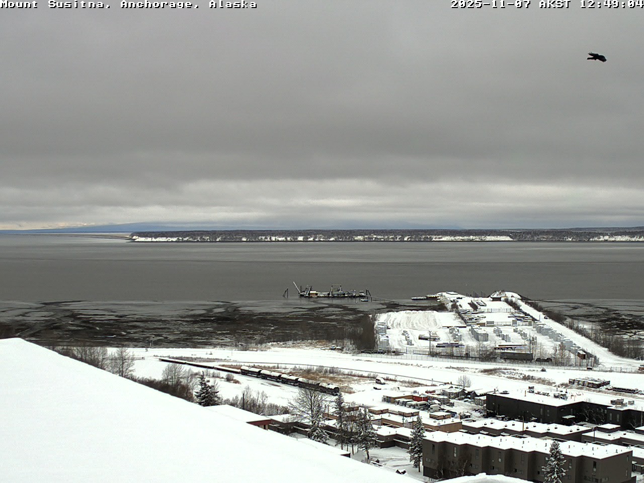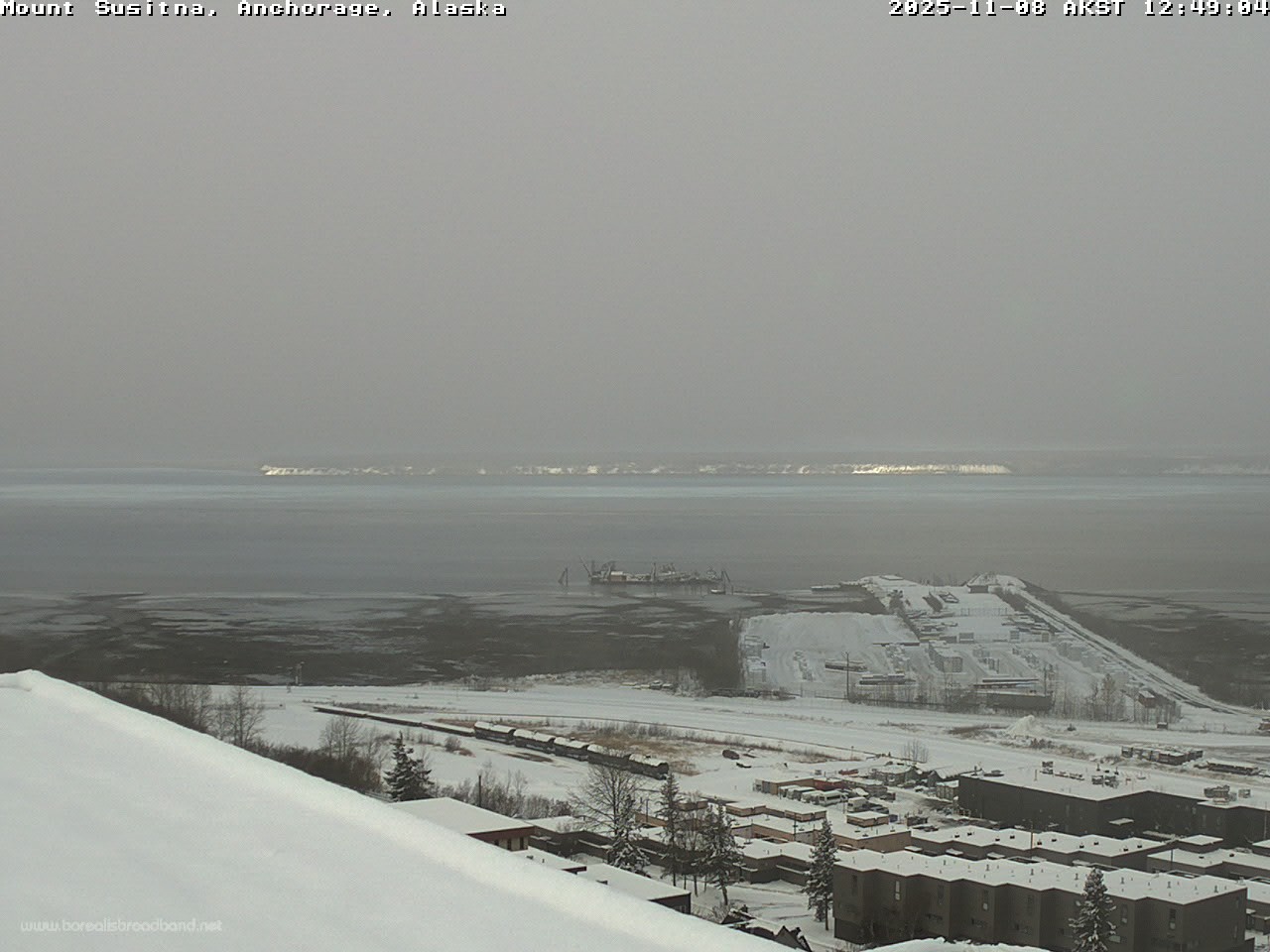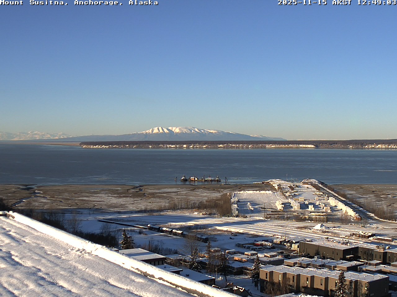 Anchorage, Alaska, USA - 191.9 km von Anchor Point: Midtown Anchorage - Diese Webcam befindet sich auf dem Denali Towers North Building und blickt nach Südosten. Das große einstöckige Gebäude in der Bildmitte ist die Sears Mall. Der einstöckige Gebäudekomplex auf der linken Seite ist die Fred Meyer Shopping Mall.