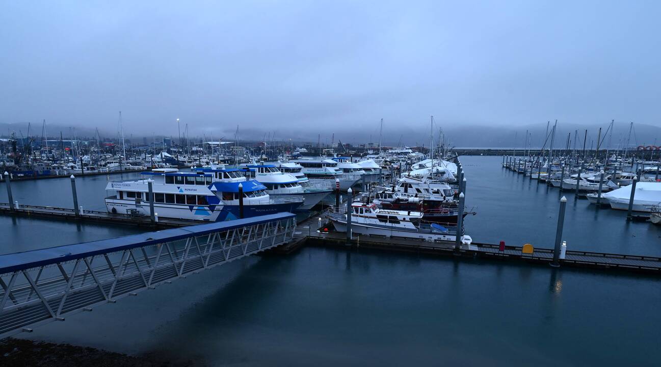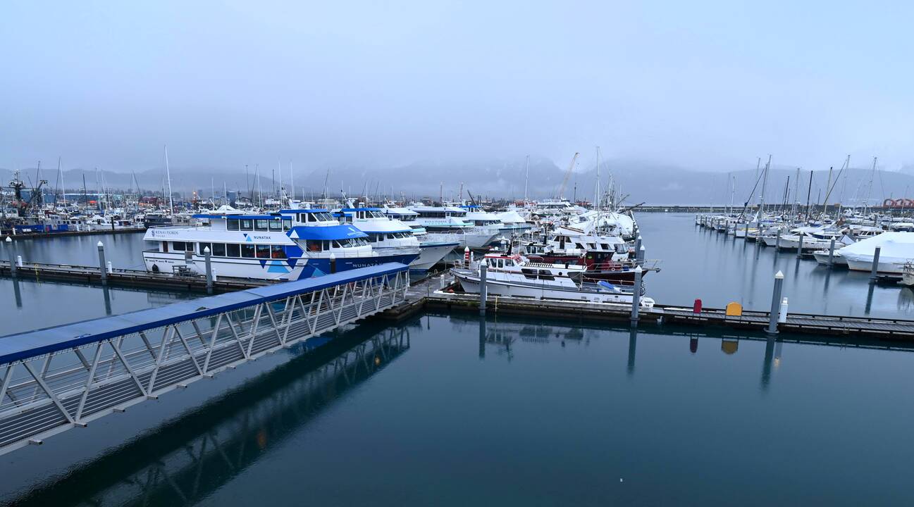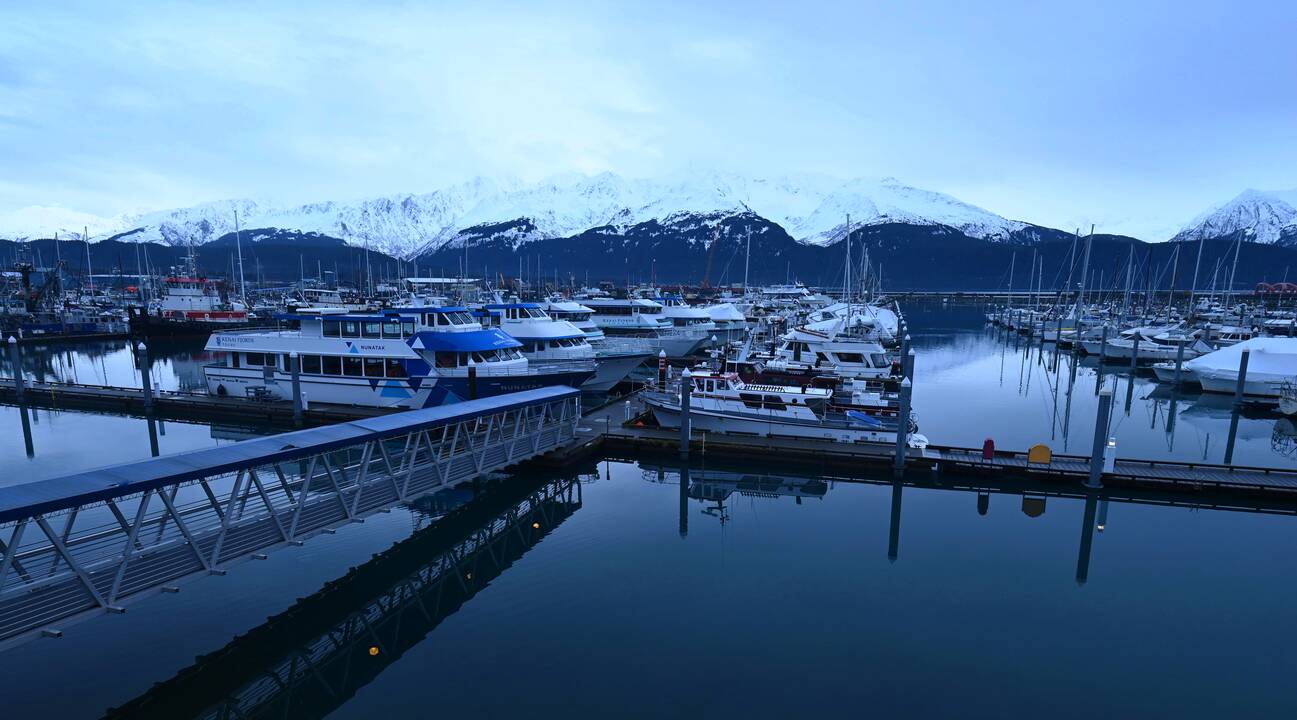 Anchorage, Alaska, USA - 191.9 km von Anchor Point: Downtown Anchorage - Ein grossartiger Panoramablick über die Skyline von Anchorage Richtung NW. Im Hintergrund sind Cook Inlet und Knick Arm zu sehen - bei guter Sicht sogar der fast 150 Meilen entfernte Mount McKinley.