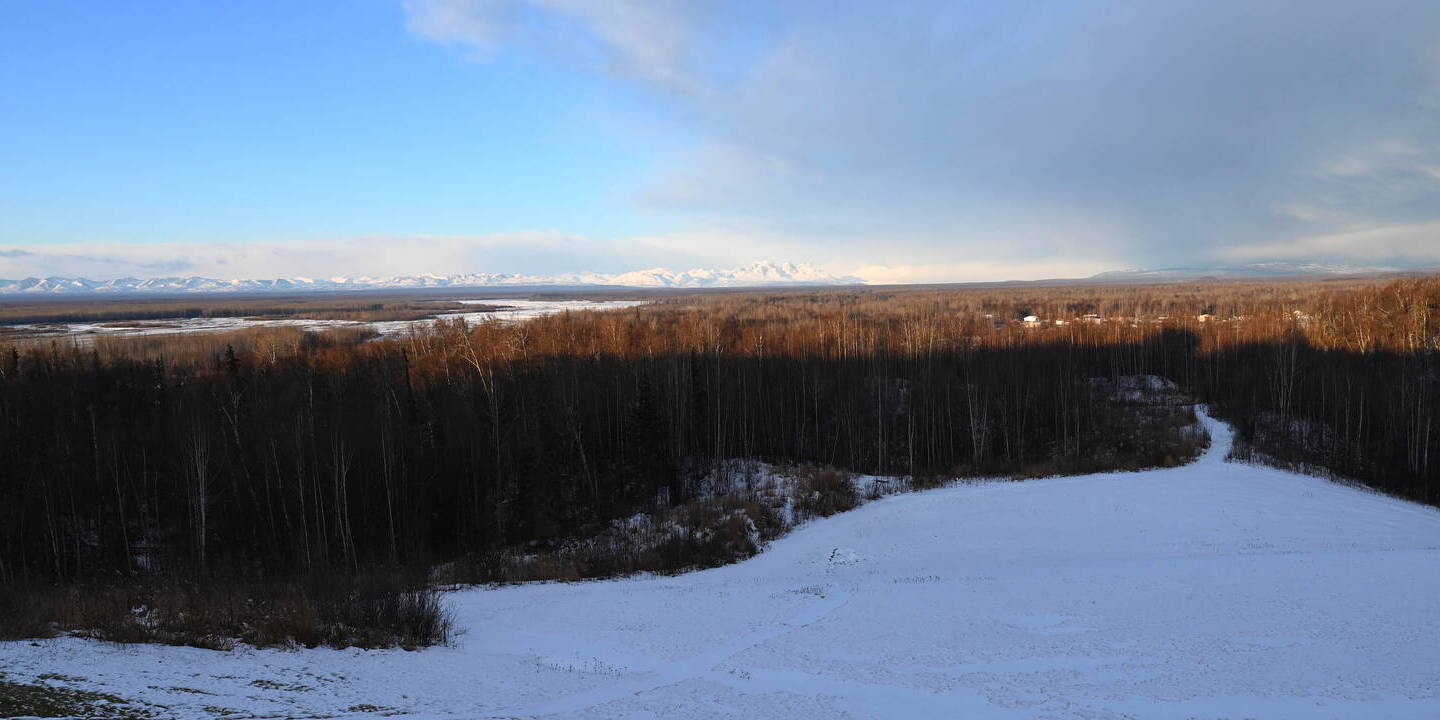 Anchorage, Alaska, USA - 422.4 km von Dogpatch: Midtown Anchorage - Diese Webcam befindet sich auf dem Denali Towers North Building und blickt nach Südosten. Das große einstöckige Gebäude in der Bildmitte ist die Sears Mall. Der einstöckige Gebäudekomplex auf der linken Seite ist die Fred Meyer Shopping Mall.