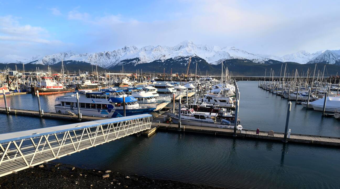 Anchorage, Alaska, USA - 59.2 km von Silvertip: Downtown Anchorage - Ein grossartiger Panoramablick über die Skyline von Anchorage Richtung NW. Im Hintergrund sind Cook Inlet und Knick Arm zu sehen - bei guter Sicht sogar der fast 150 Meilen entfernte Mount McKinley.