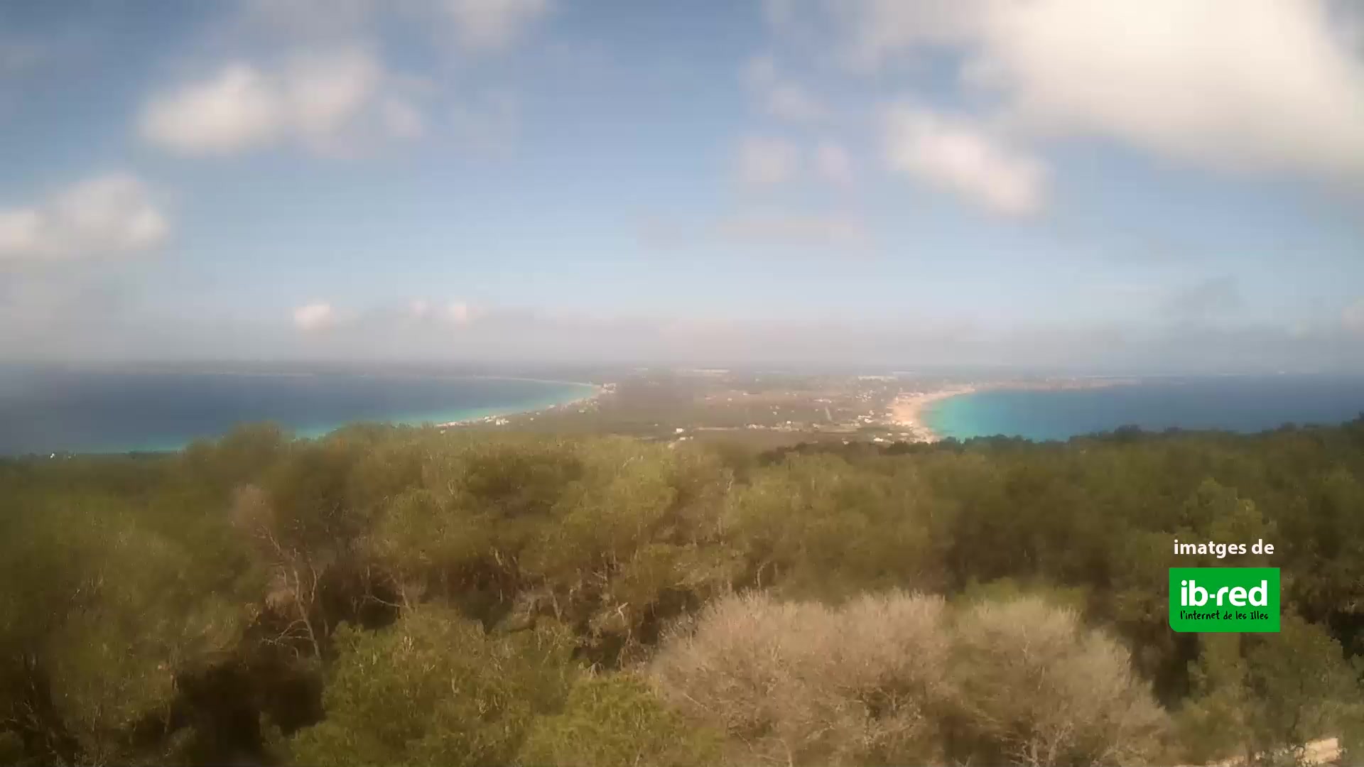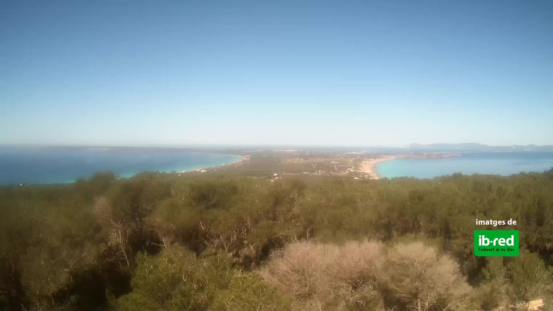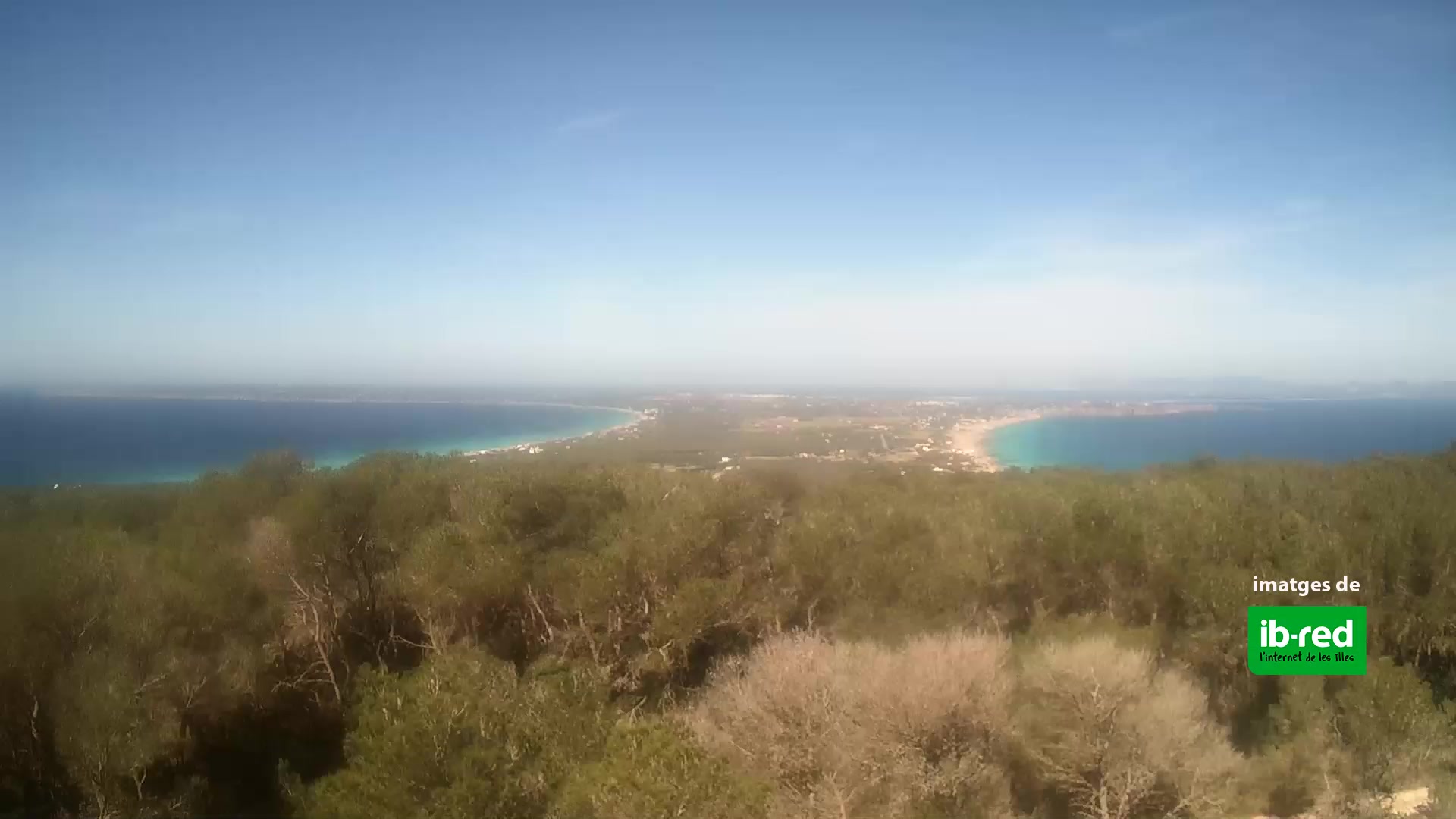 - Blick über den Strand Es Pujols auf der Insel Formentera.