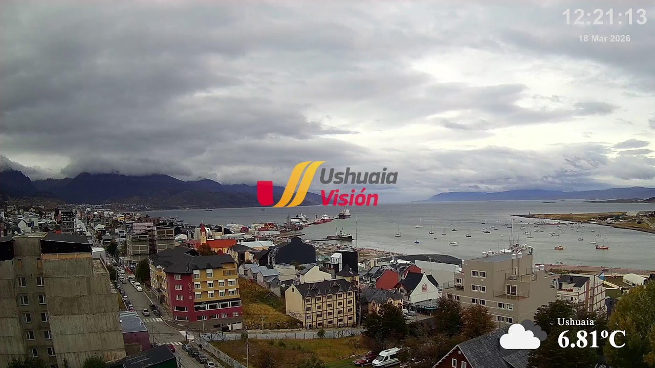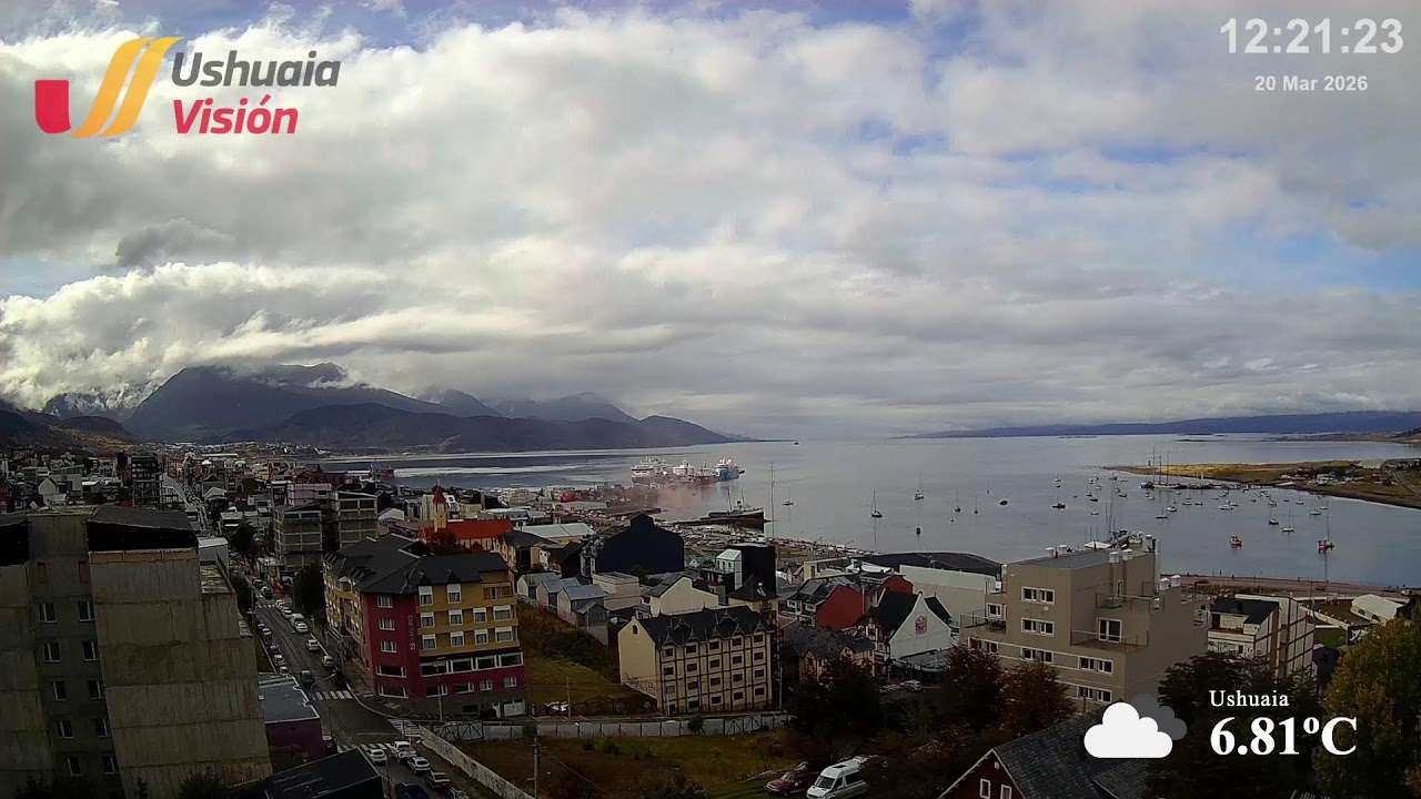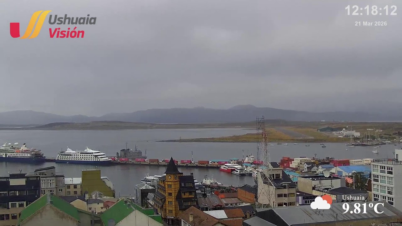 Ushuaia, Argentinien - 478.8 km von Tapi Aike: Hafen von Ushuaia - Blick über den Hafen von Ushuaia, Provinz Tierra del Fuego.