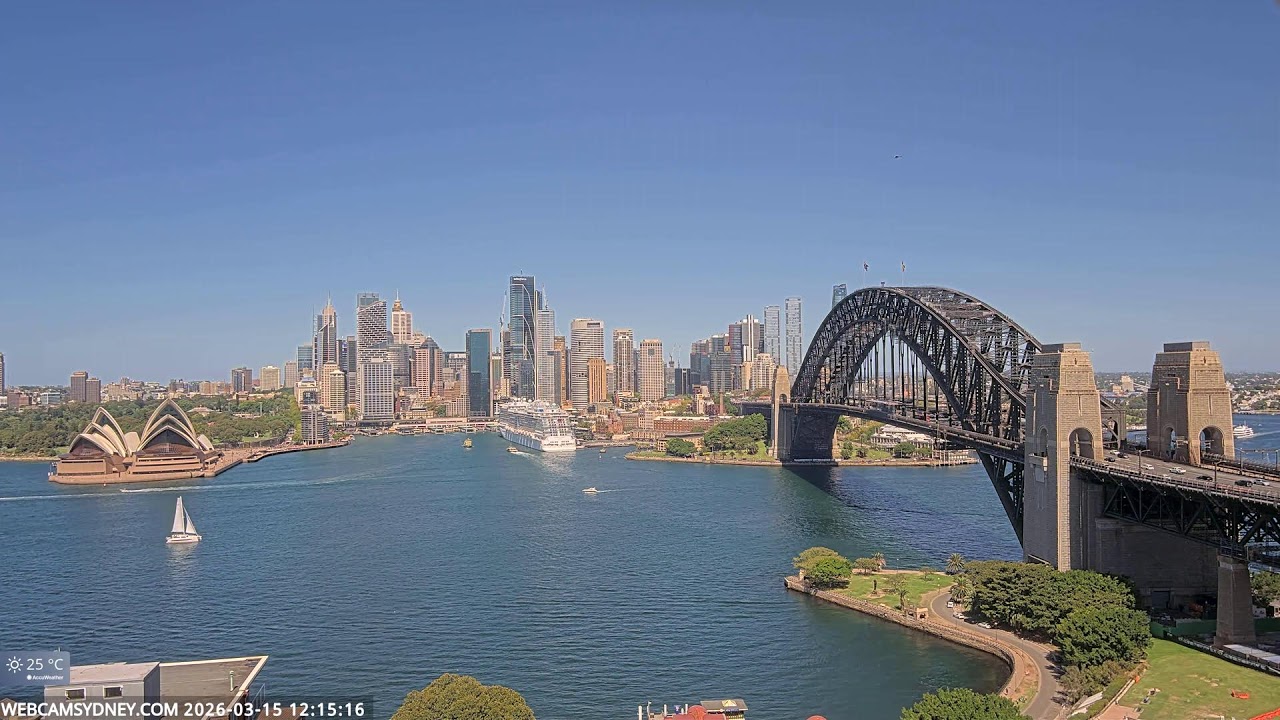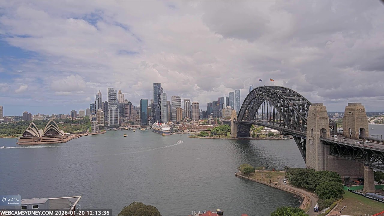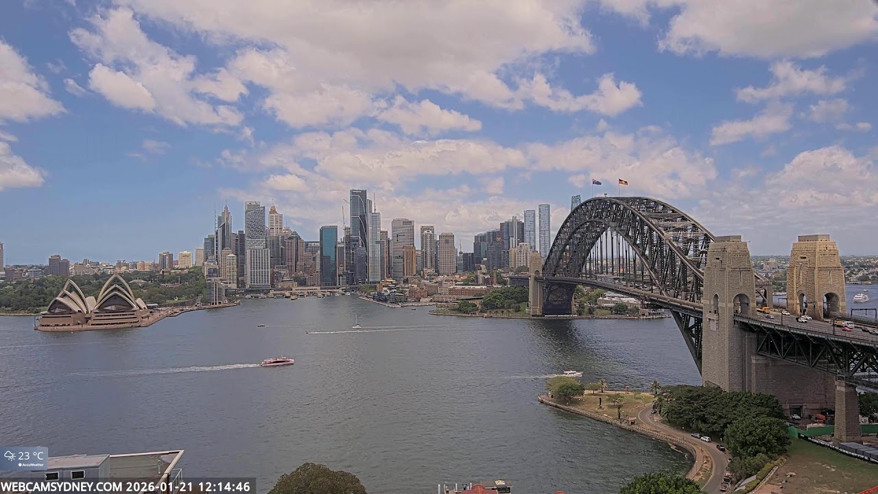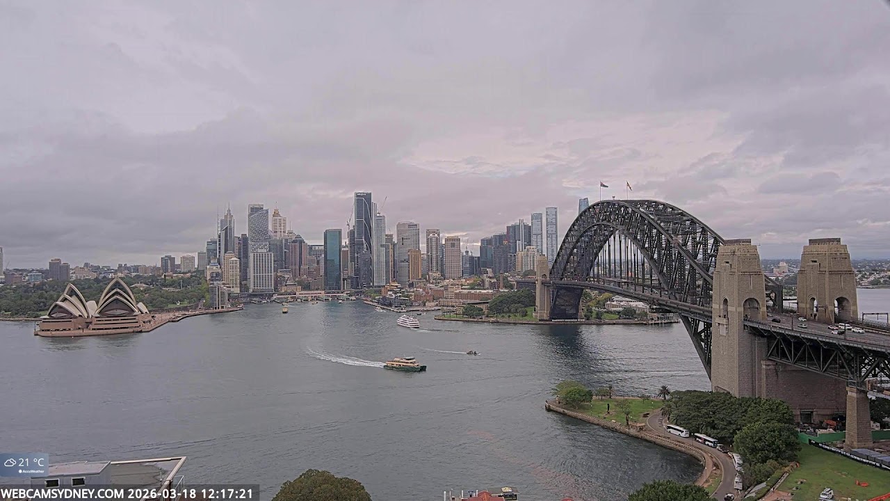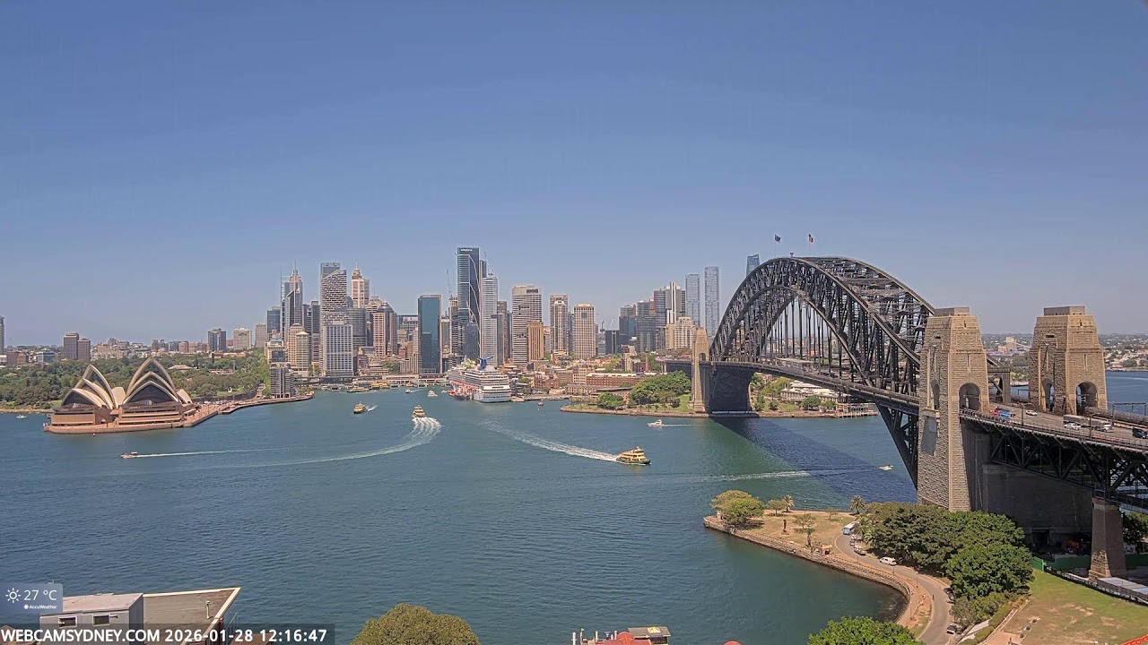Sydney, Australien - 100 km von Awaba: Stadtpanorama - Ein spektakulärer Stream auf das Zentrum von Sydney mit dem Sydney Opera House, Circular Quay, CBD, The Rocks und die Sydney Harbour Bridge.