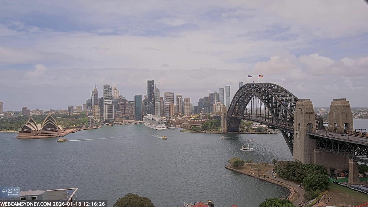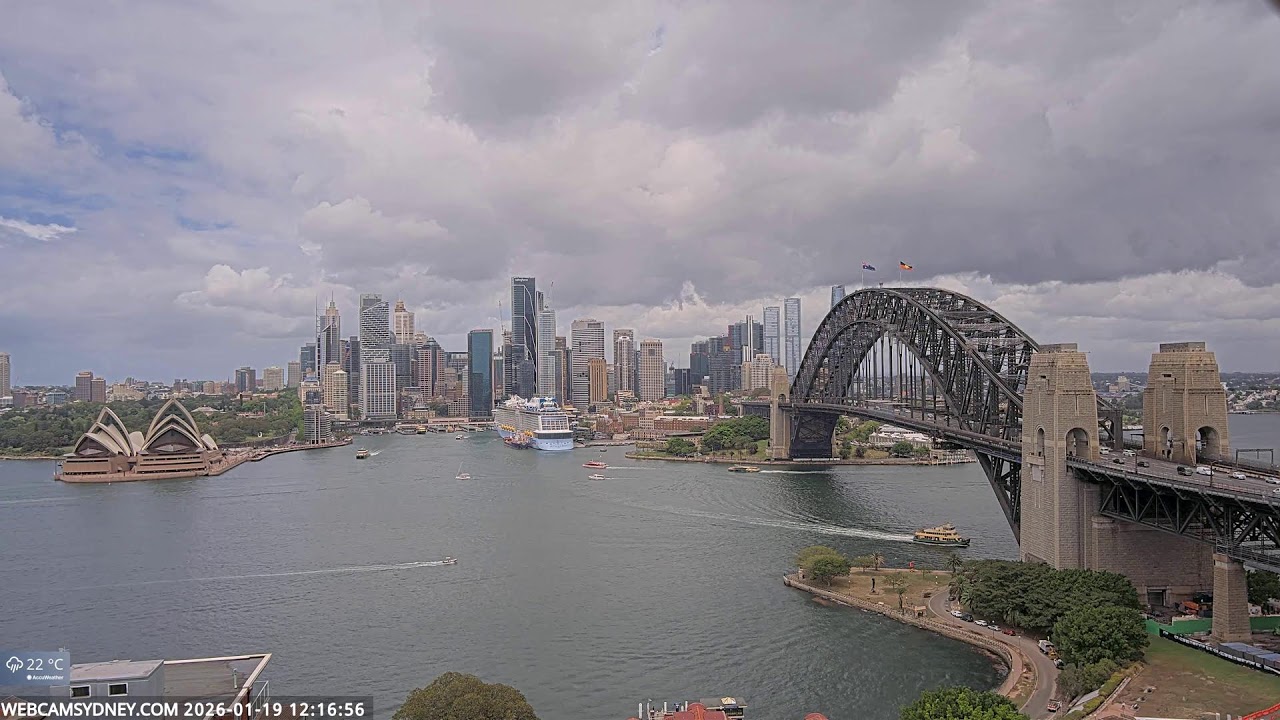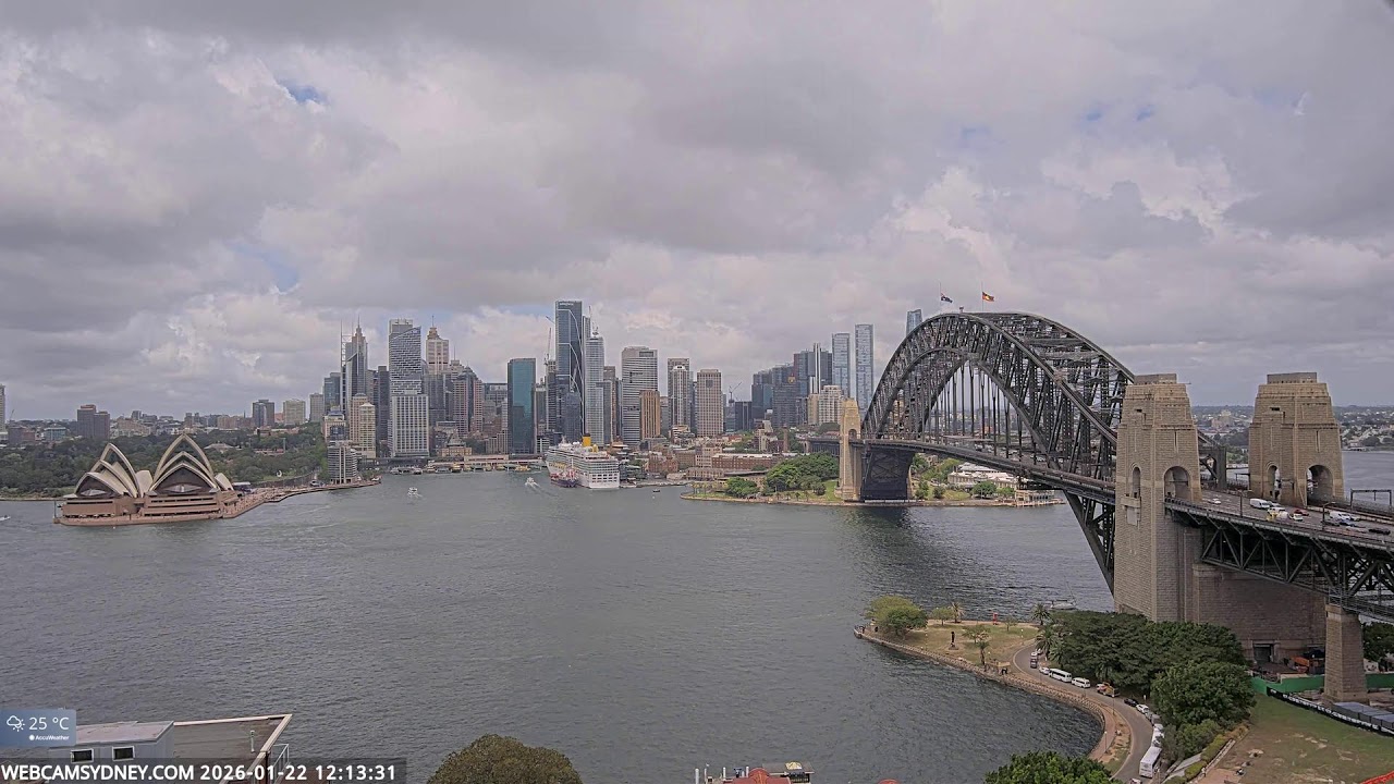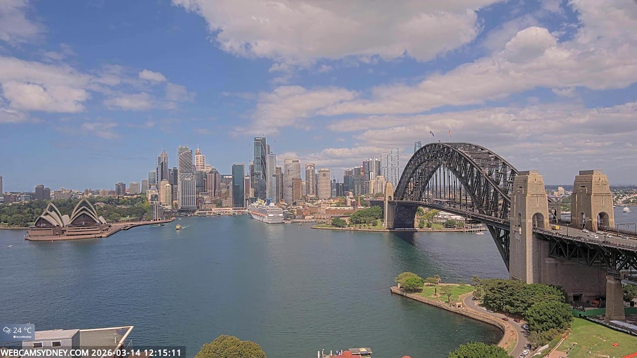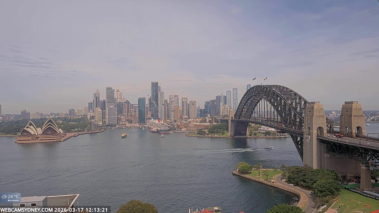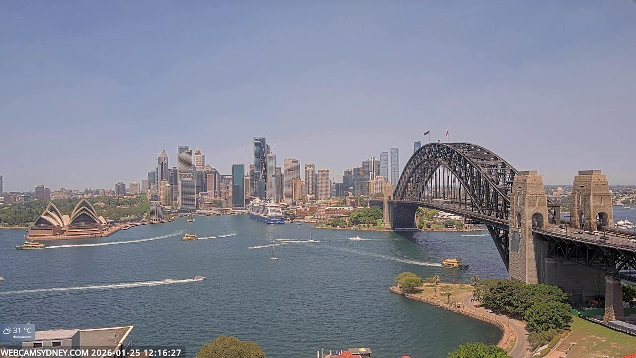 Sydney, Australien - 100 km von Awaba: Stadtpanorama - Ein spektakulärer Stream auf das Zentrum von Sydney mit dem Sydney Opera House, Circular Quay, CBD, The Rocks und die Sydney Harbour Bridge.