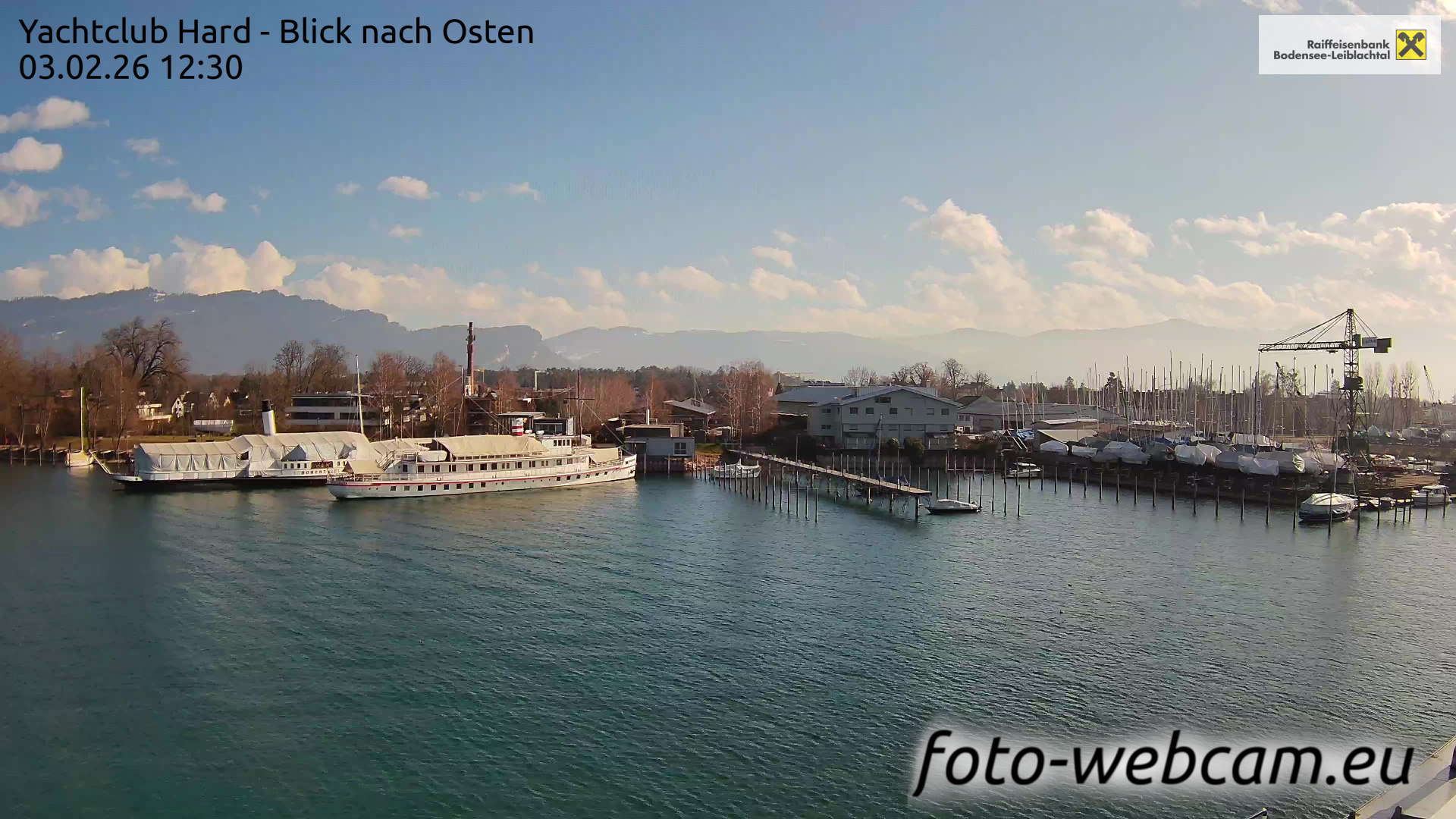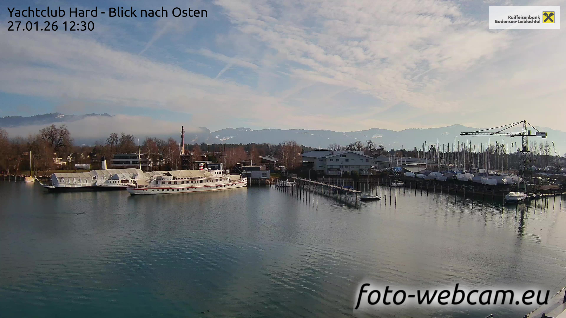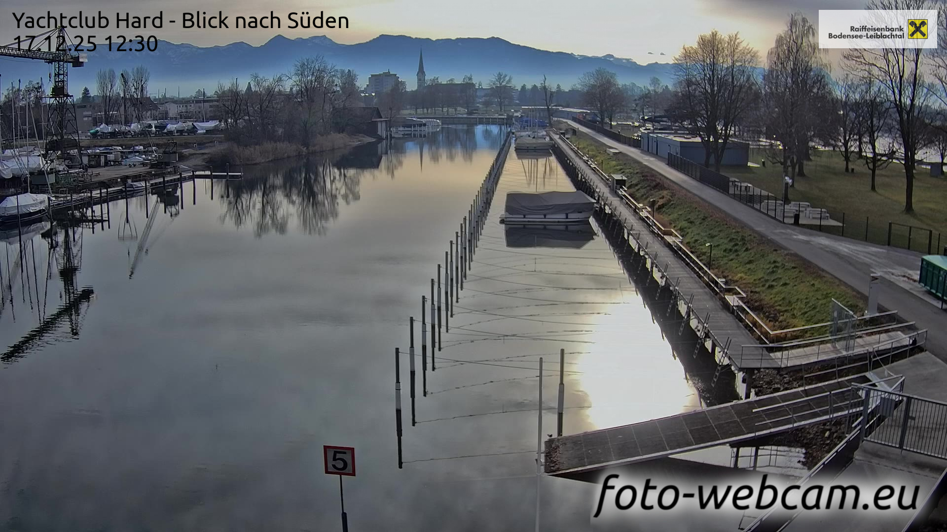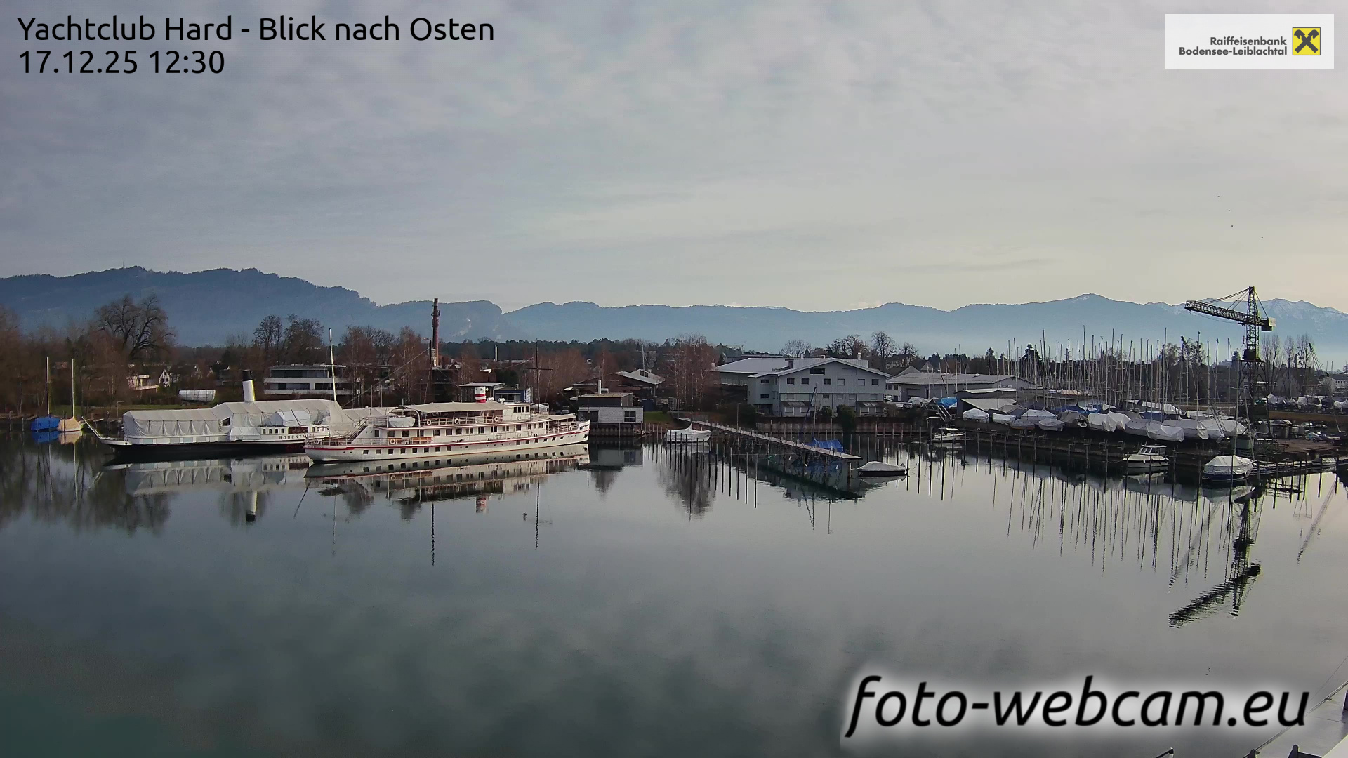 Bregenz, Österreich - 3.5 km von Alberloch: Panocam Pfänderbahn - Die Livecam befindet sich auf dem Dach der Pfänderbahn-Bergstation. Der einzigartige Rundblick über den gesamten Bodensee und 240 Alpengipfel Österreichs, Deutschlands und der Schweiz macht den Pfänder bei Bregenz, Österreich, zum berühmtesten Aussichtspunkt der Region.