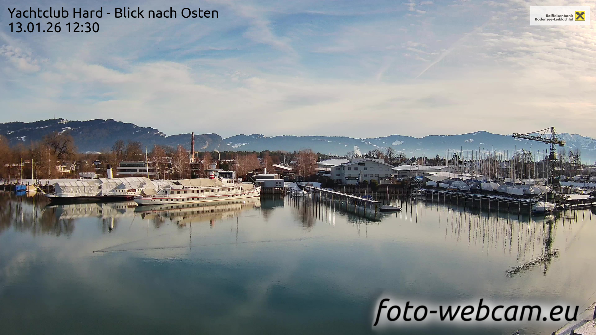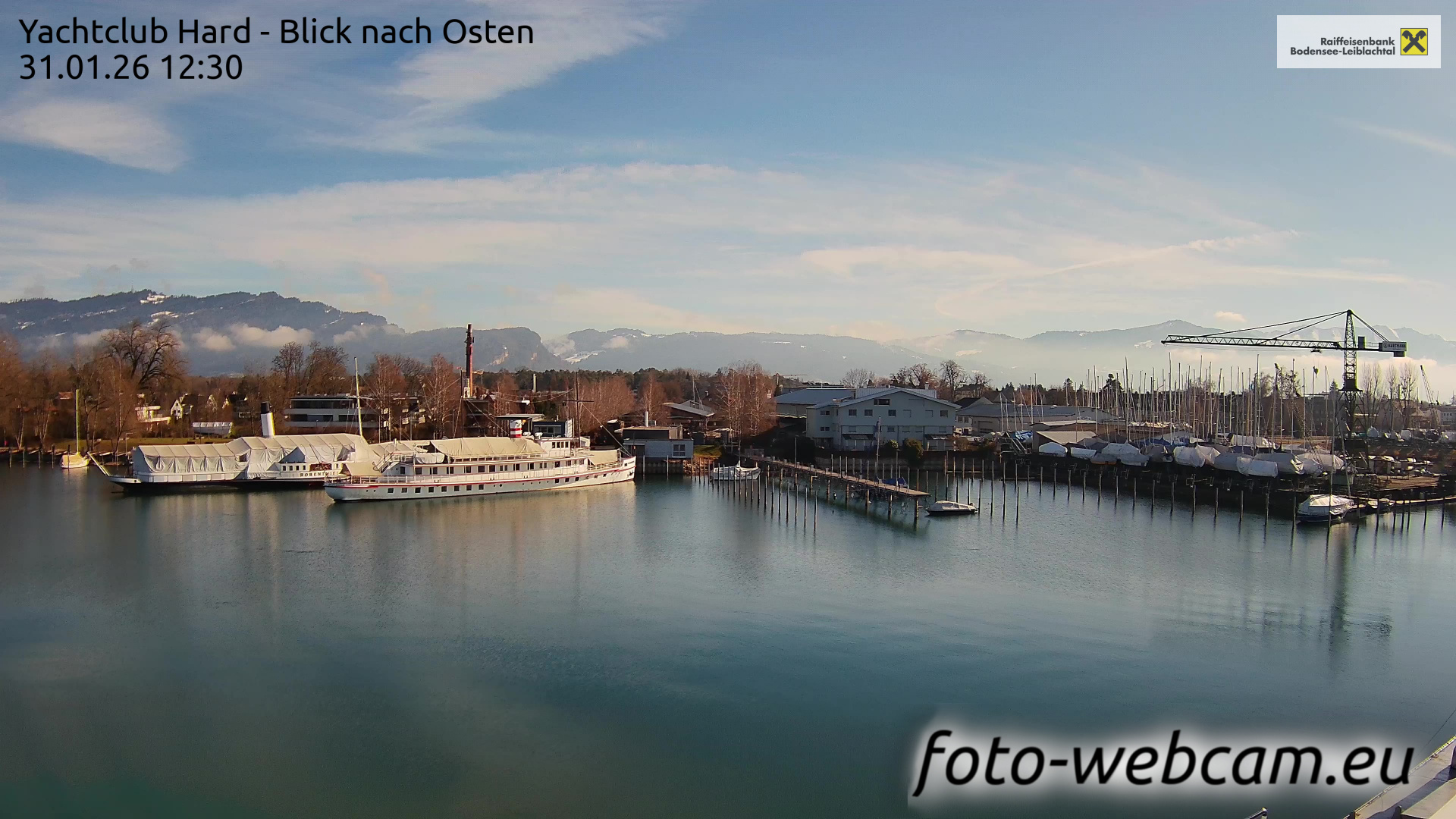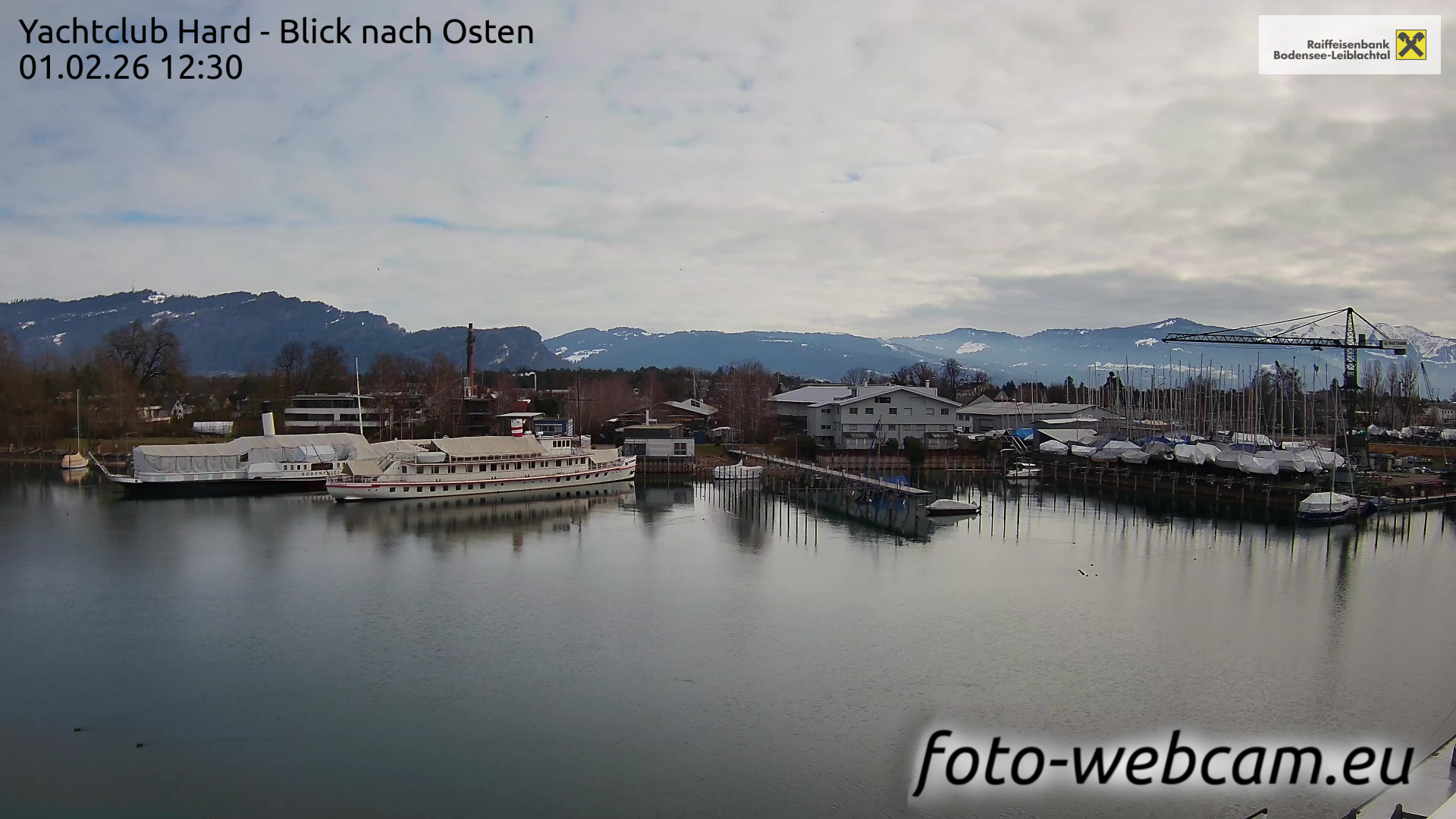 Bregenz, Österreich - 3.5 km von Alberloch: Panocam Pfänderbahn - Die Livecam befindet sich auf dem Dach der Pfänderbahn-Bergstation. Der einzigartige Rundblick über den gesamten Bodensee und 240 Alpengipfel Österreichs, Deutschlands und der Schweiz macht den Pfänder bei Bregenz, Österreich, zum berühmtesten Aussichtspunkt der Region.