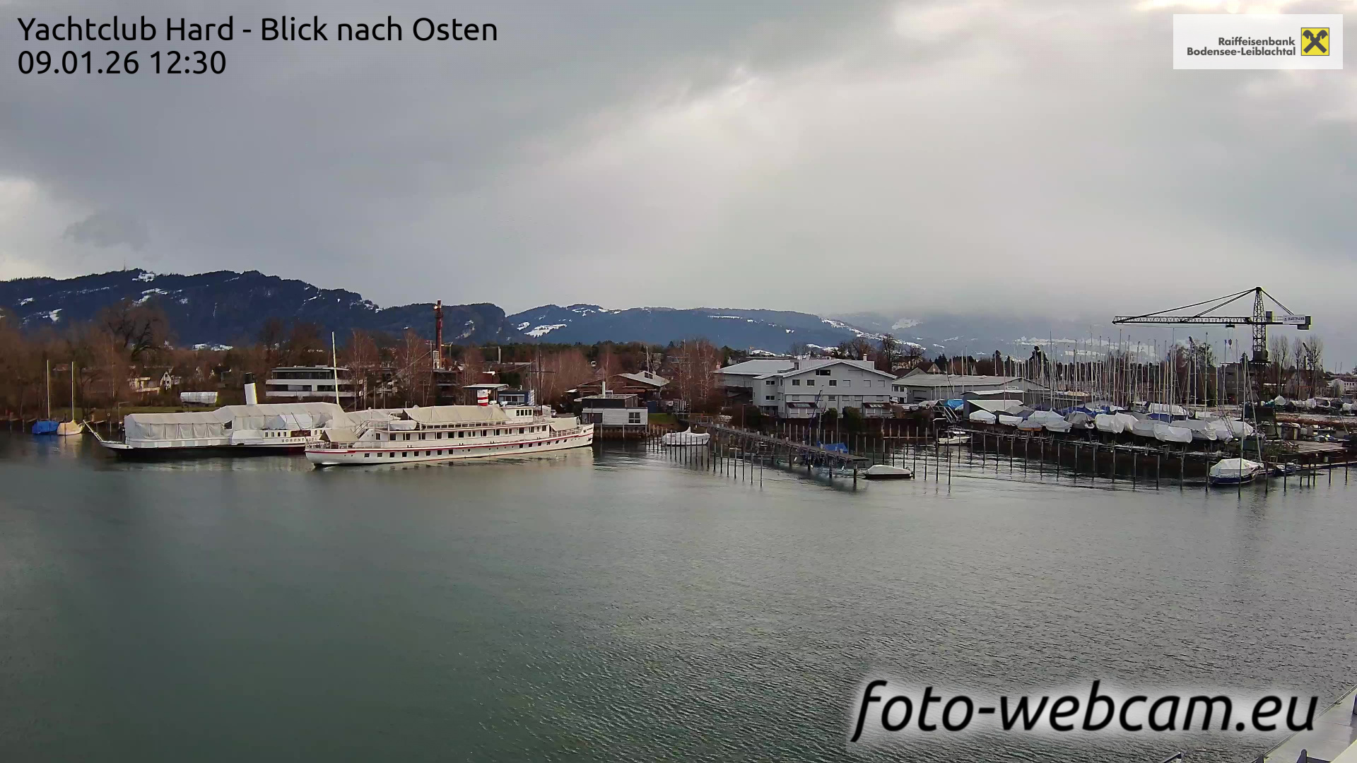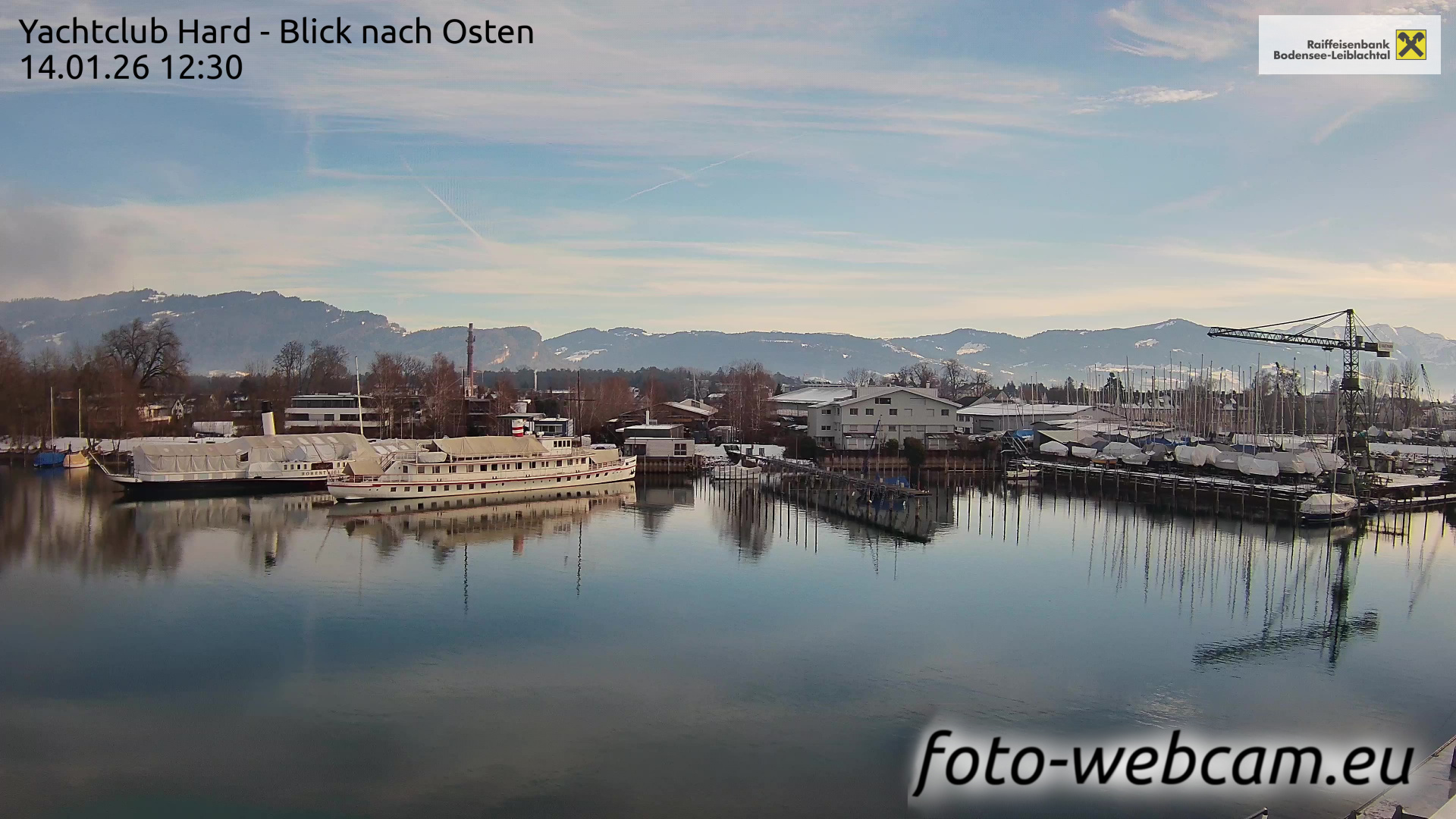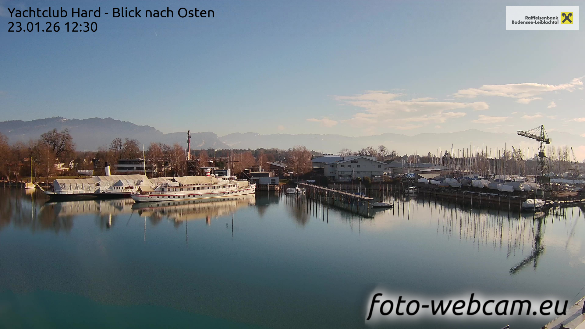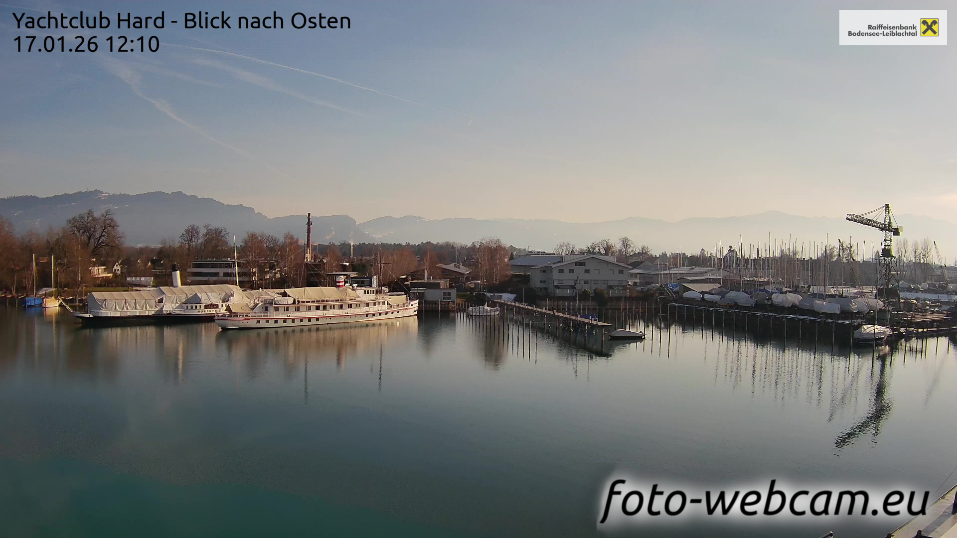 Bregenz, Österreich - 3.5 km von Alberloch: Panocam Pfänderbahn - Die Livecam befindet sich auf dem Dach der Pfänderbahn-Bergstation. Der einzigartige Rundblick über den gesamten Bodensee und 240 Alpengipfel Österreichs, Deutschlands und der Schweiz macht den Pfänder bei Bregenz, Österreich, zum berühmtesten Aussichtspunkt der Region.