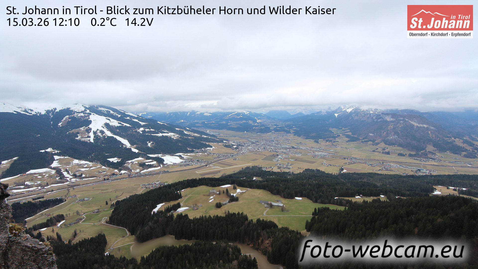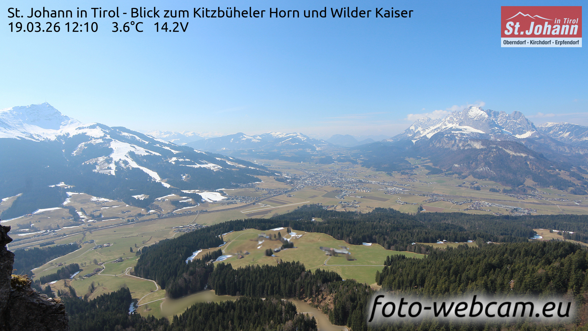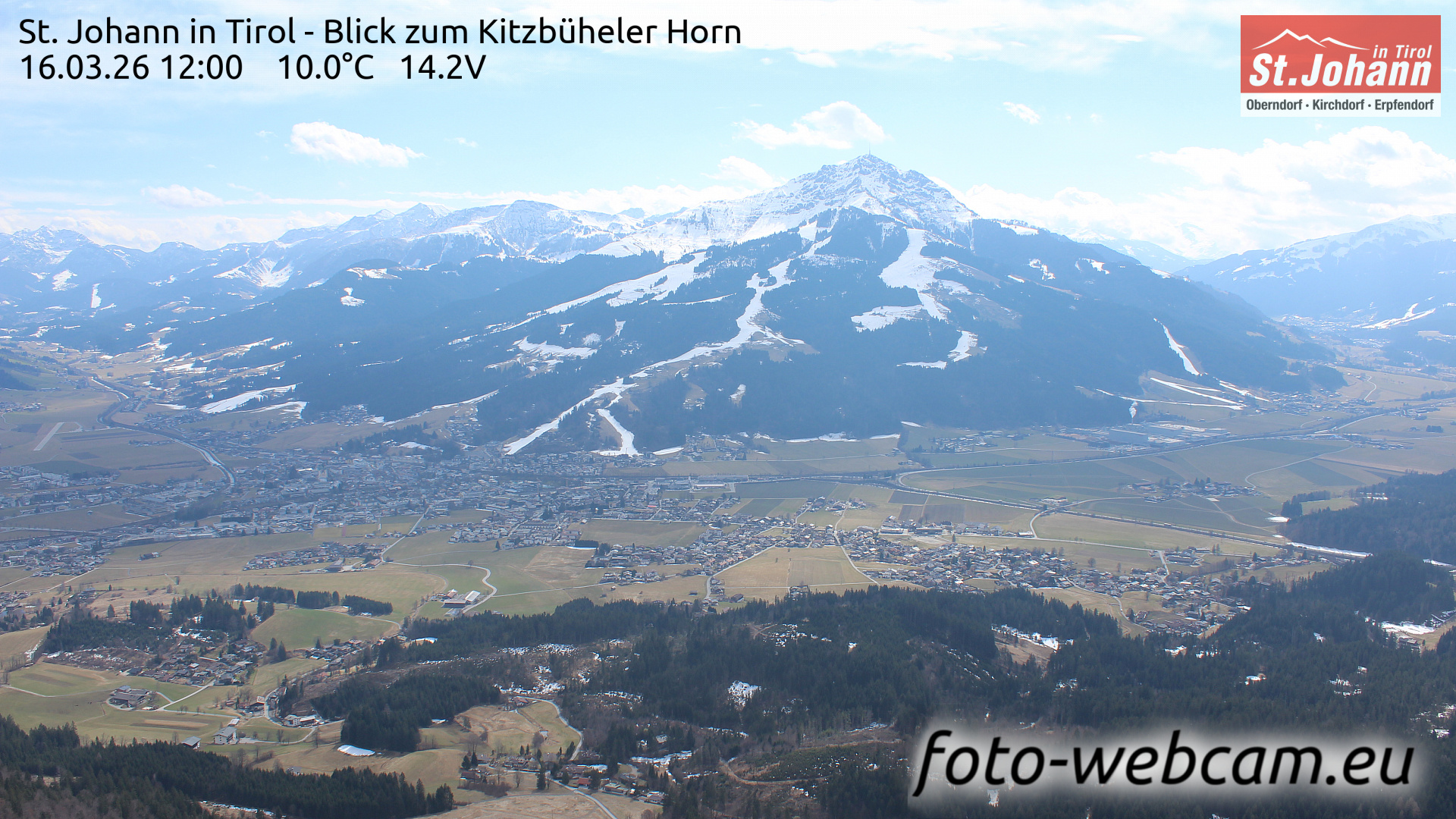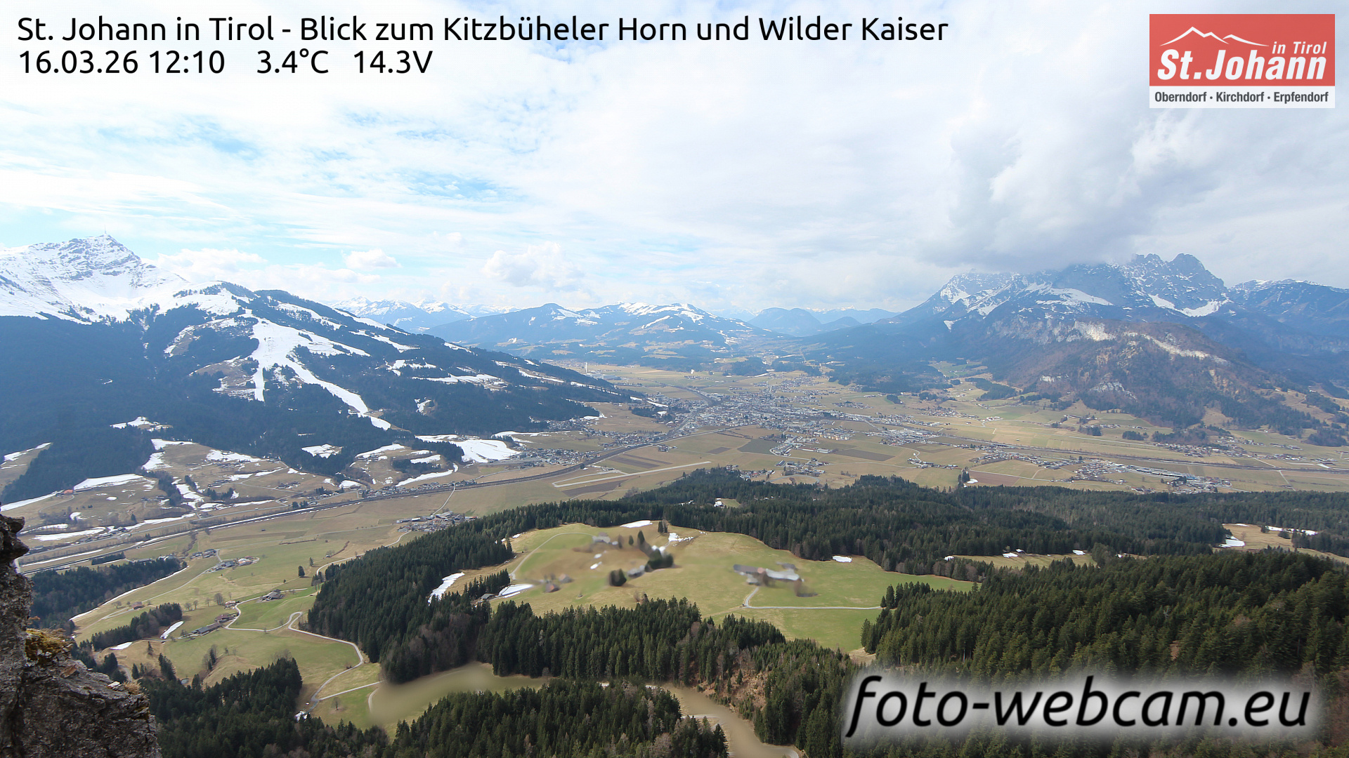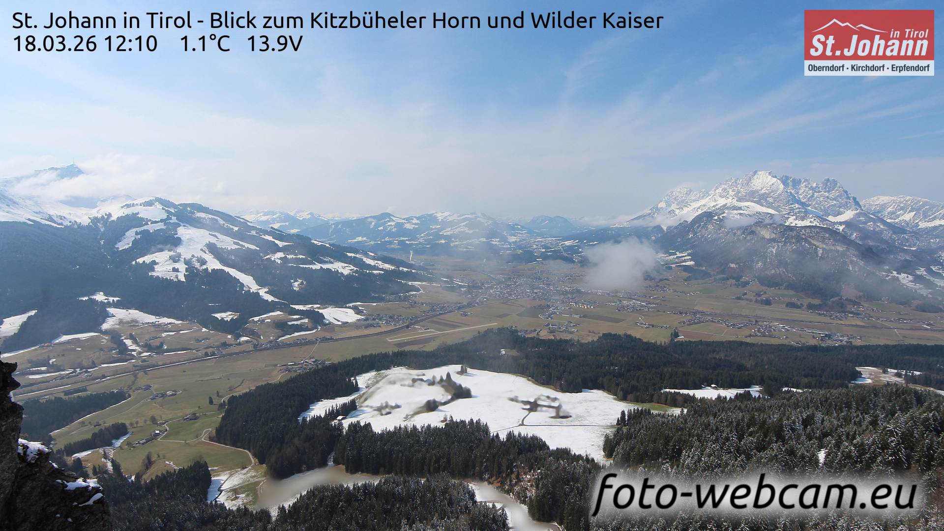 St. Johann in Tirol, Österreich - 1.6 km von Alpendorf: HD Foto-Webcam St. Johann i.T. West - St. Johann in Tirol - Kitzbüheler Horn und Wilder Kaiser.