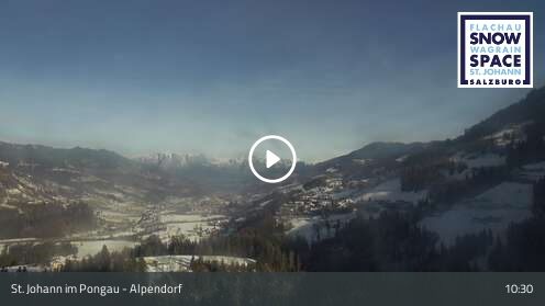 St. Johann im Pongau, Österreich - 6.4 km von Althaus: Blick über das Salzachtal - Webcam vom Hotel Alpenschlössl im Alpendorf - direkt neben der Skipiste - mit Blick über das Salzachtal. Rechts im Hintergrund das Alpenschlössl.
