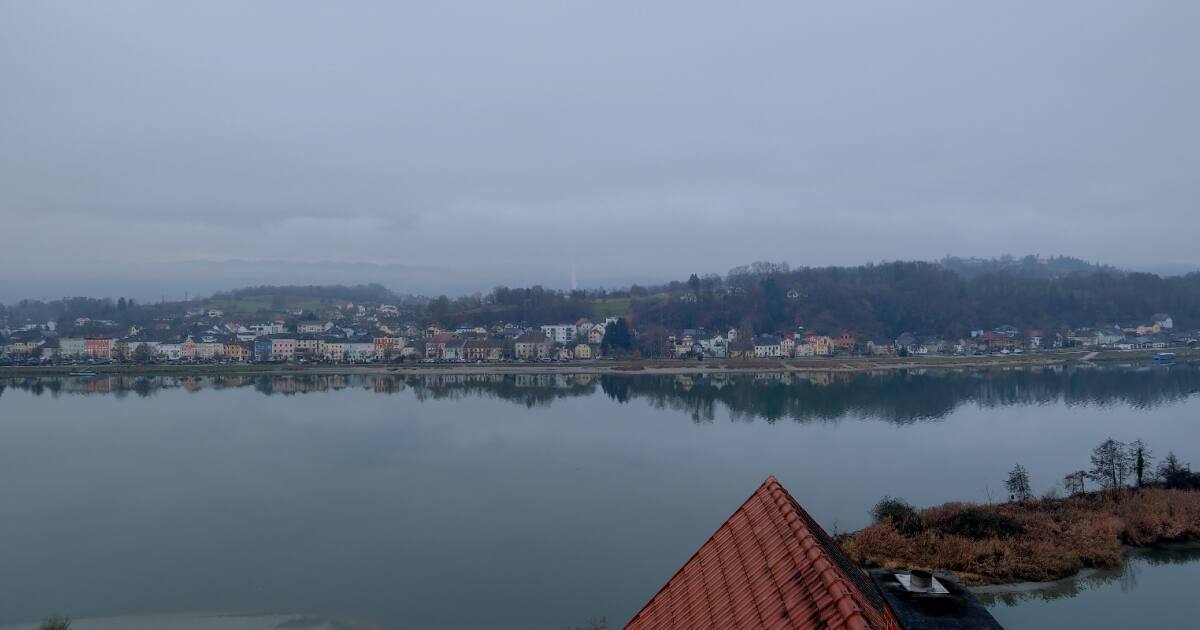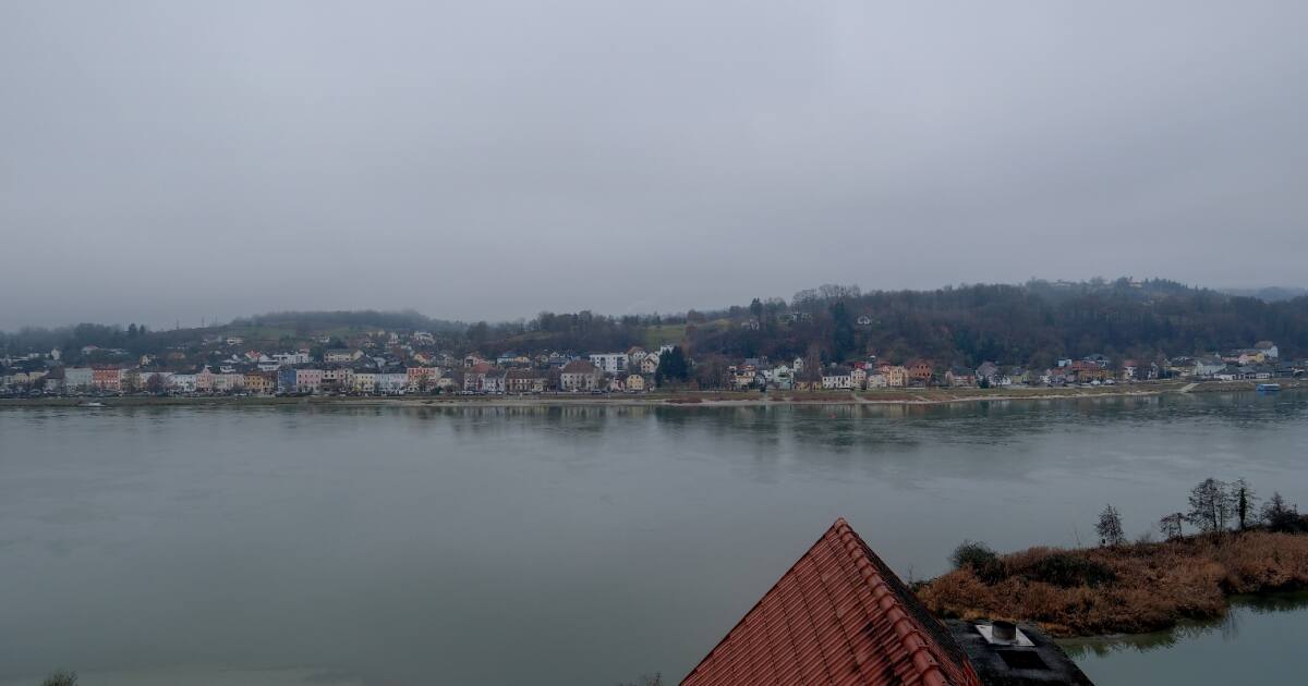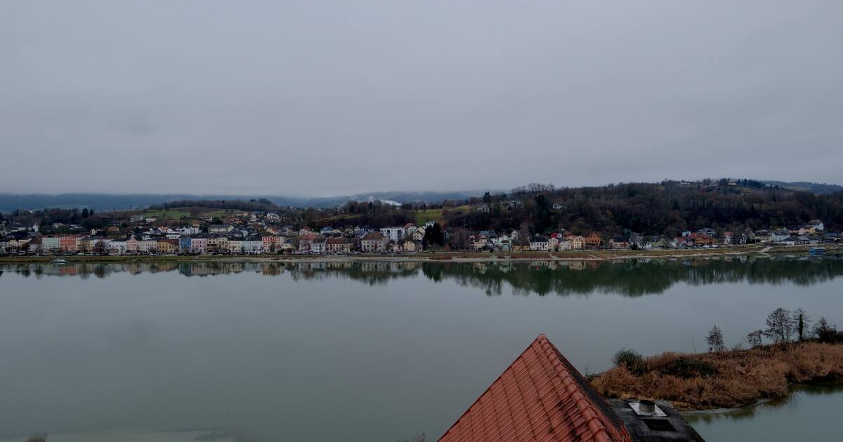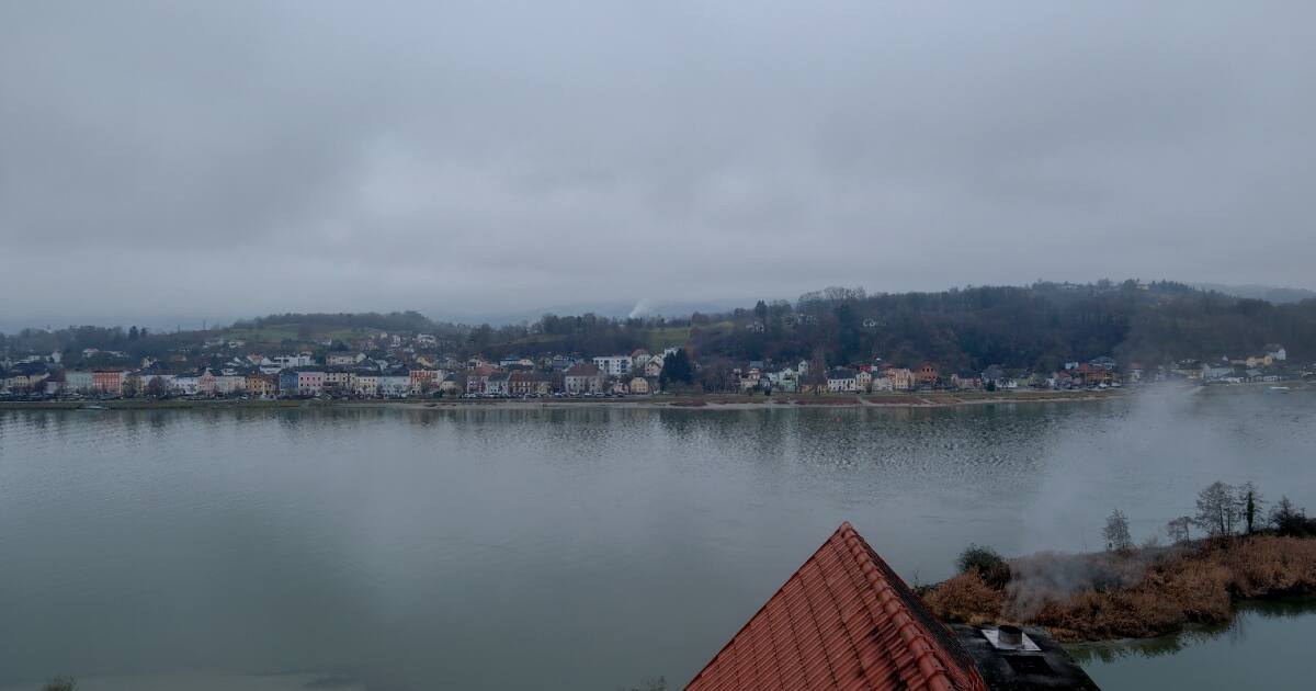 Aschach an der Donau, Österreich - 25.1 km von Altschwendt: PANOMAX Aschach / Blick vom Hotel Faustschlössl Feldkirchen