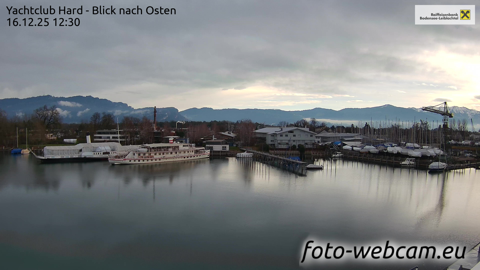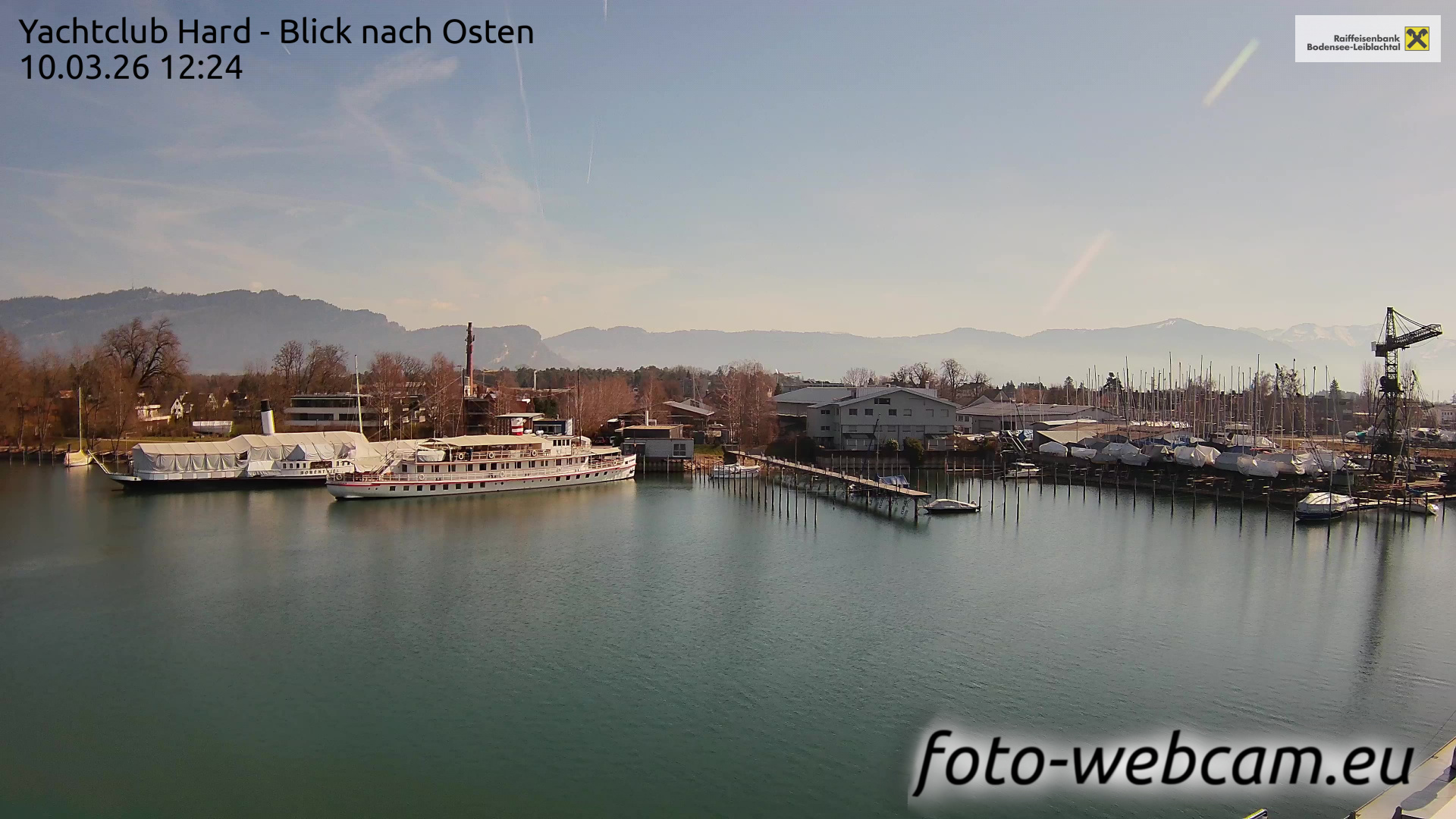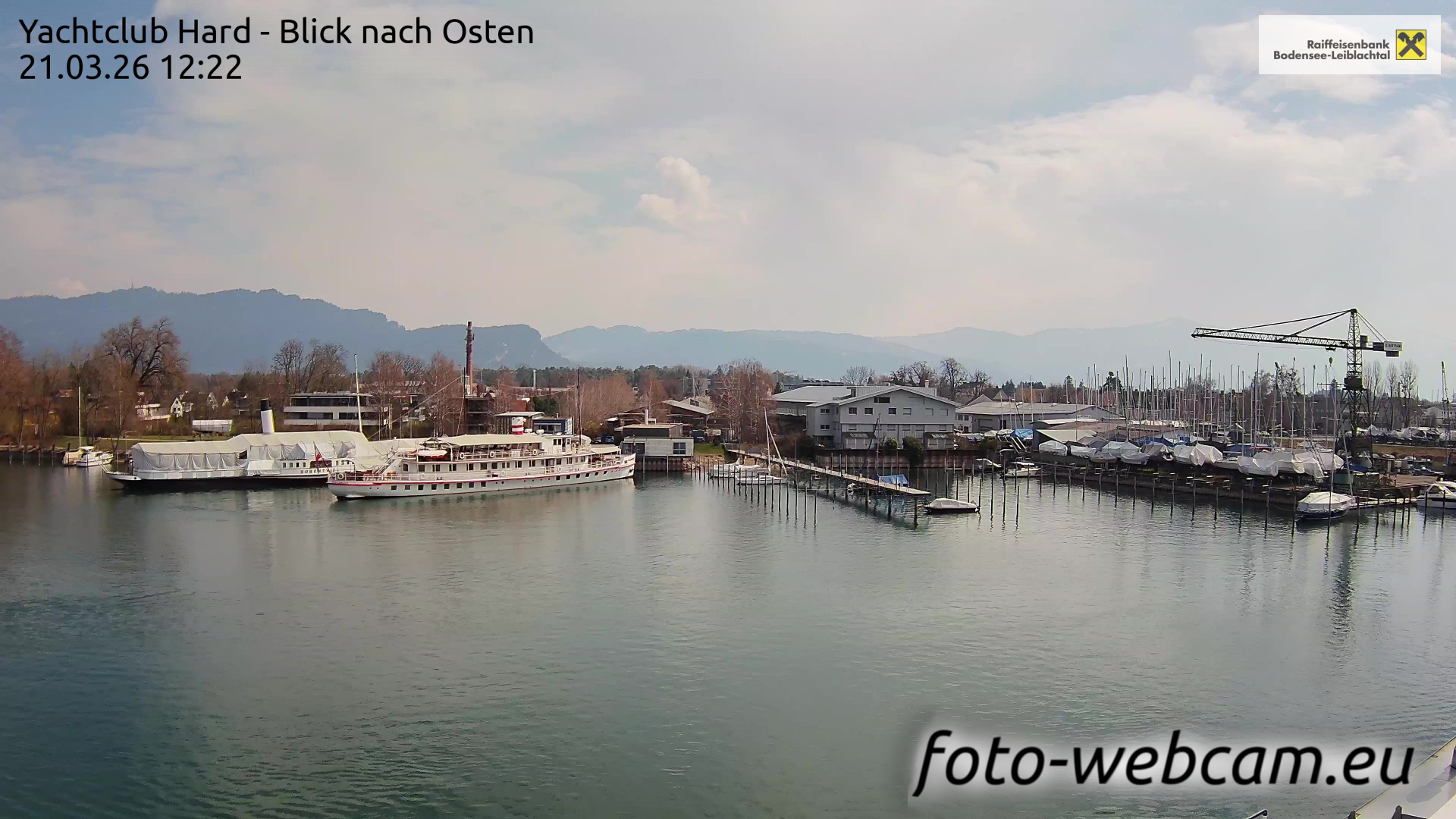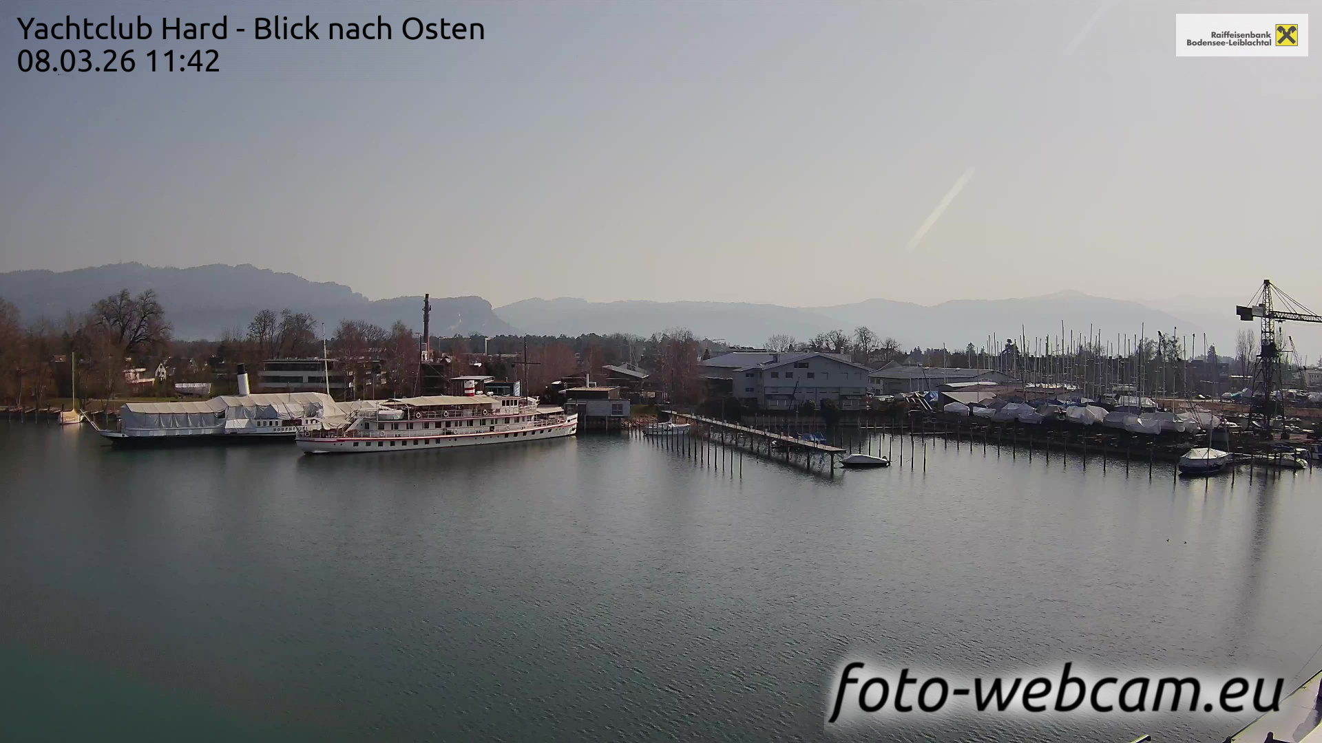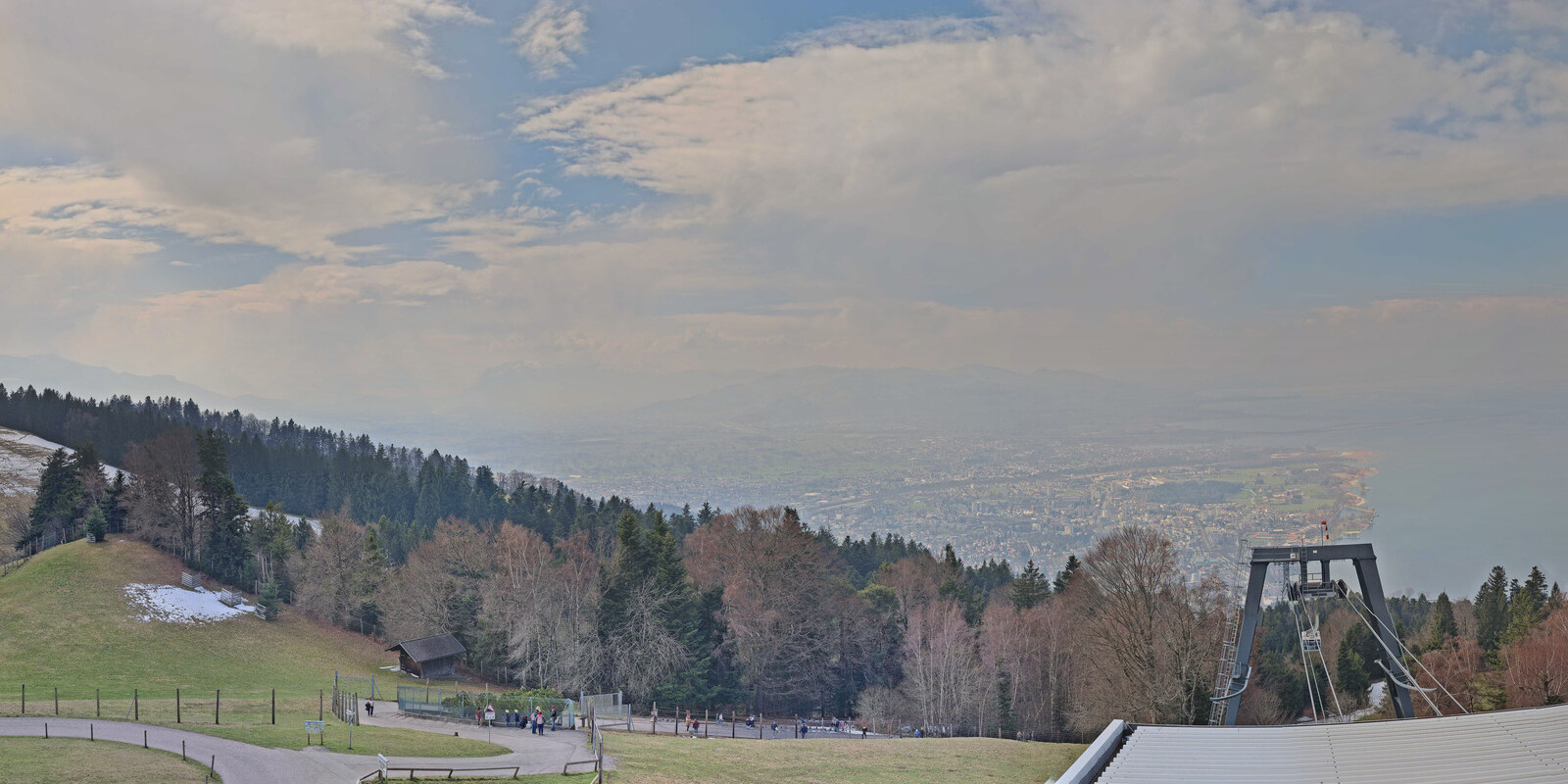 Bregenz, Österreich - 7.5 km von Andreute: Panocam Pfänderbahn - Die Livecam befindet sich auf dem Dach der Pfänderbahn-Bergstation. Der einzigartige Rundblick über den gesamten Bodensee und 240 Alpengipfel Österreichs, Deutschlands und der Schweiz macht den Pfänder bei Bregenz, Österreich, zum berühmtesten Aussichtspunkt der Region.