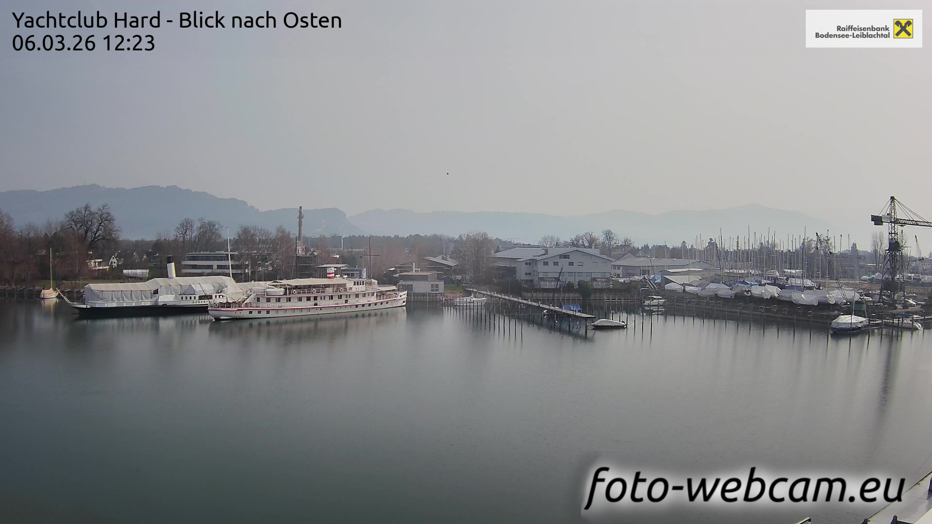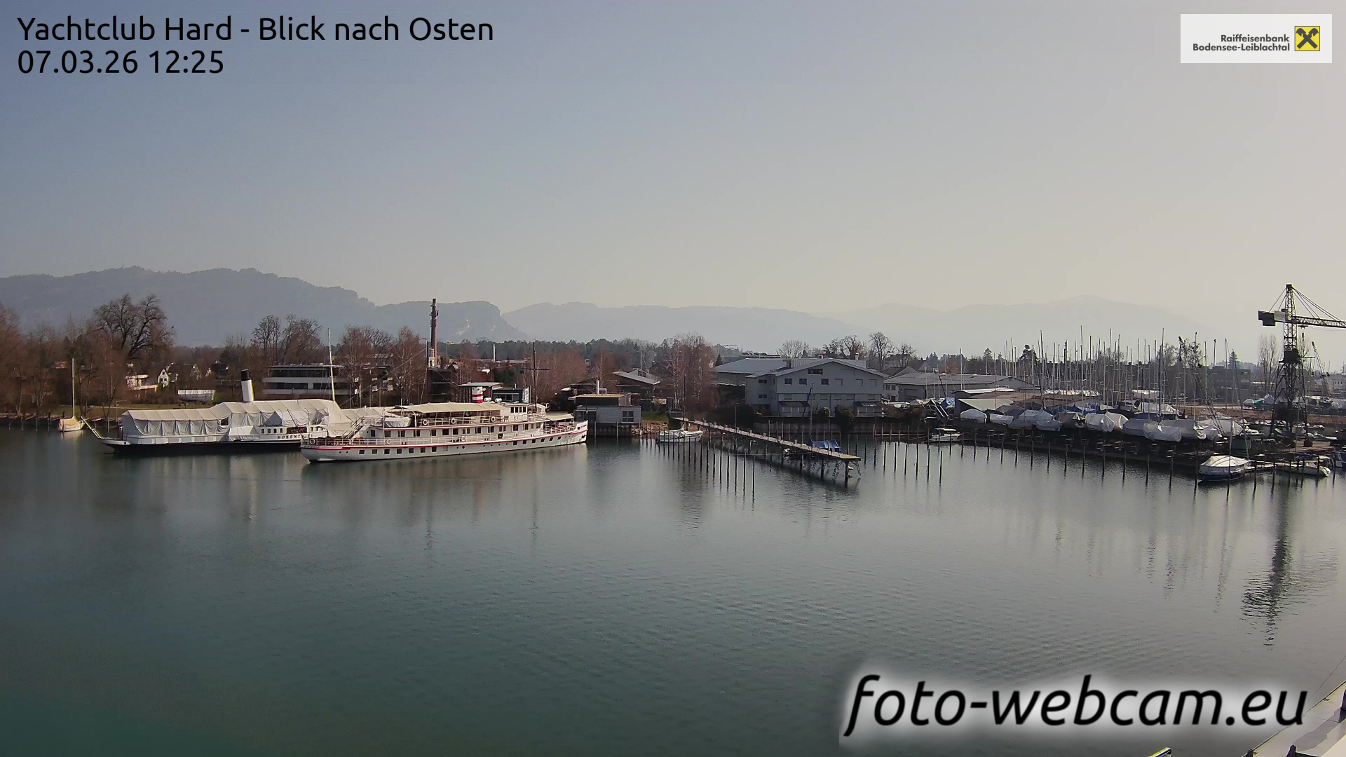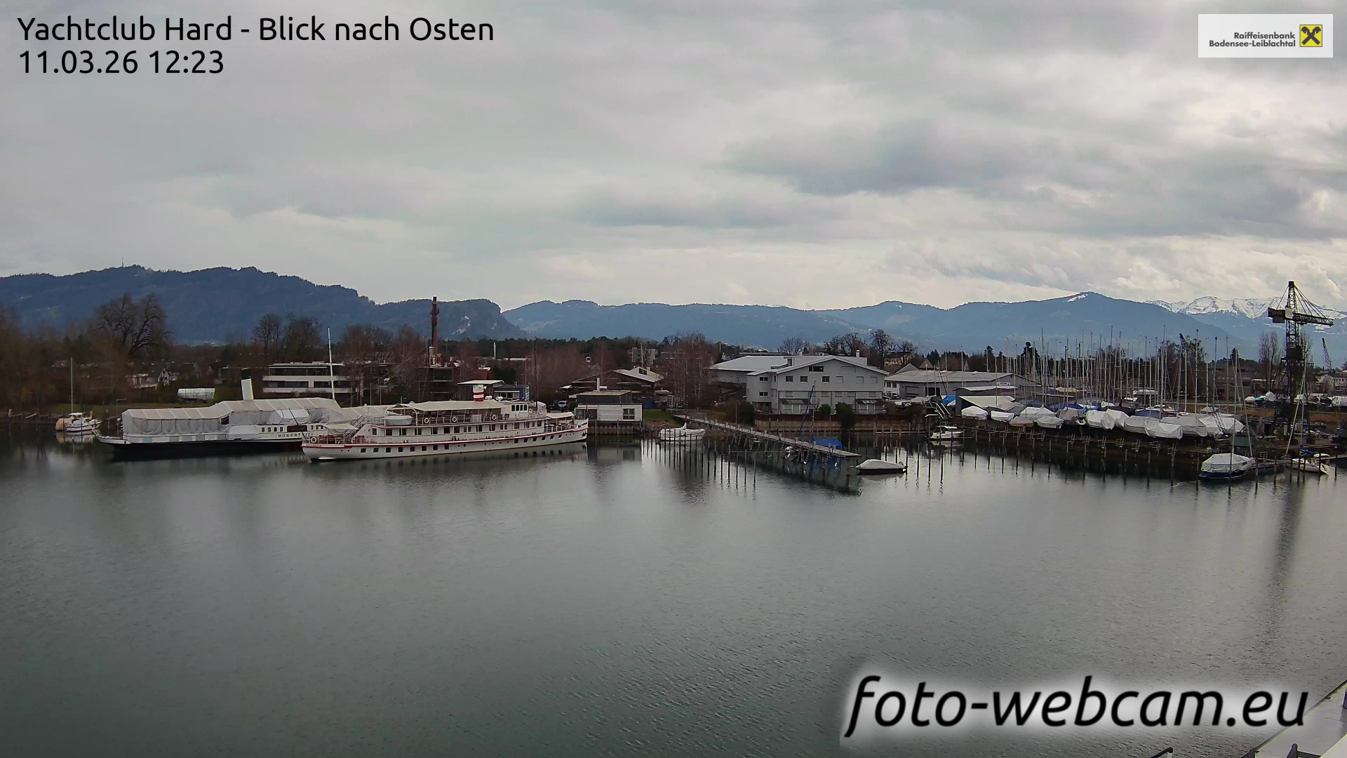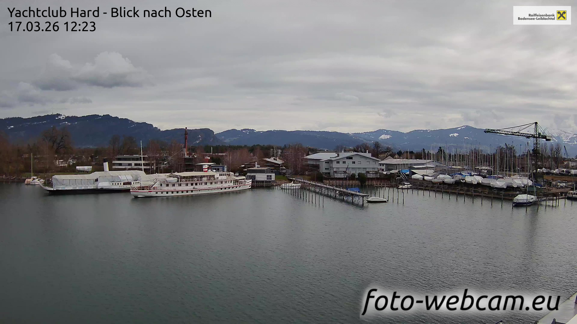 Bregenz, Österreich - 7.5 km von Andreute: Panocam Pfänderbahn - Die Livecam befindet sich auf dem Dach der Pfänderbahn-Bergstation. Der einzigartige Rundblick über den gesamten Bodensee und 240 Alpengipfel Österreichs, Deutschlands und der Schweiz macht den Pfänder bei Bregenz, Österreich, zum berühmtesten Aussichtspunkt der Region.