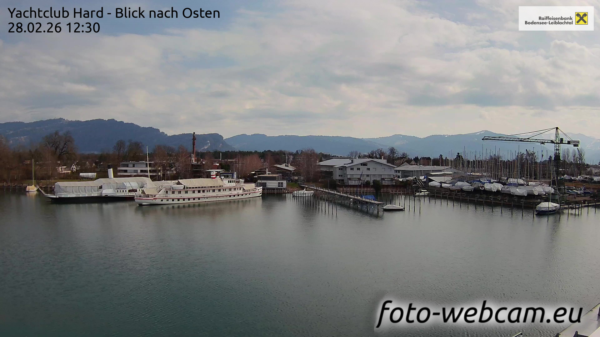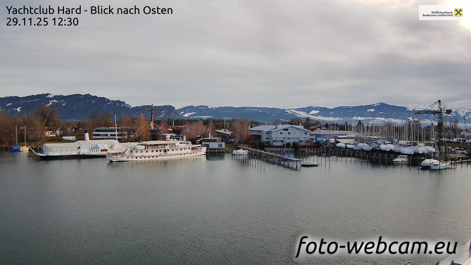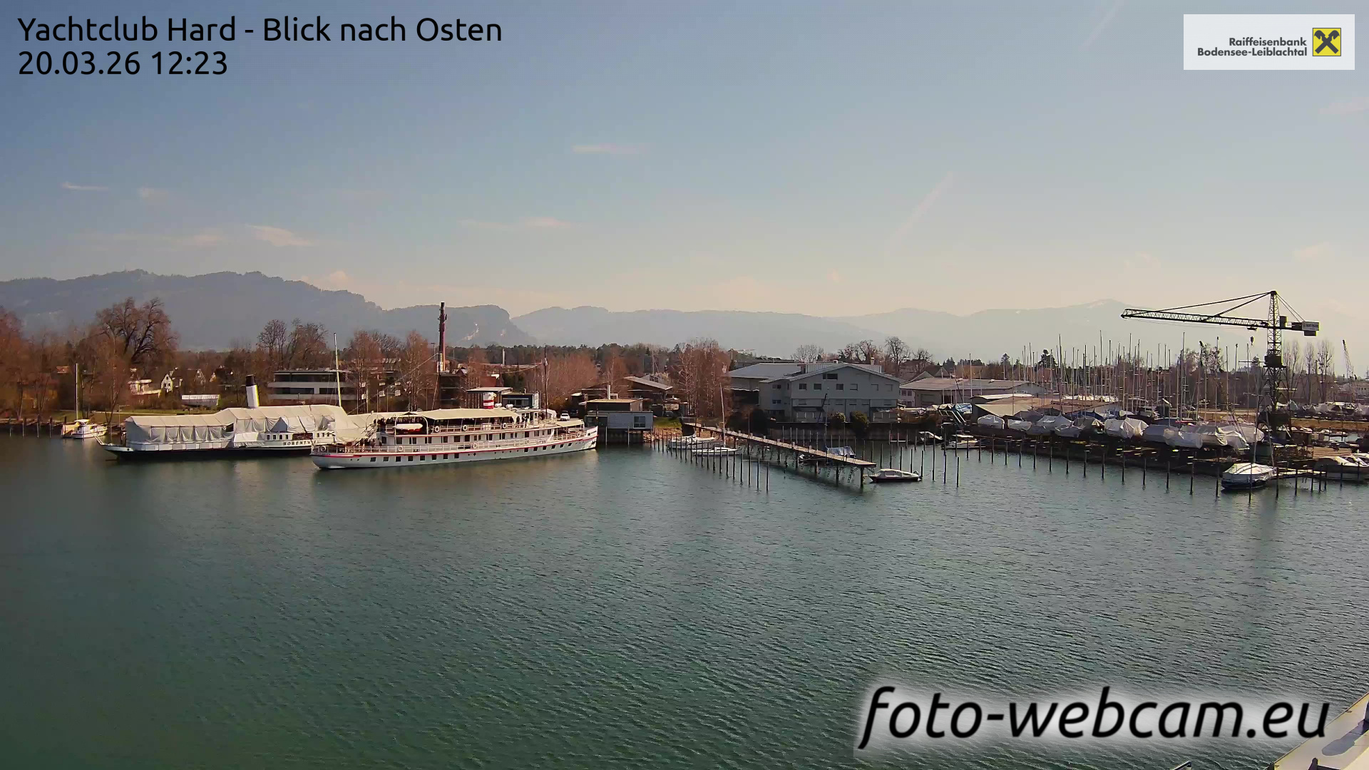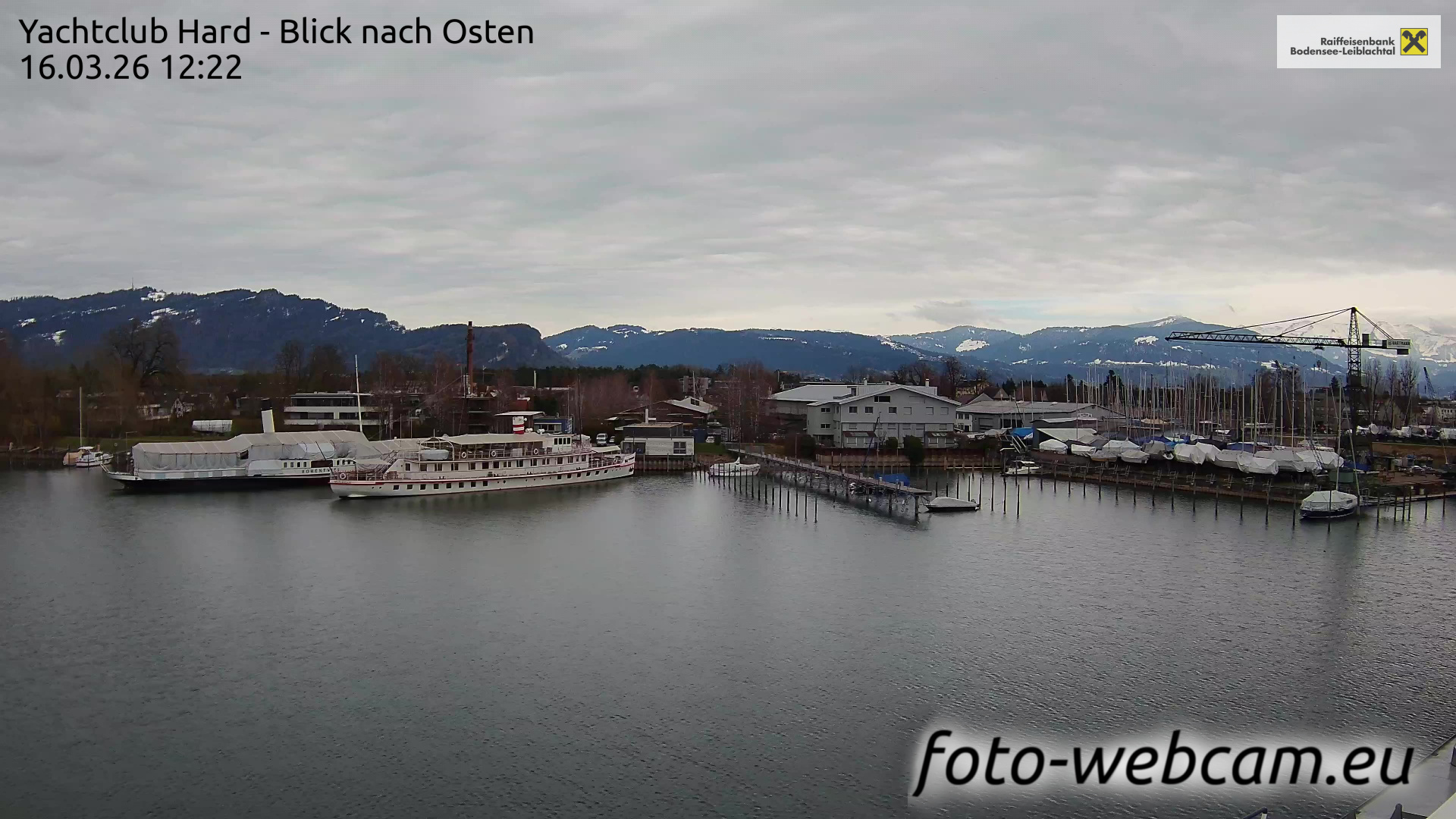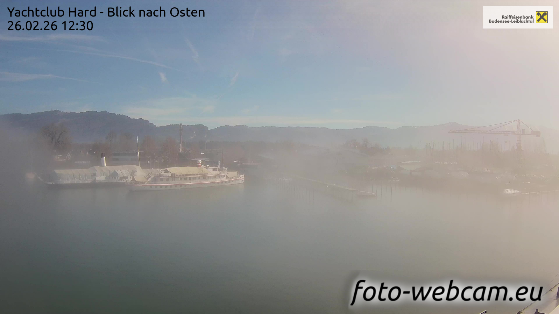 Bregenz, Österreich - 7.5 km von Andreute: Panocam Pfänderbahn - Die Livecam befindet sich auf dem Dach der Pfänderbahn-Bergstation. Der einzigartige Rundblick über den gesamten Bodensee und 240 Alpengipfel Österreichs, Deutschlands und der Schweiz macht den Pfänder bei Bregenz, Österreich, zum berühmtesten Aussichtspunkt der Region.