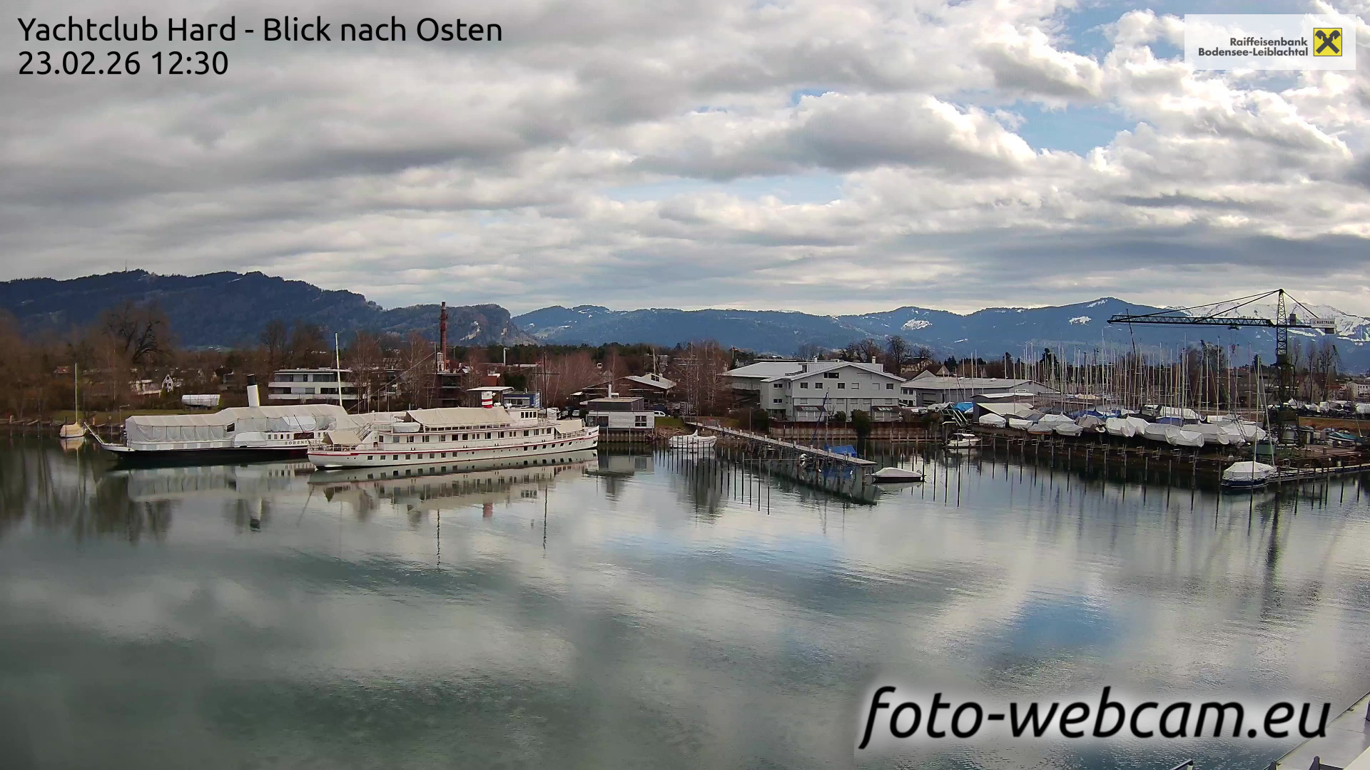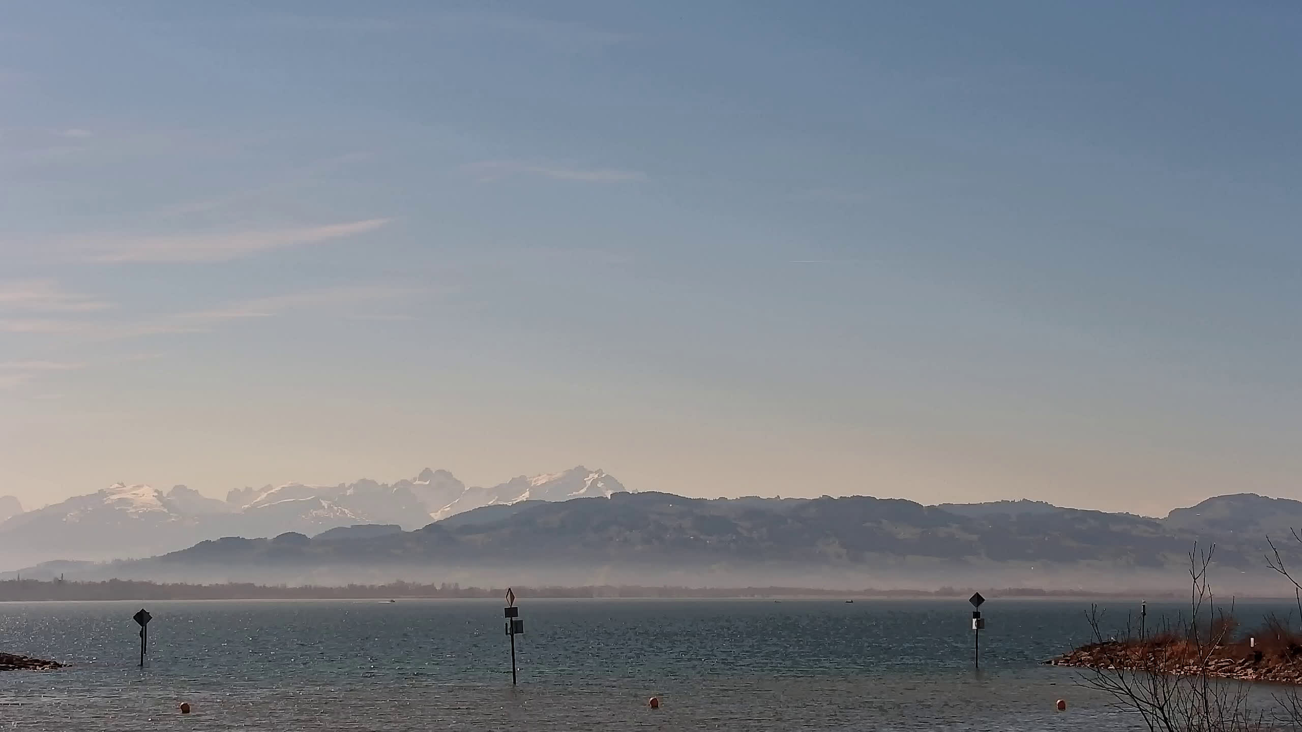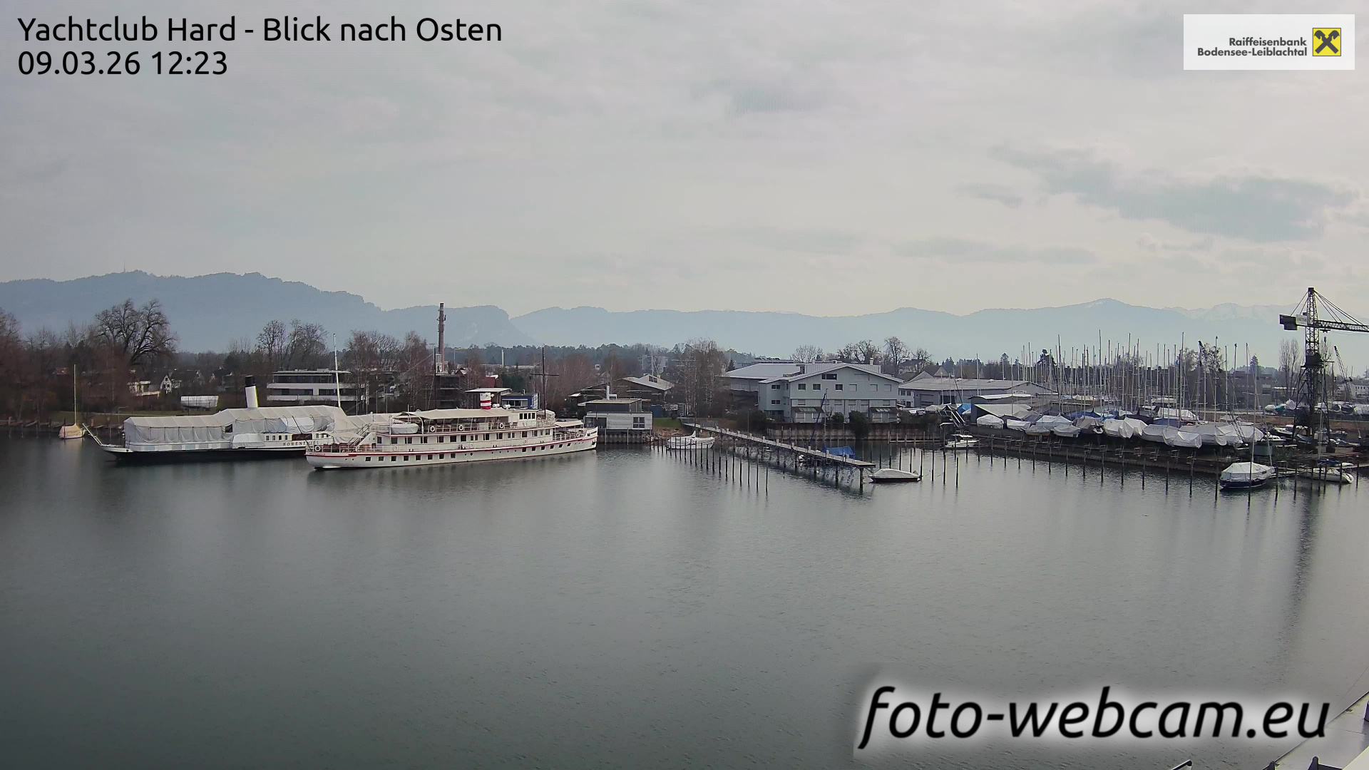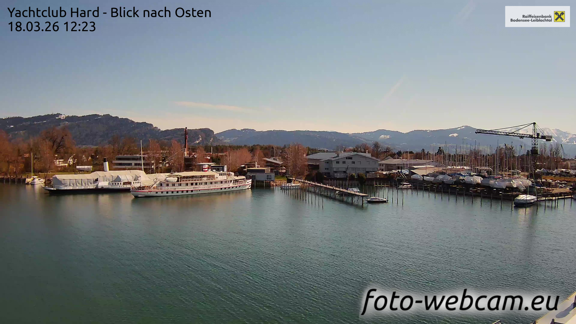 Bregenz, Österreich - 7.5 km von Andreute: Panocam Pfänderbahn - Die Livecam befindet sich auf dem Dach der Pfänderbahn-Bergstation. Der einzigartige Rundblick über den gesamten Bodensee und 240 Alpengipfel Österreichs, Deutschlands und der Schweiz macht den Pfänder bei Bregenz, Österreich, zum berühmtesten Aussichtspunkt der Region.