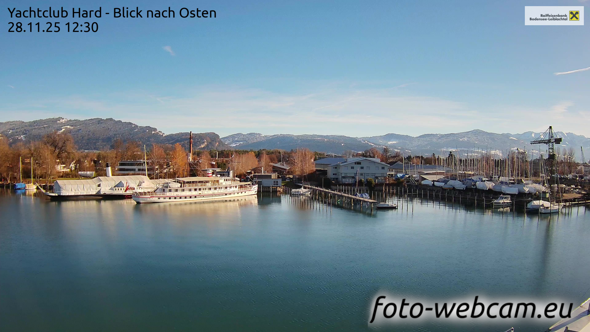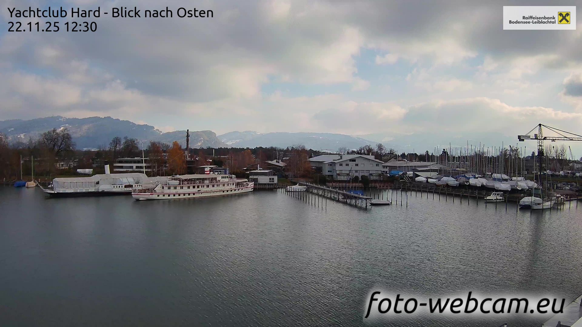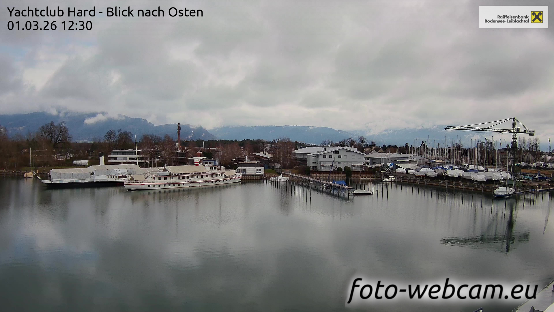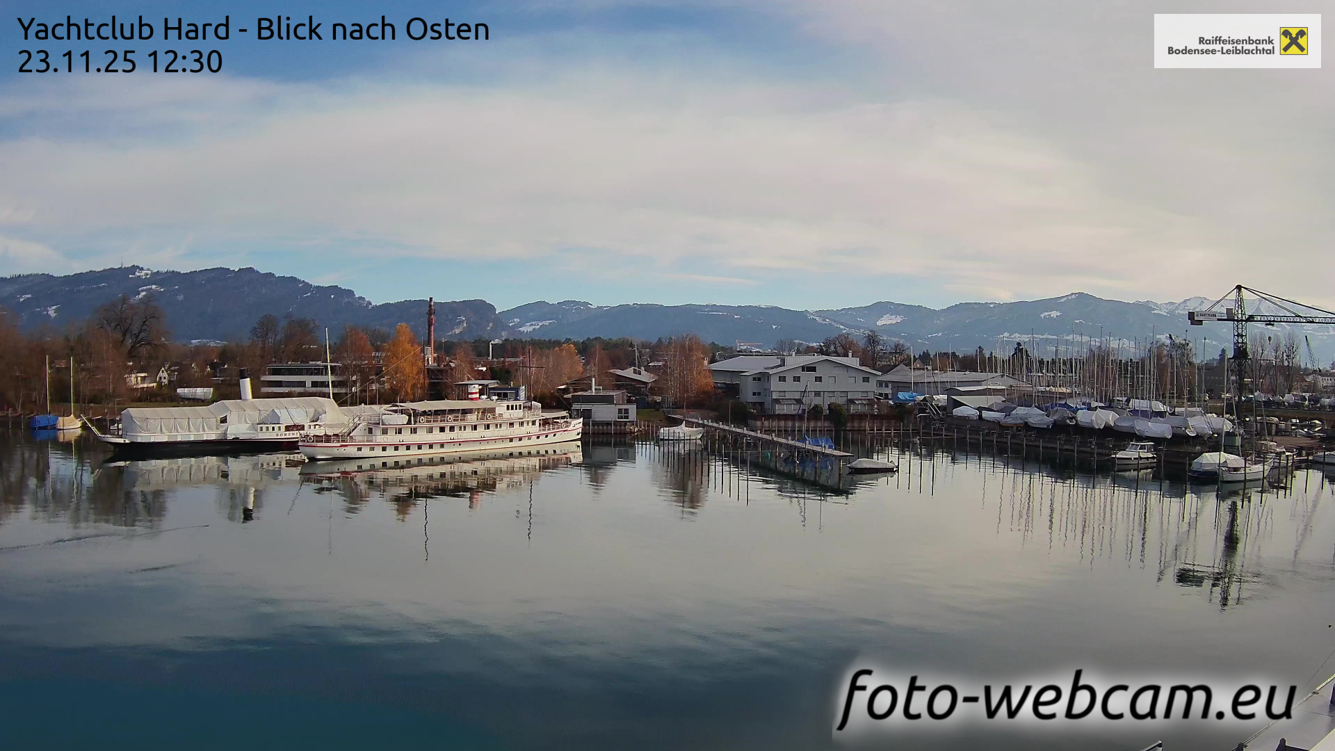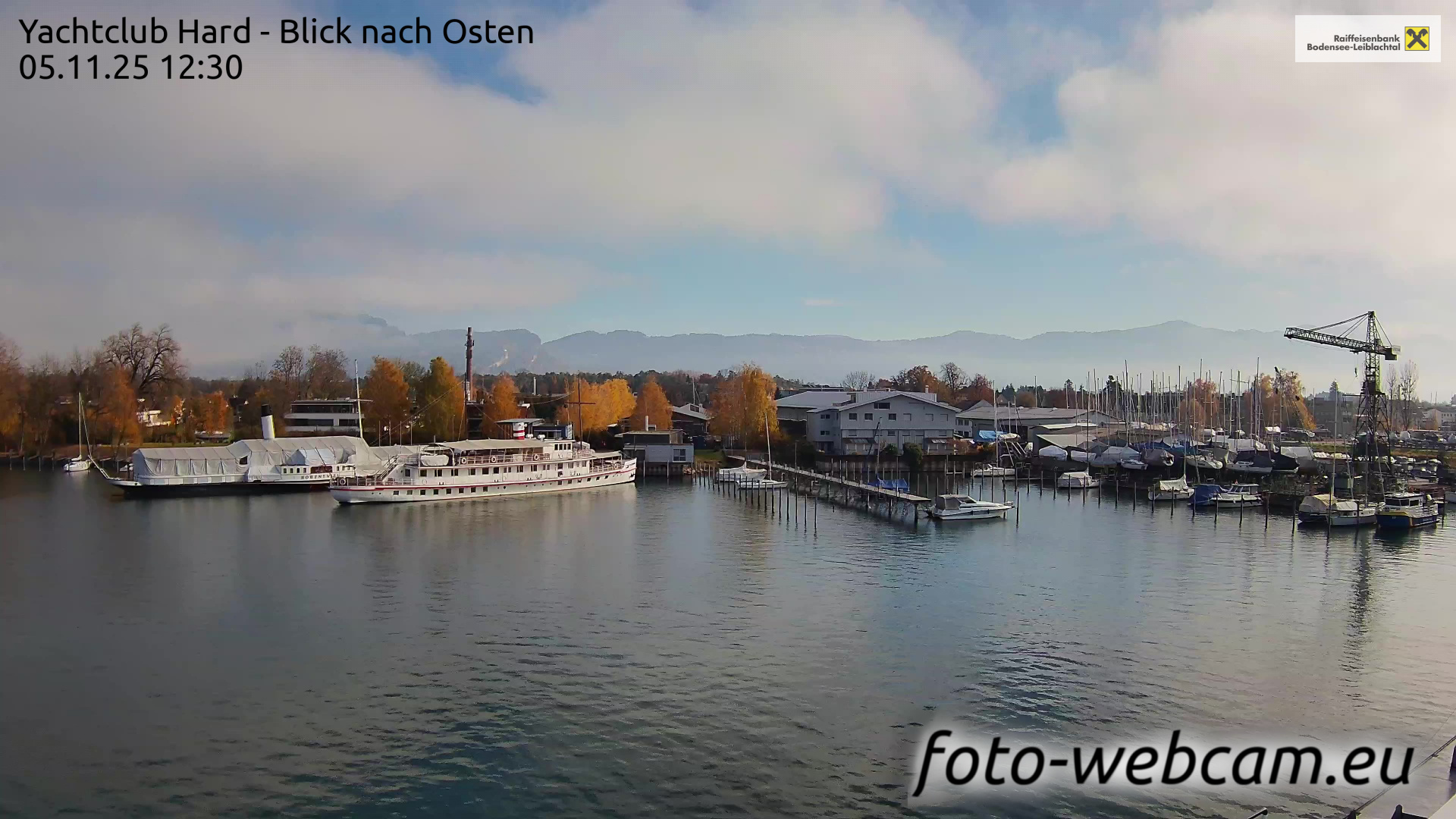 Bregenz, Österreich - 7.5 km von Andreute: Panocam Pfänderbahn - Die Livecam befindet sich auf dem Dach der Pfänderbahn-Bergstation. Der einzigartige Rundblick über den gesamten Bodensee und 240 Alpengipfel Österreichs, Deutschlands und der Schweiz macht den Pfänder bei Bregenz, Österreich, zum berühmtesten Aussichtspunkt der Region.