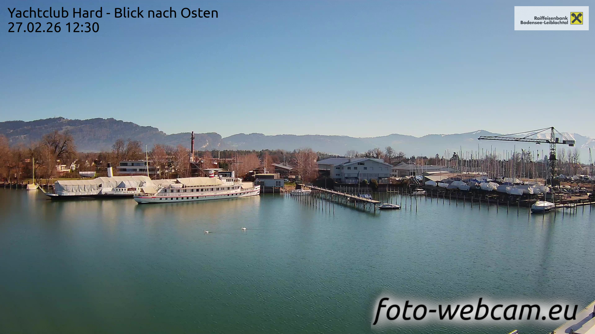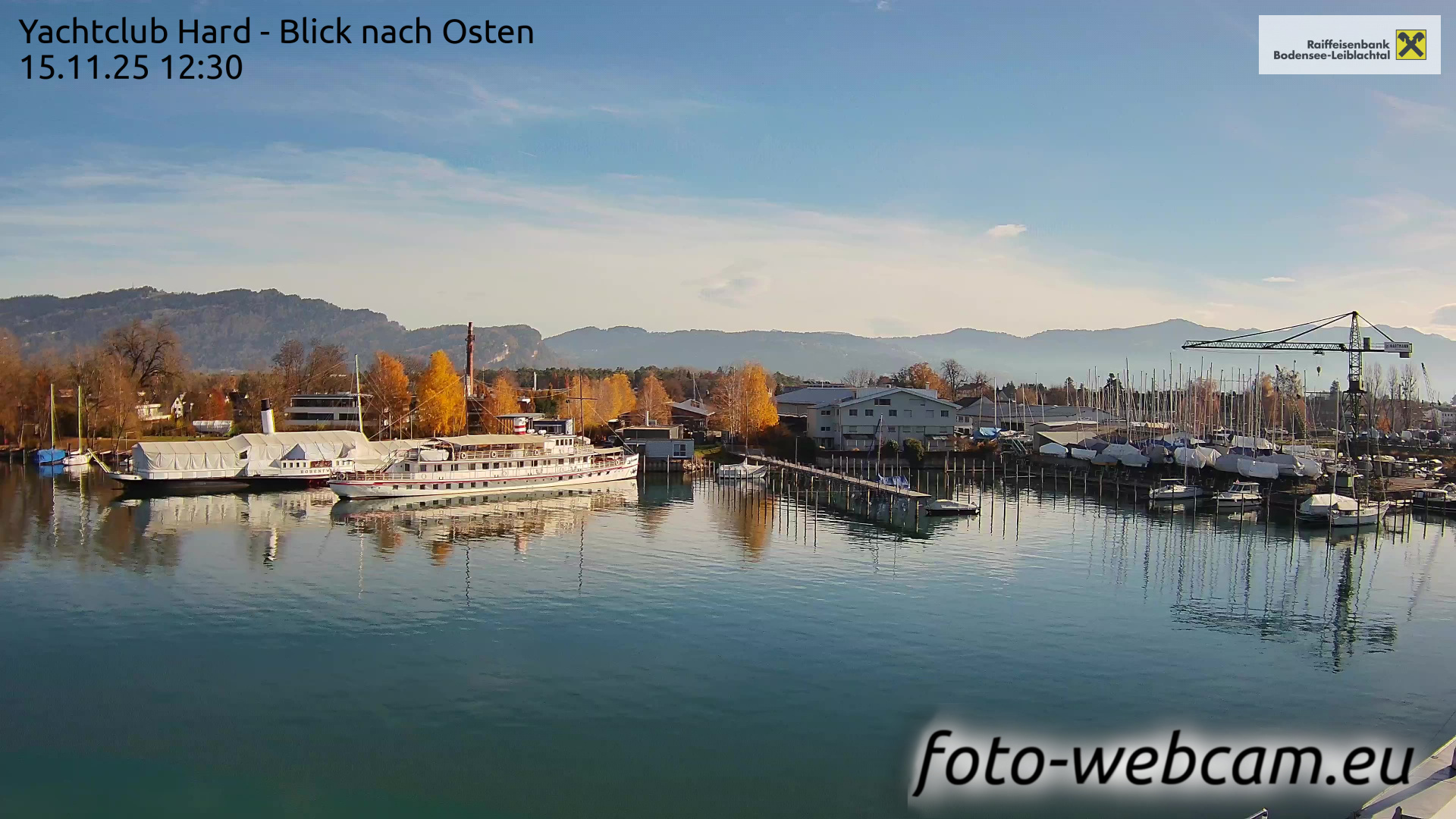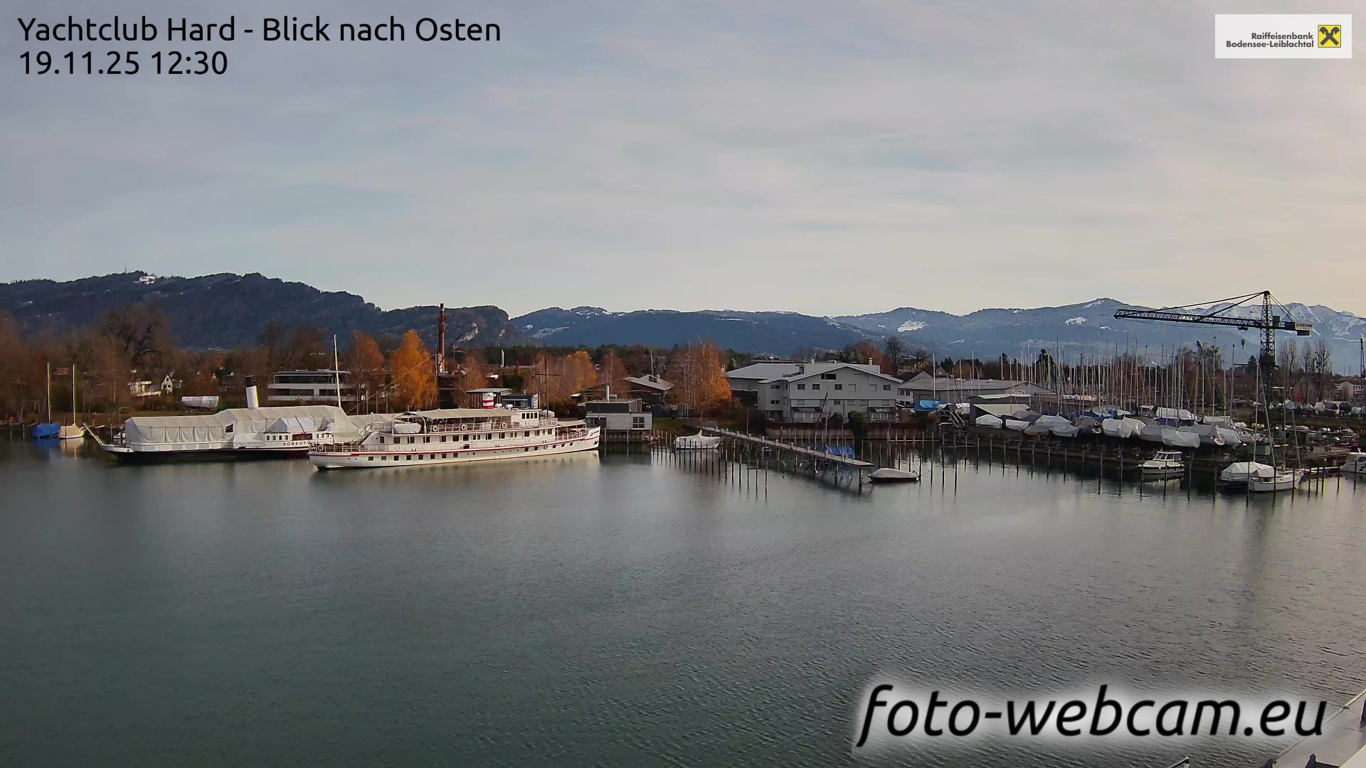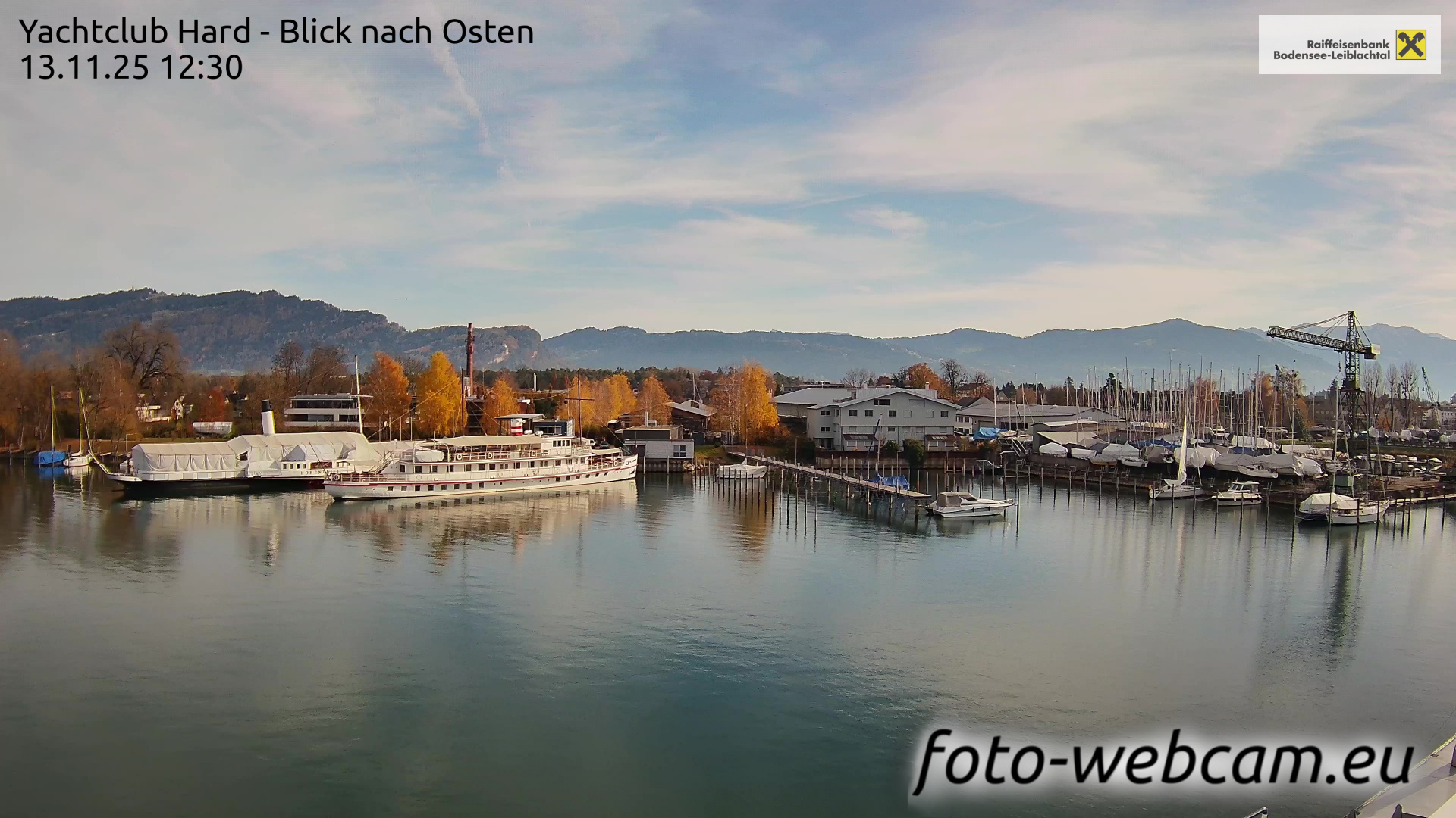 Bregenz, Österreich - 7.5 km von Andreute: Panocam Pfänderbahn - Die Livecam befindet sich auf dem Dach der Pfänderbahn-Bergstation. Der einzigartige Rundblick über den gesamten Bodensee und 240 Alpengipfel Österreichs, Deutschlands und der Schweiz macht den Pfänder bei Bregenz, Österreich, zum berühmtesten Aussichtspunkt der Region.