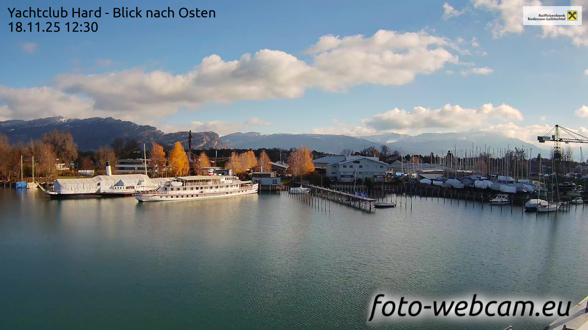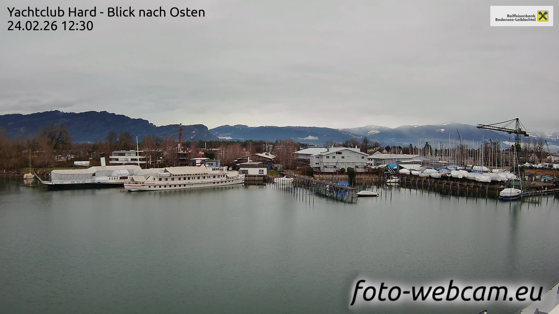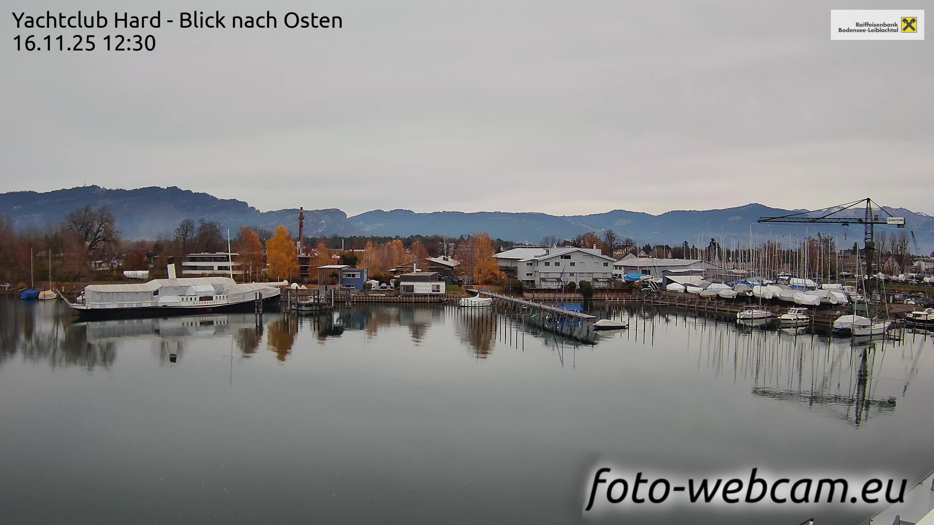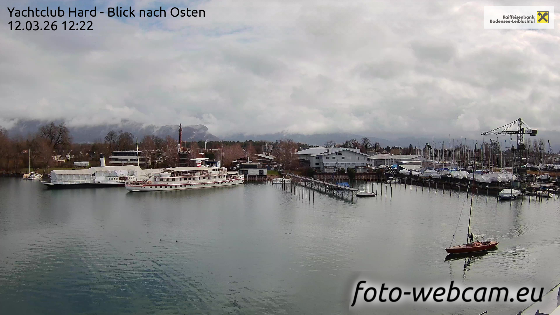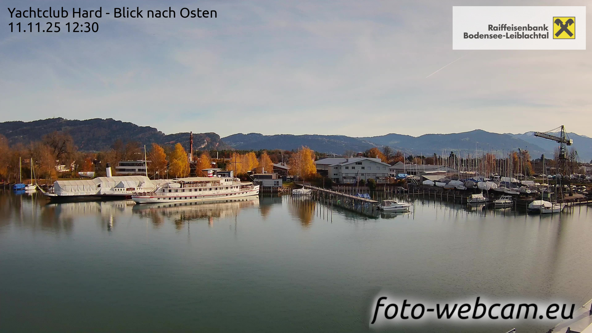 Bregenz, Österreich - 7.5 km von Andreute: Panocam Pfänderbahn - Die Livecam befindet sich auf dem Dach der Pfänderbahn-Bergstation. Der einzigartige Rundblick über den gesamten Bodensee und 240 Alpengipfel Österreichs, Deutschlands und der Schweiz macht den Pfänder bei Bregenz, Österreich, zum berühmtesten Aussichtspunkt der Region.