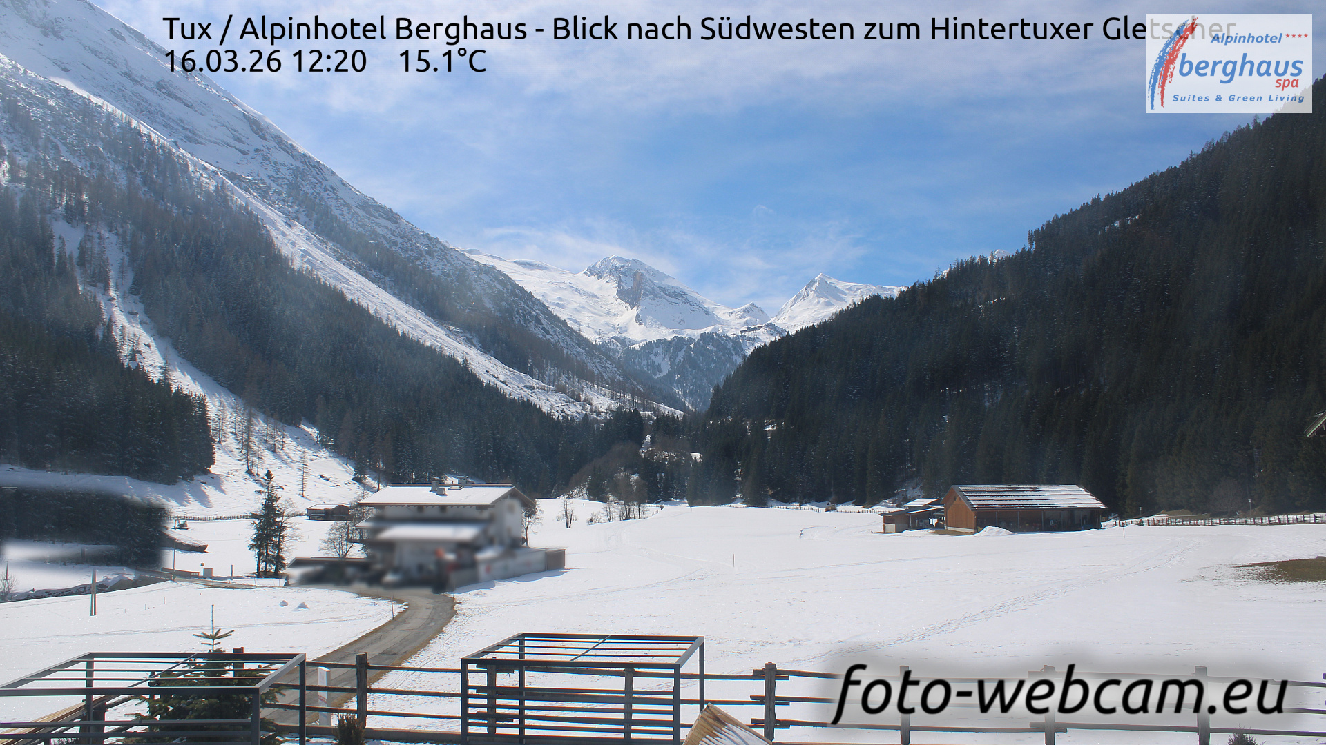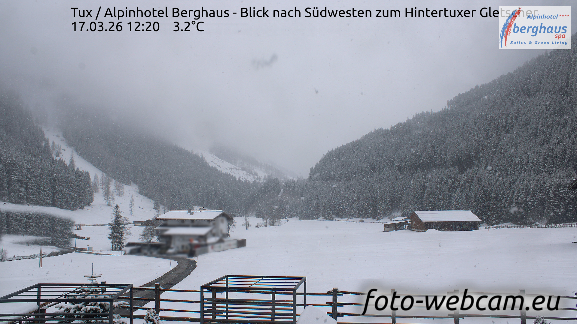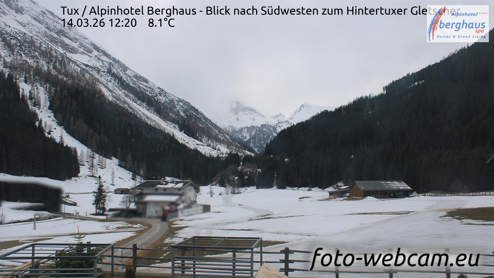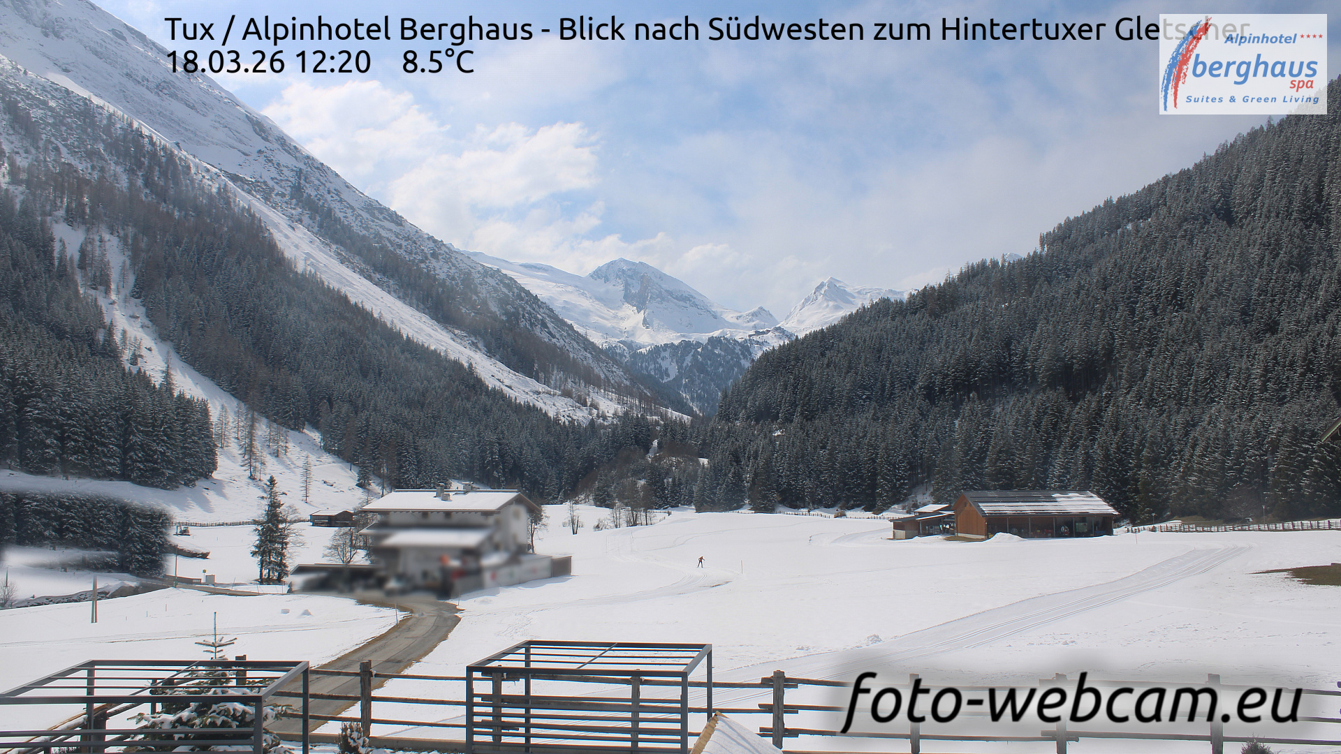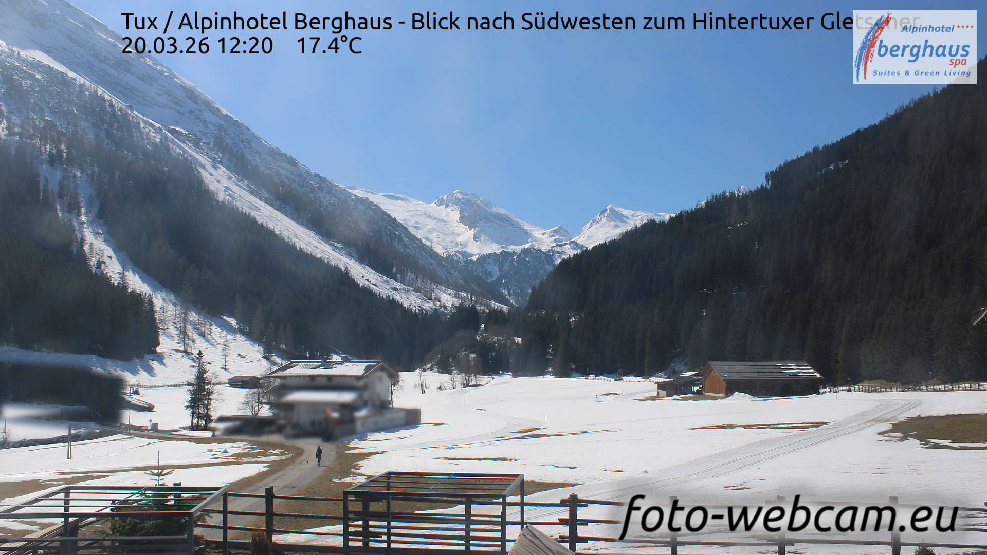 Tux, Österreich - 1.2 km von Auen: HD Foto-Webcam Alpinhotel Berghaus
