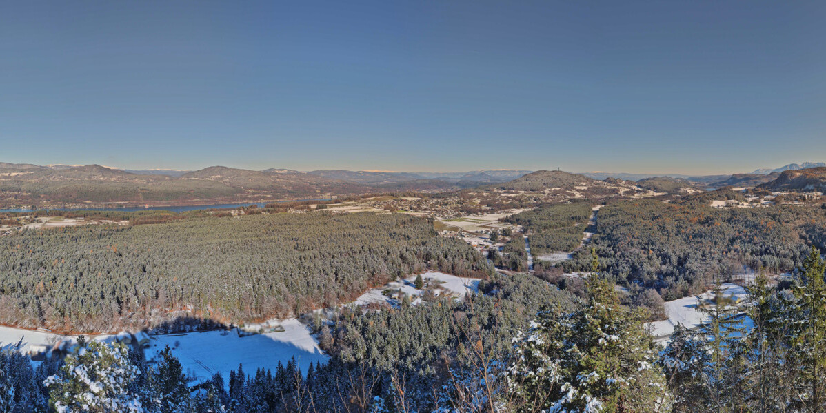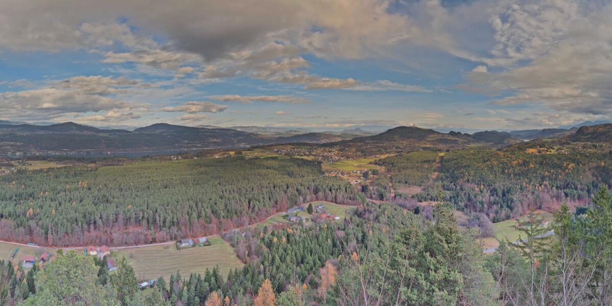 Schiefling am See, Österreich - 6.4 km von Augsdorf: Panoramakamera 360° VR - Pyramidenkogel - Die Panoramakamera befindet sich auf dem Gipfel unseres einzigartigen Aussichtsturms Pyramidenkogel in Kärnten. Nehmen Sie sich etwas Zeit und genießen Sie die die atemberaubende Aussicht über den Wörthersee und das Keutschacher Seental.