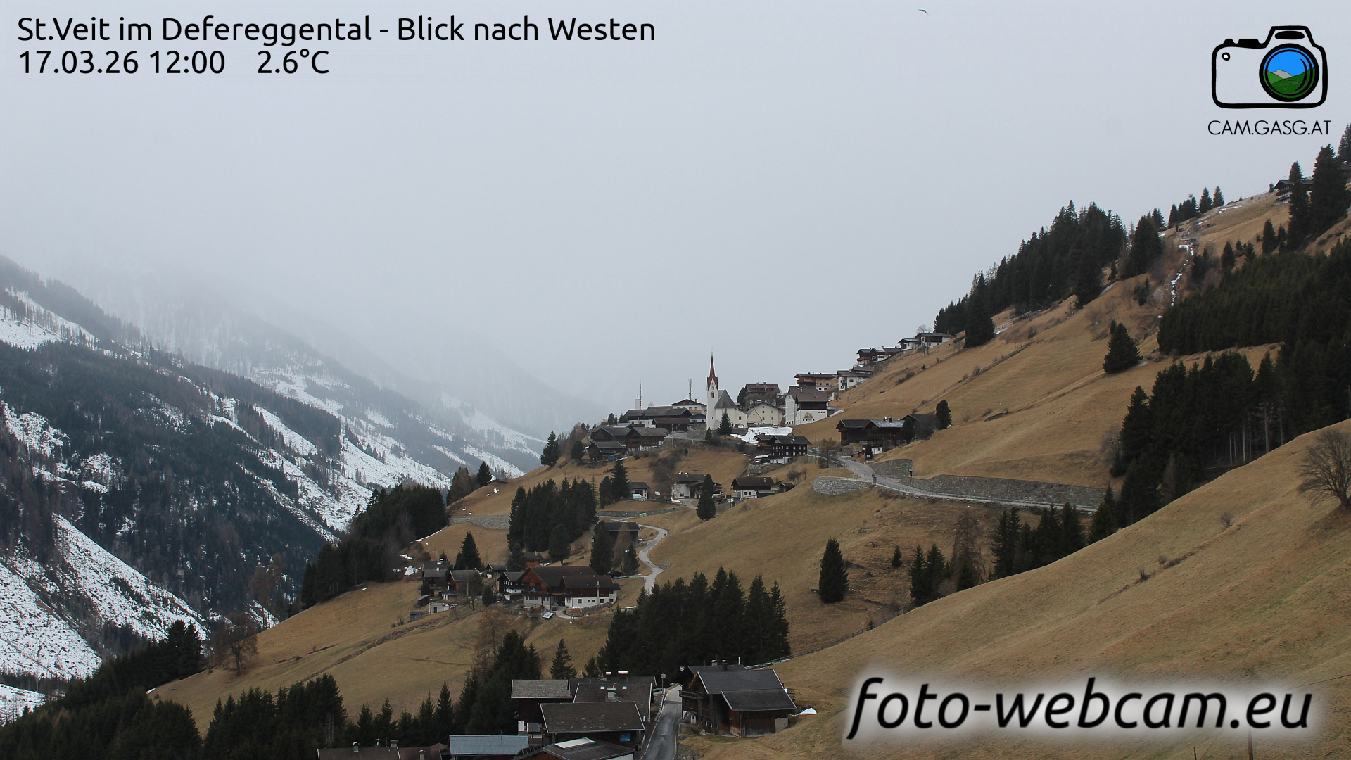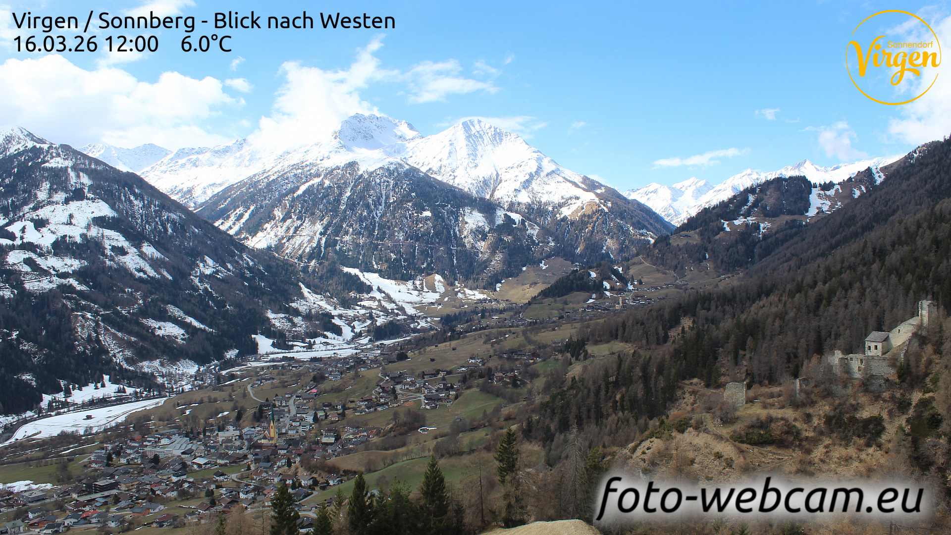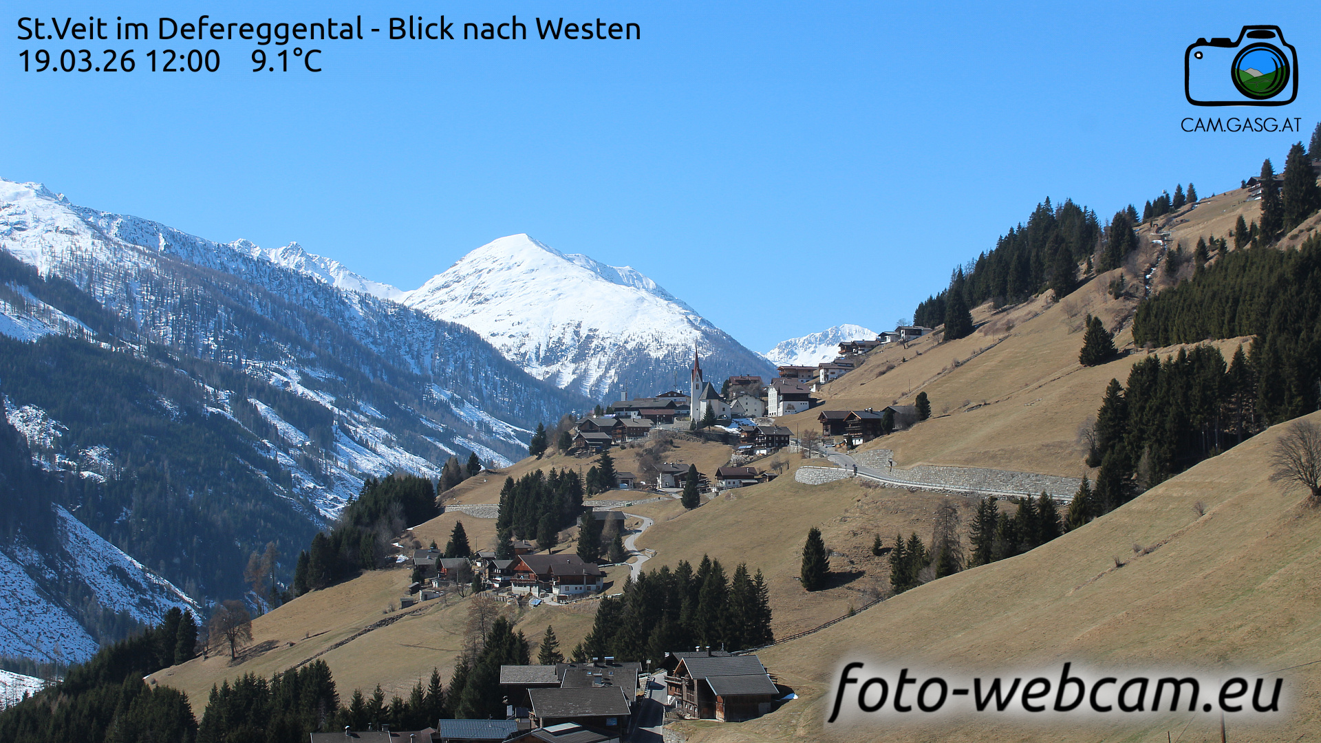 St. Veit in Defereggen, Österreich - 6.2 km von Ausere Grosrotte: HD Foto-Webcam St. Veit in Defereggen - St. Veit im Defereggental - Blick nach Westen.