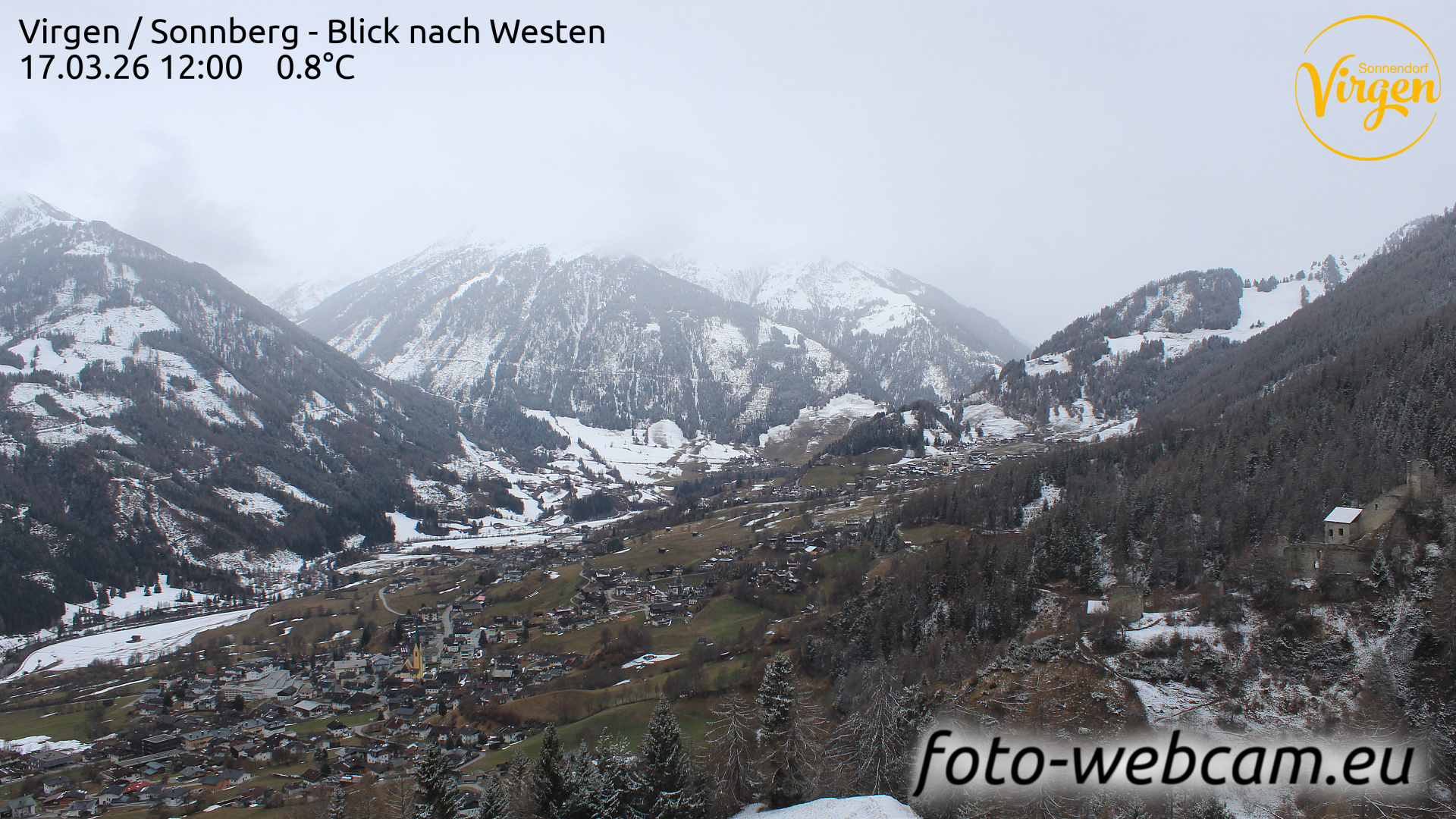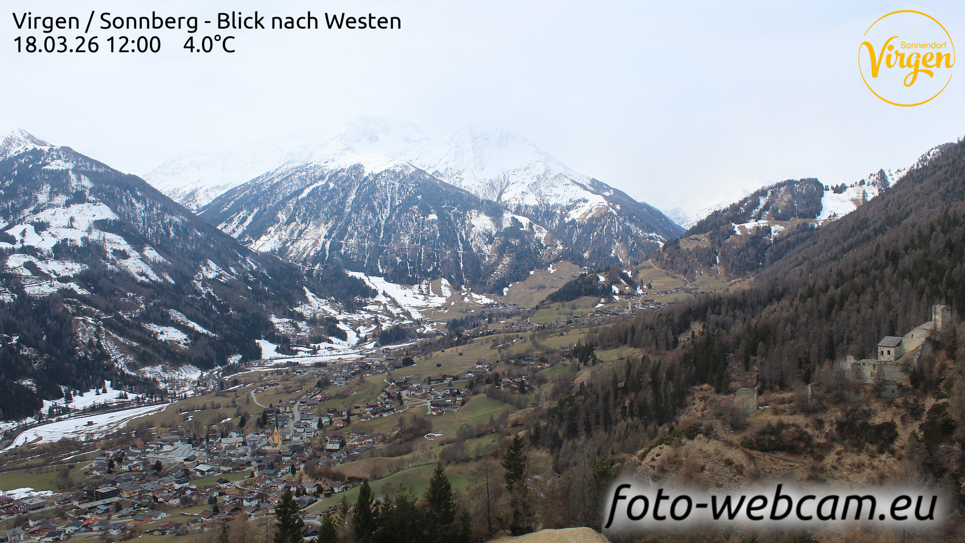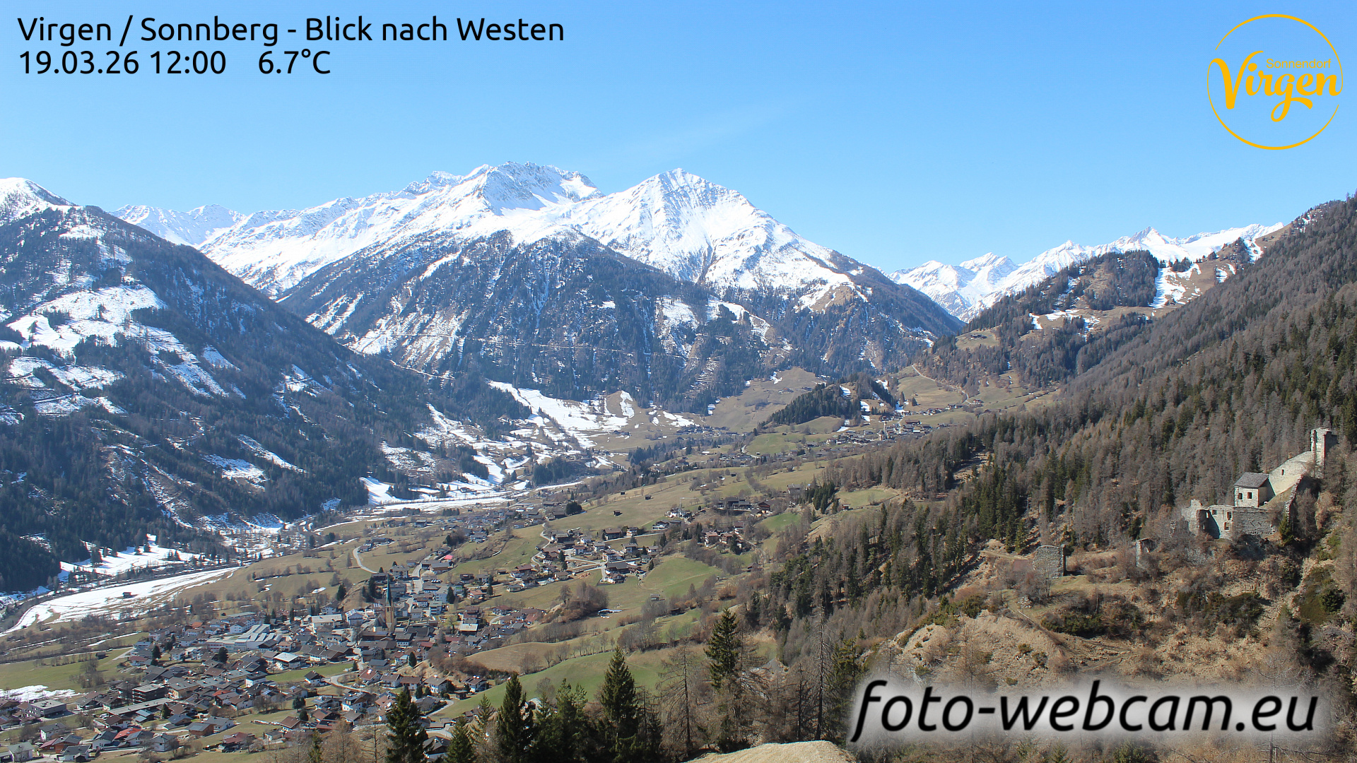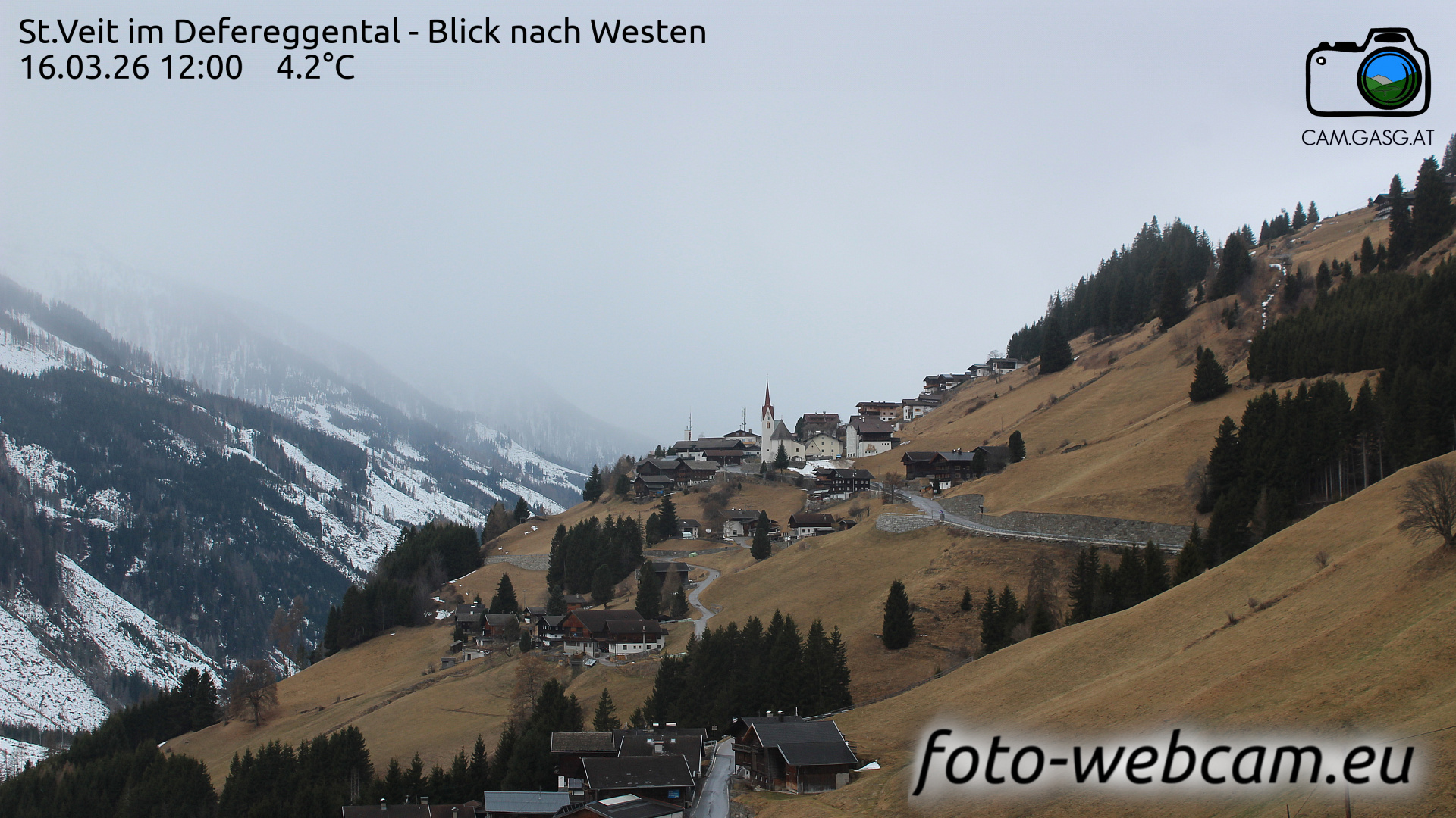 St. Veit in Defereggen, Österreich - 6.2 km von Ausere Grosrotte: HD Foto-Webcam St. Veit in Defereggen - St. Veit im Defereggental - Blick nach Westen.