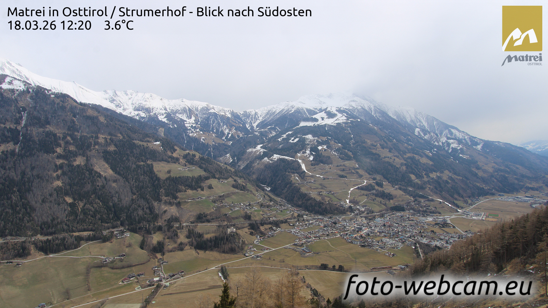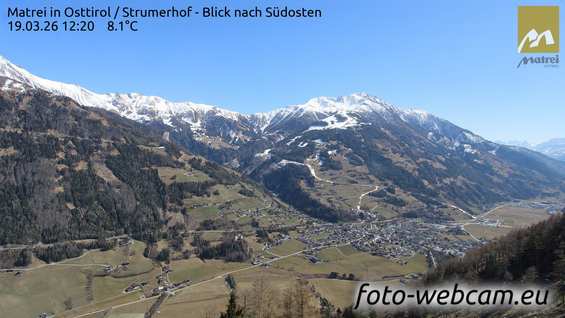Matrei in Osttirol, Österreich - 17.3 km von Ausere Grosrotte: HD Foto-Webcam Matrei - Goldried - Matrei in Osttirol / Strumerhof - Blick nach Südosten.