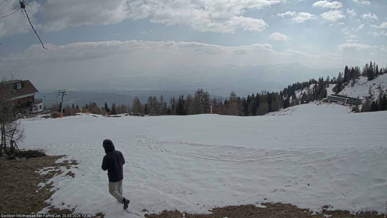Gerlitzen, Österreich - 7.1 km von Aussere Einode: Panoramakamera Gerlitzen - Die Gerlitzen Alpe erhebt sich mit 1.911 m Seehöhe am Nordufer des Ossiacher Sees in unmittelbarere Nähe des geografischen Mittelpunktes Kärntens und bietet einen wunderbaren Mix von allem, was gefällt: Im Winter warten 42 hervorragend präparierte Pistenkilometer und 15 Kilometer naturbelassene Skirouten. Moderne Liftanlagen, breite, abwechslungsreiche Skiabfahrten und ausgefeilte Beschneiungstechnologien garantieren ein unvergleichliches Panorama-Skivergnügen von Dezember bis April. Im Sommer verzaubert Sie die einzigartige Kombination aus Berg und See: grandiose Rundwege, spannende Nordic Walking Trails, rasante Abfahrten mit der Mountain Kart-Bahn, das beste Basecamp für Paragleiter und Startplätze für Modelflugzeuge – immer begleitet von einem atemberaubenden Panoramablick. Die urigen Almhütten bieten im Winter wie im Sommern Schmankerl aus der Region.