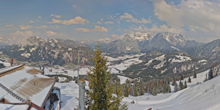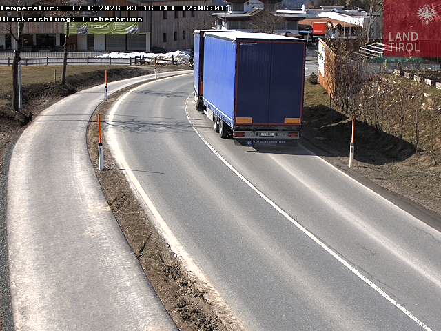 Hochfilzen, Österreich - 7.6 km von Filzen: B164, Hochkönigstraße - Ein Blick auf die aktuelle Verkehrssituation in Hochfilzen in Richtung Fieberbrunn. B164 km 56.