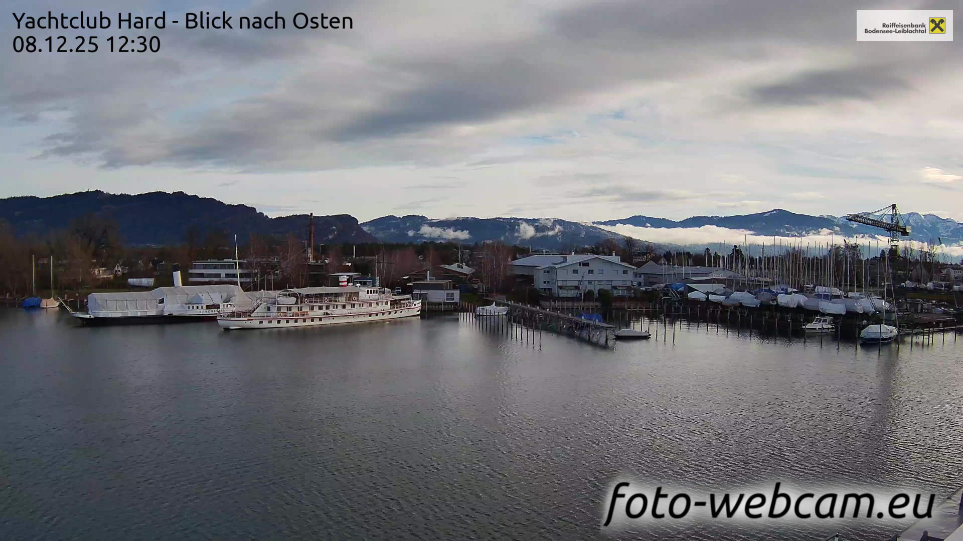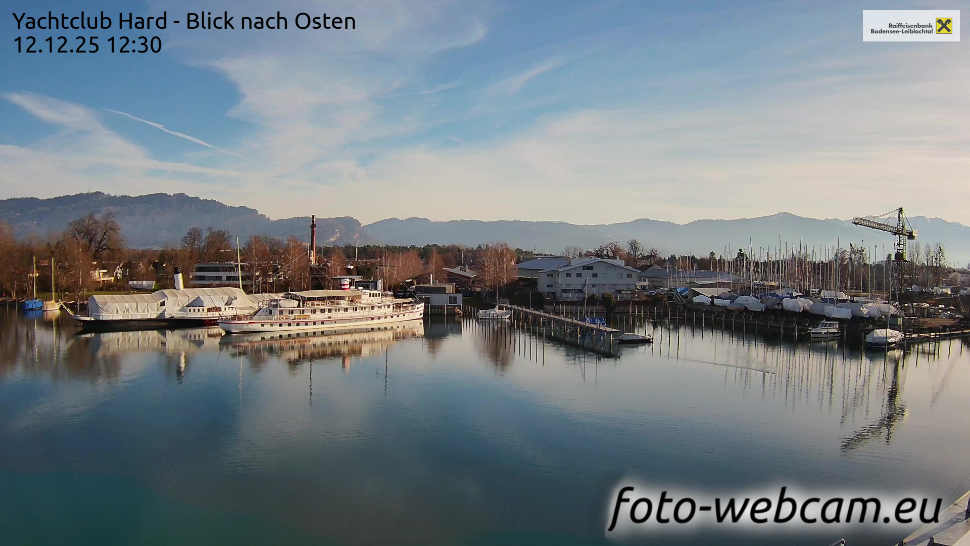 Bregenz, Österreich - 1.6 km von Fluh: Panocam Pfänderbahn - Die Livecam befindet sich auf dem Dach der Pfänderbahn-Bergstation. Der einzigartige Rundblick über den gesamten Bodensee und 240 Alpengipfel Österreichs, Deutschlands und der Schweiz macht den Pfänder bei Bregenz, Österreich, zum berühmtesten Aussichtspunkt der Region.