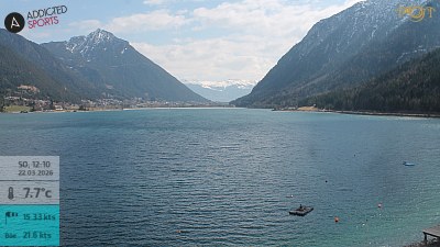 - Die Webcam steht in Pertisau und Blickt über den Achensee Richtung Südost nach Maurach.