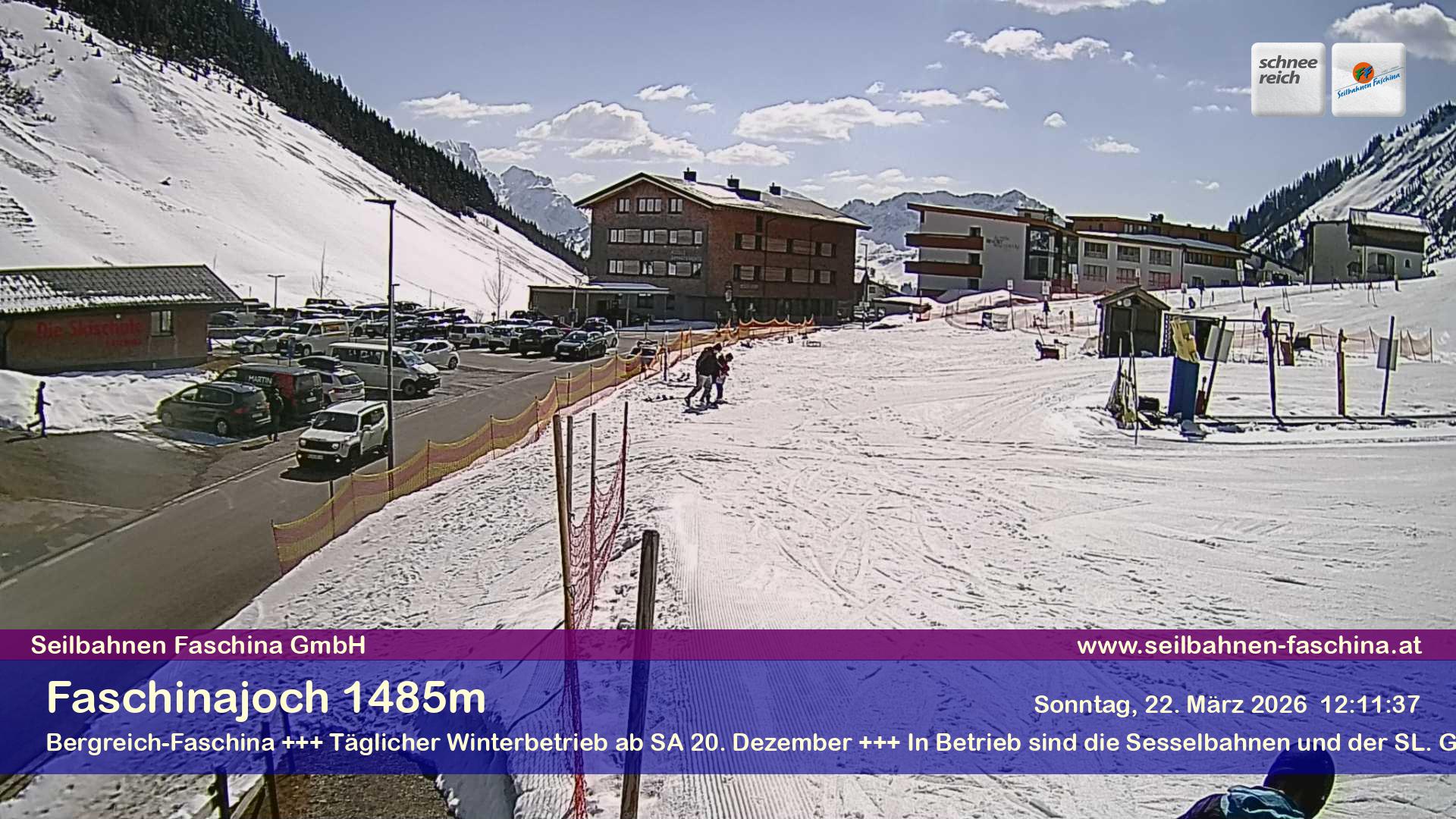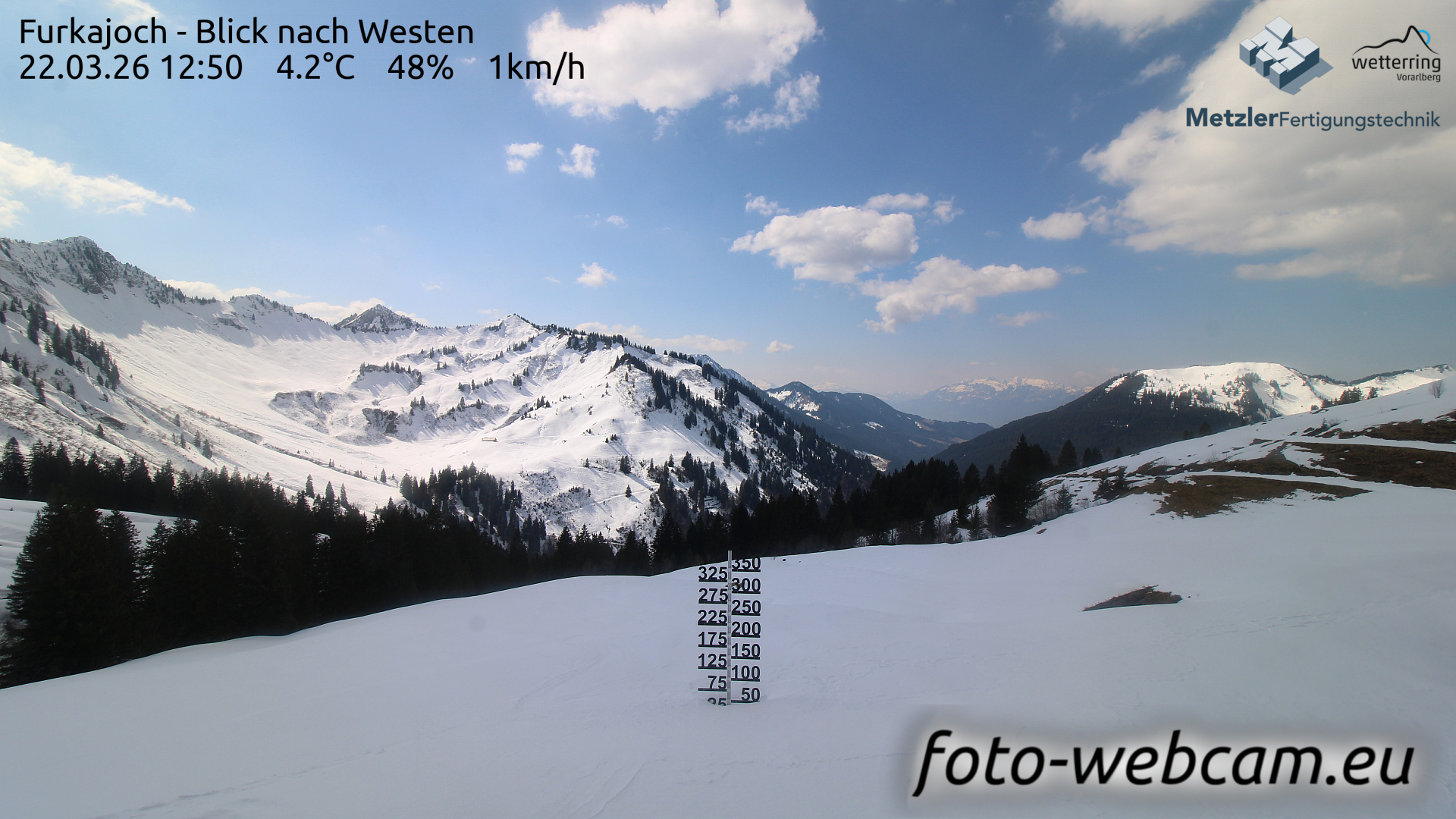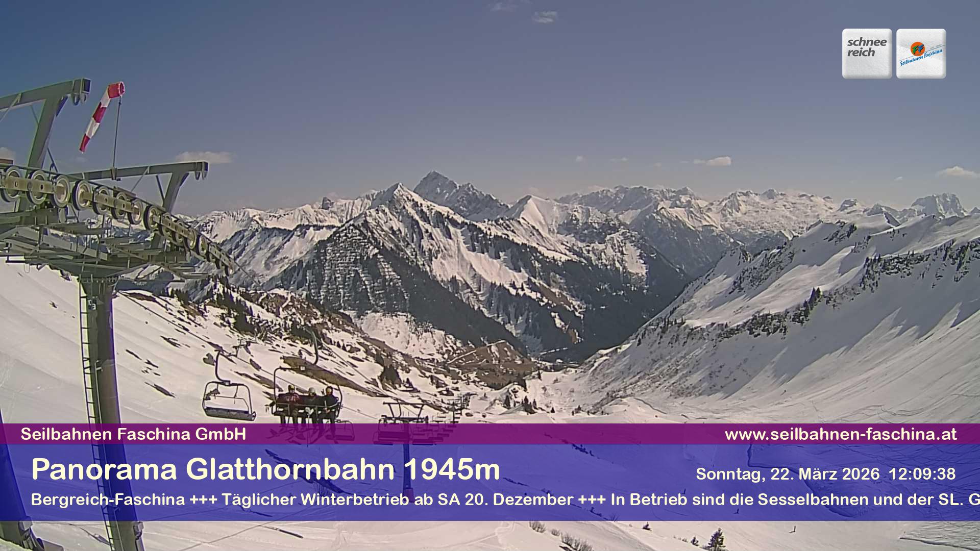 Damuels, Österreich - 4 km von Garlitt: Panocam Damüls - 'Die Livecam befindet sich auf dem Dach der Uga-Express-Bergstation, direkt neben dem Gasthaus Elsenalpstube – Ihrem Ausgangspunkt ins Schneereich bzw. Bergreich Damüls-Mellau. Die Livecam zeigt den Blick Richtung Damülser Mittagspitze und rundum das gesamte Bergpanorama von Damüls.
