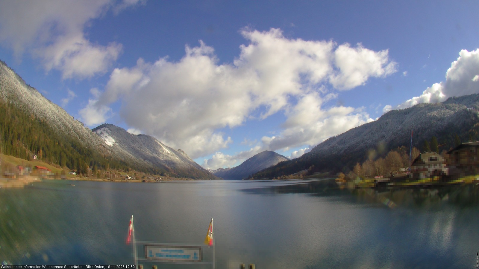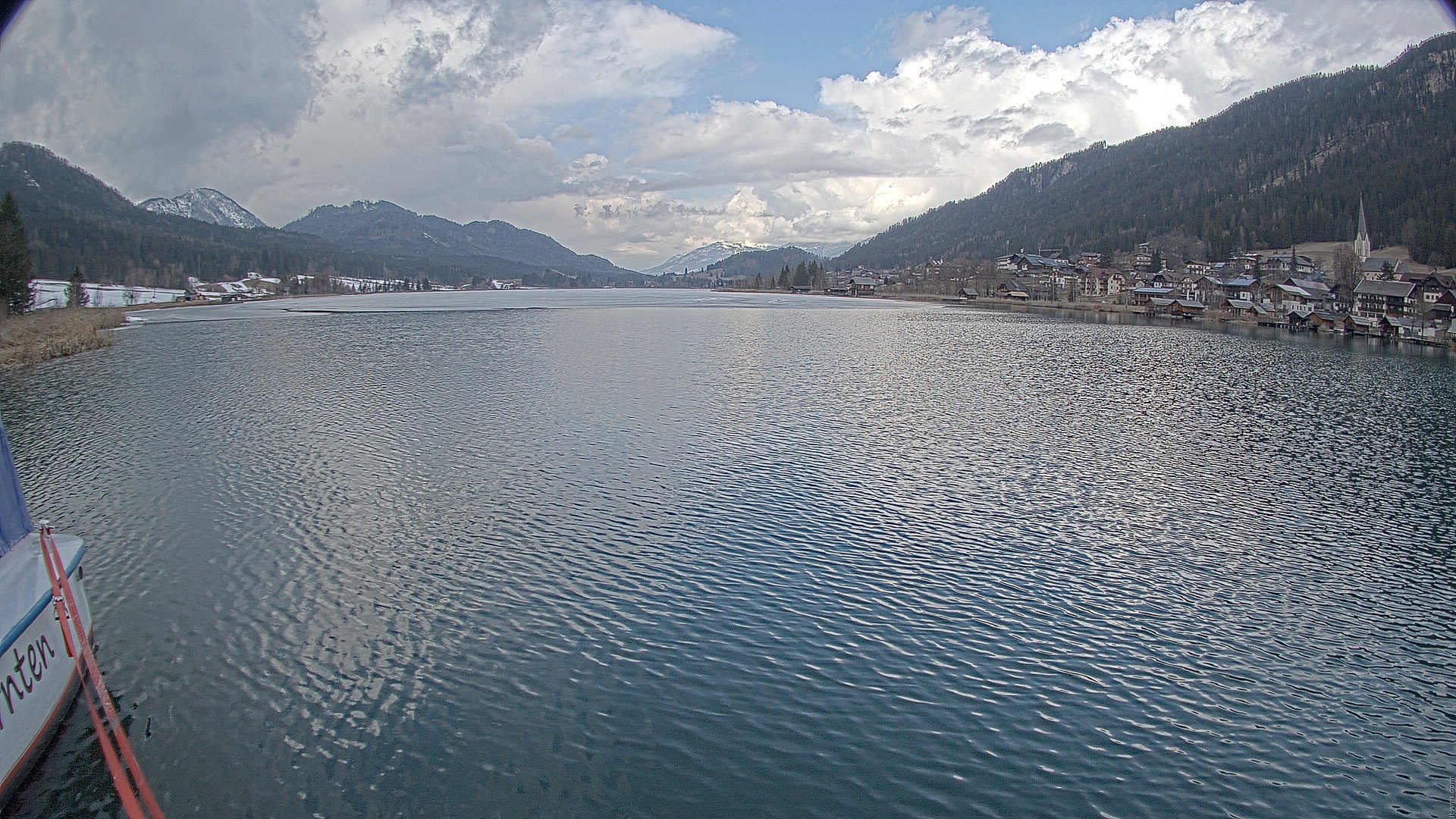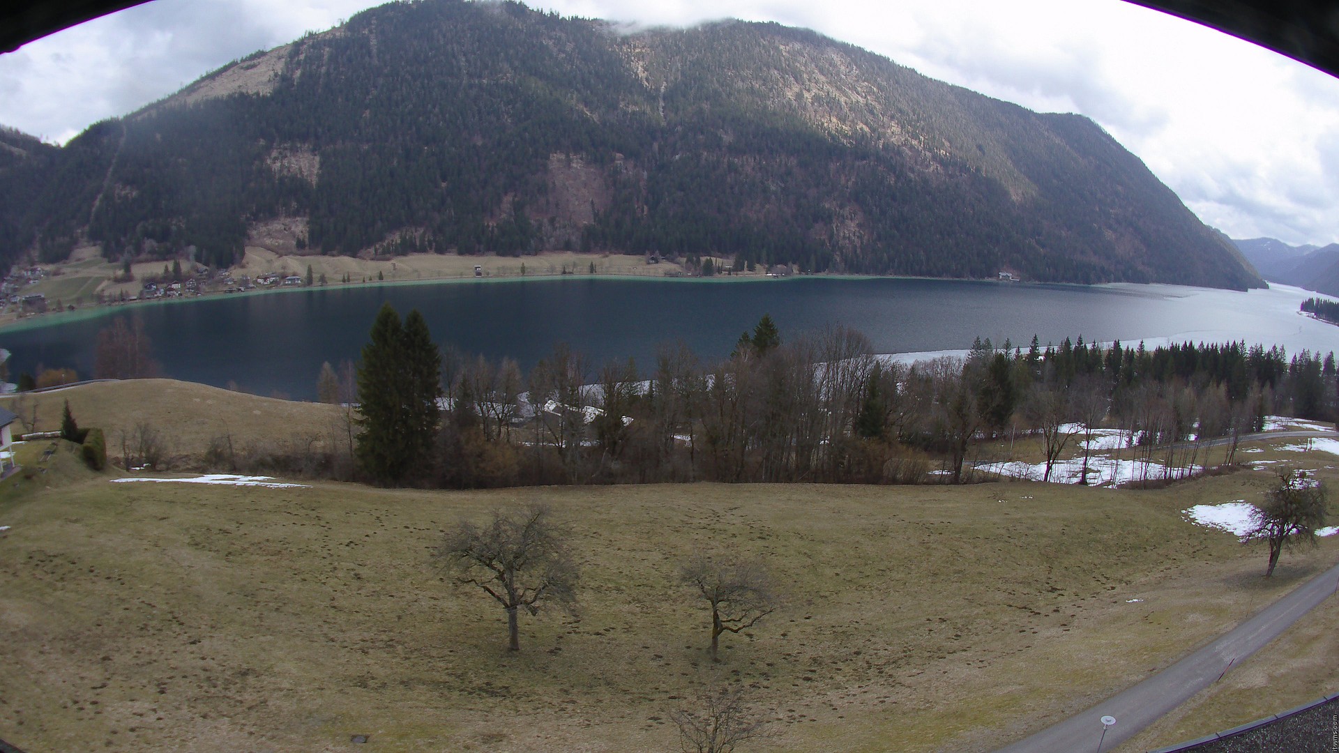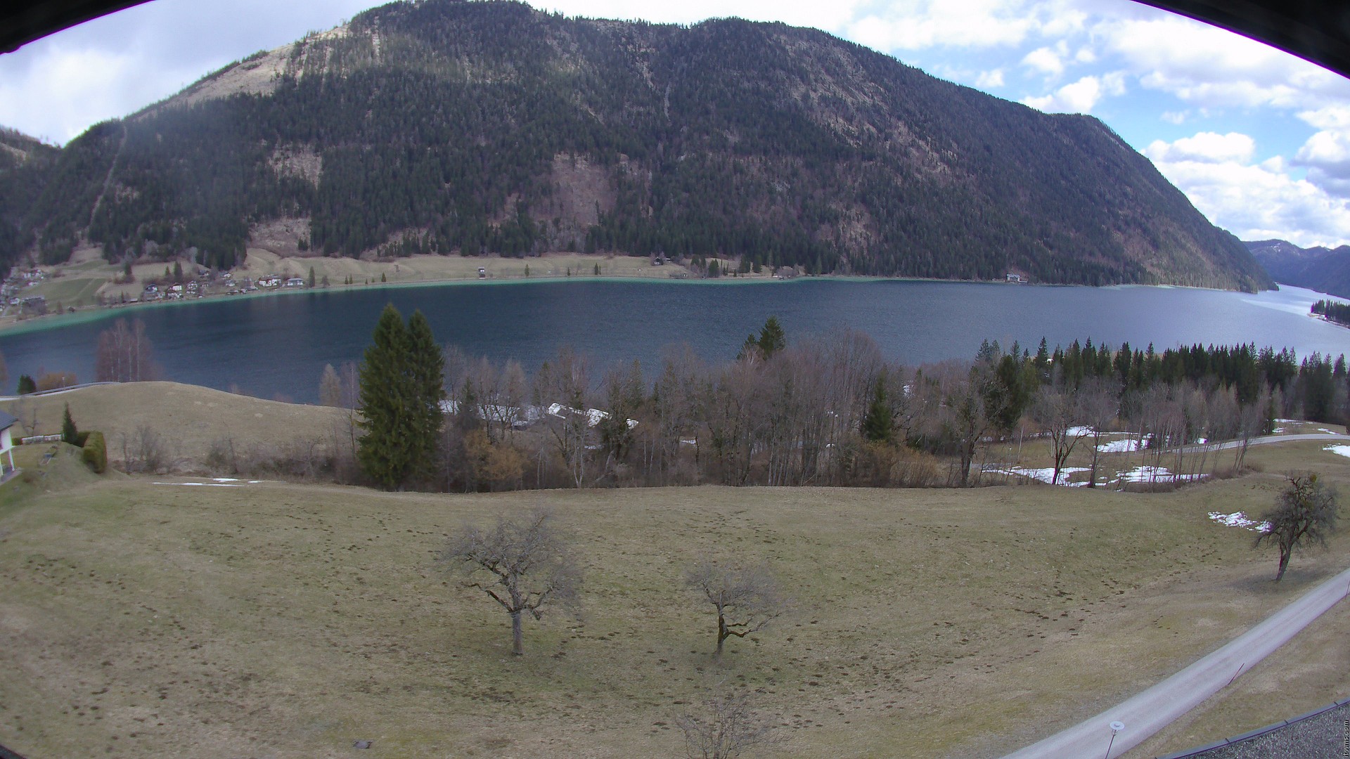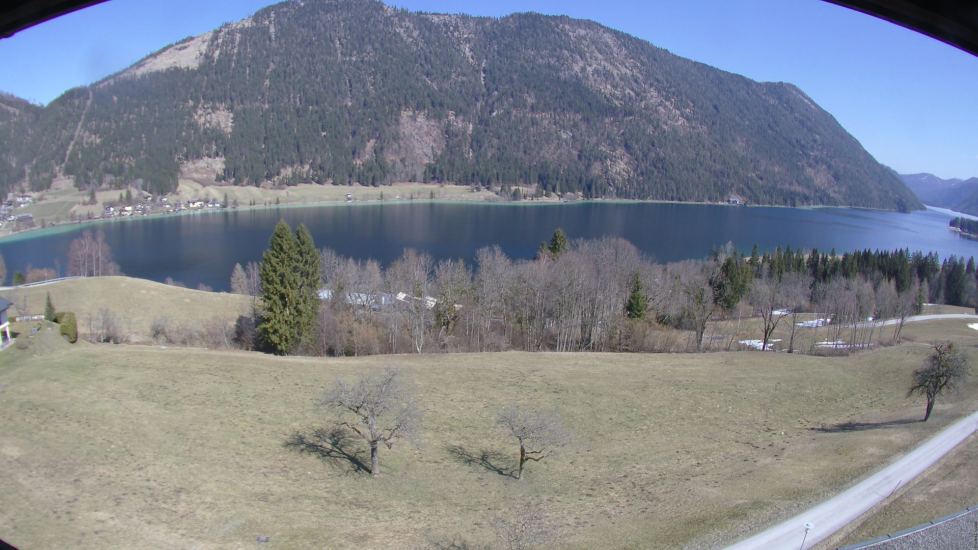 Weißensee, Österreich - 6.8 km von Gerlamoos: Panoramakamera Weissensee - Die Panorama-Livecam befindet sich auf ca. 1300 m Seehöhe am südlichen Seeteil und bietet den besten Blick von der Naggler Alm auf den Brückenbereich rund um das Zentrum Techendorf bis Neusach, sowie auf den Westteil des Weissensees. Die Bilder werden rund um die Uhr live und in HD Qualität übertragen.