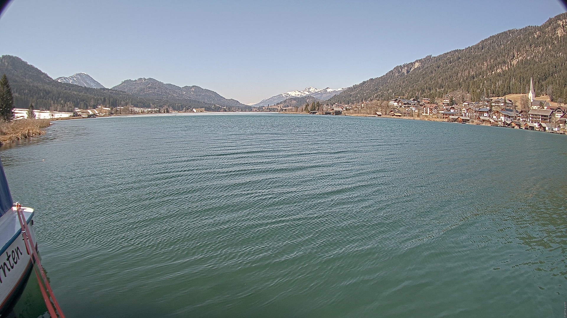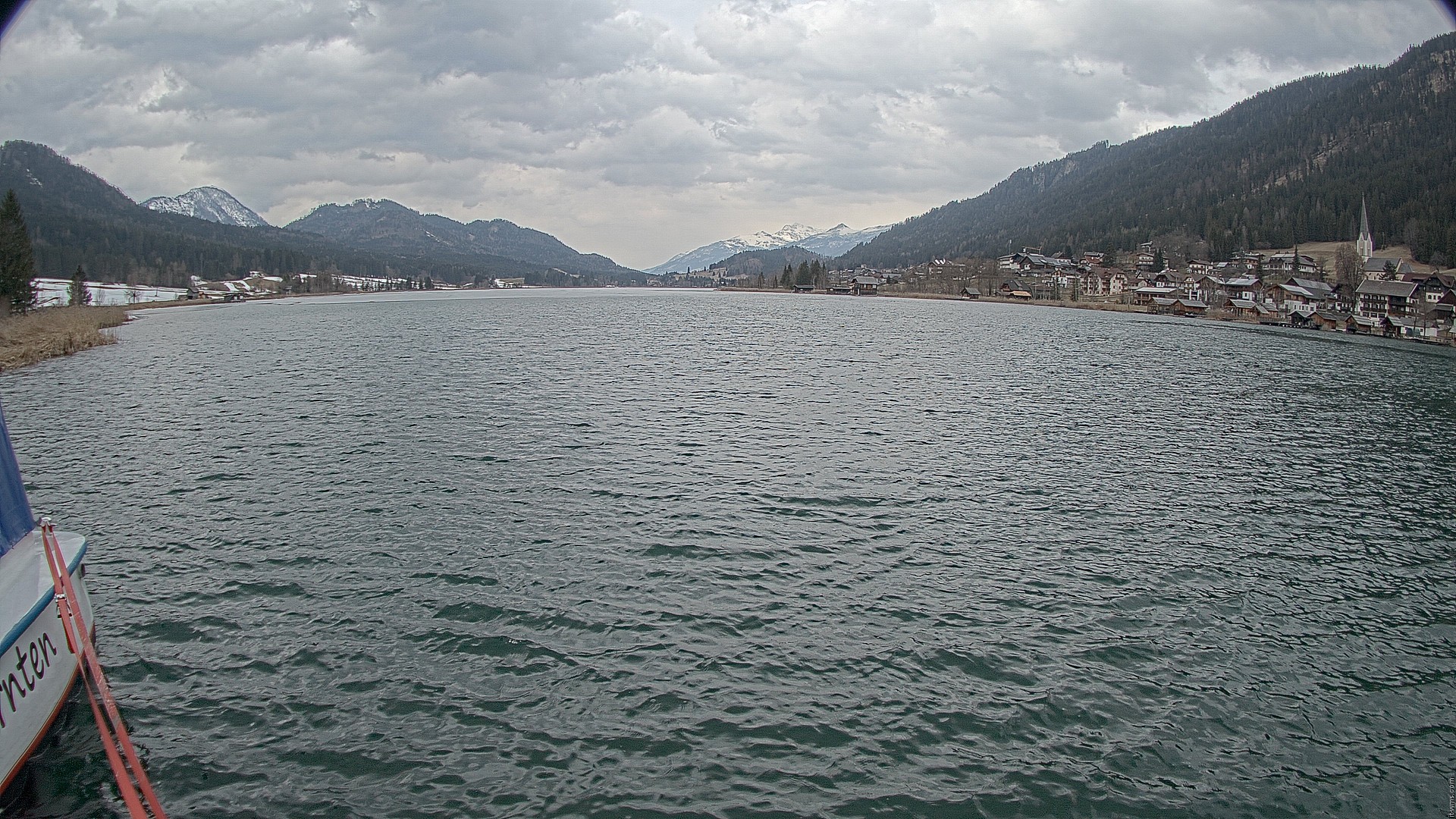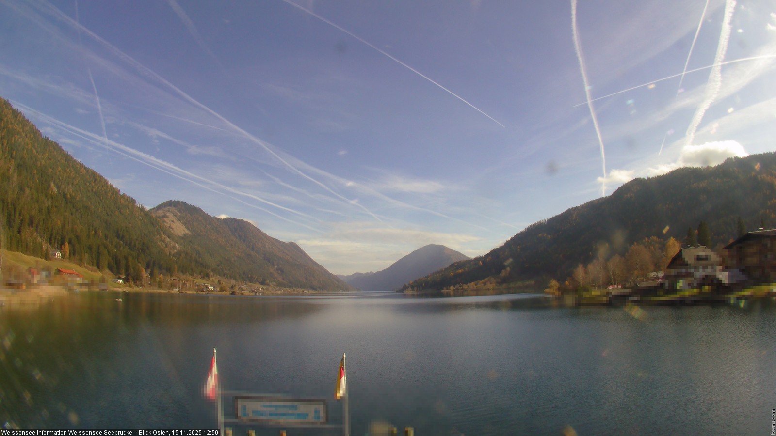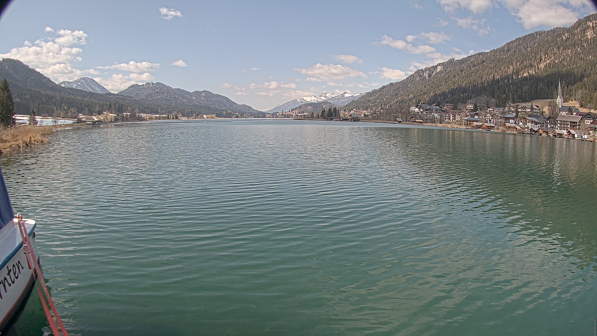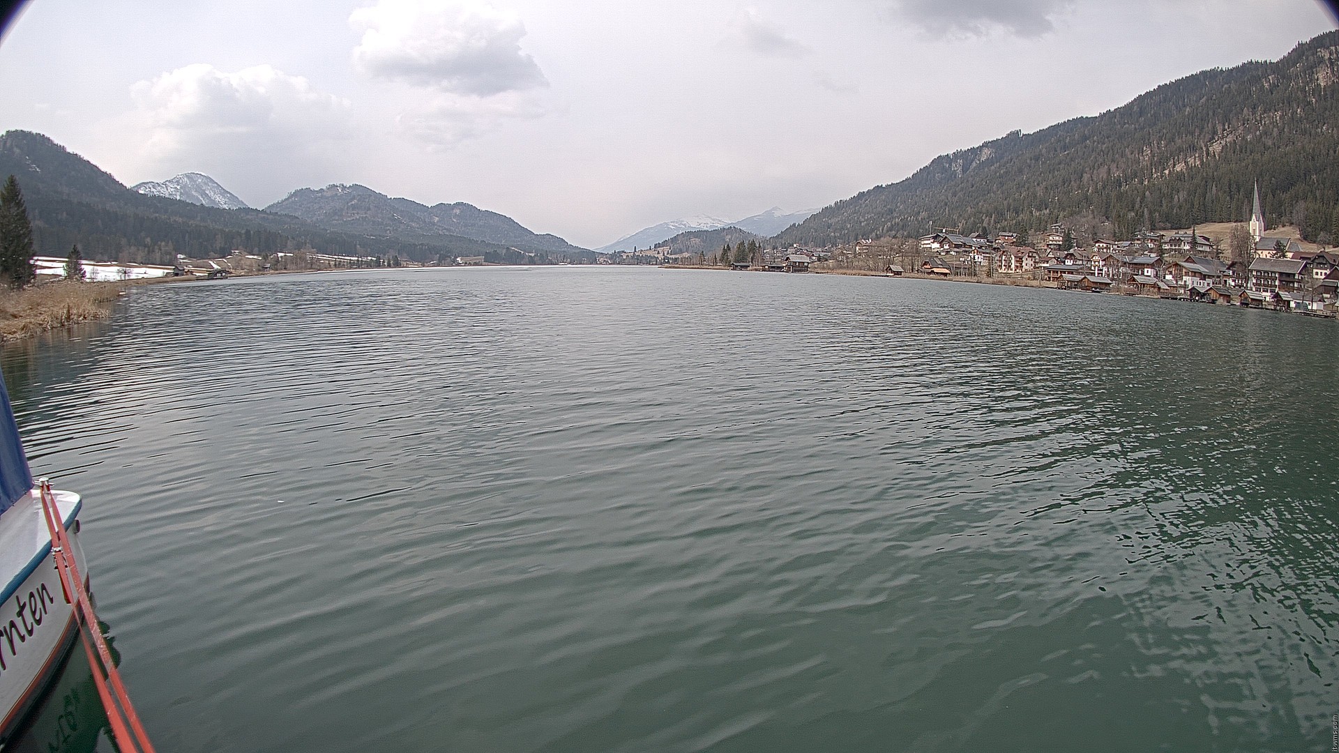 Weißensee, Österreich - 6.8 km von Gerlamoos: Panoramakamera Weissensee - Die Panorama-Livecam befindet sich auf ca. 1300 m Seehöhe am südlichen Seeteil und bietet den besten Blick von der Naggler Alm auf den Brückenbereich rund um das Zentrum Techendorf bis Neusach, sowie auf den Westteil des Weissensees. Die Bilder werden rund um die Uhr live und in HD Qualität übertragen.