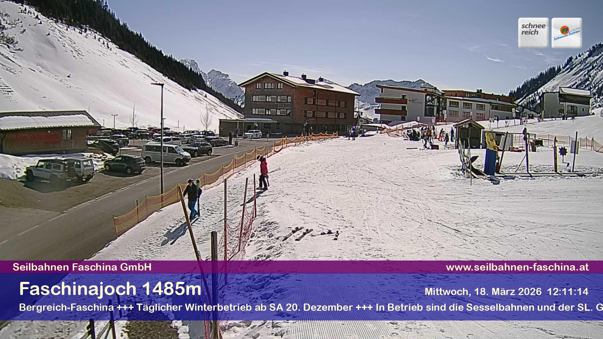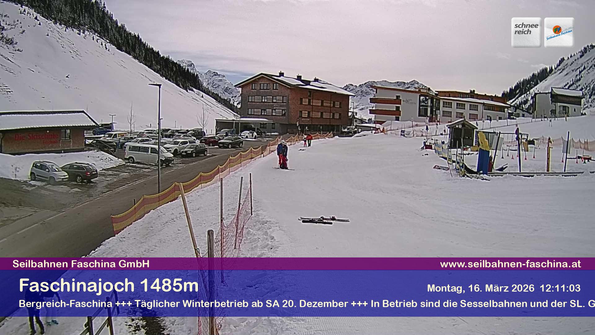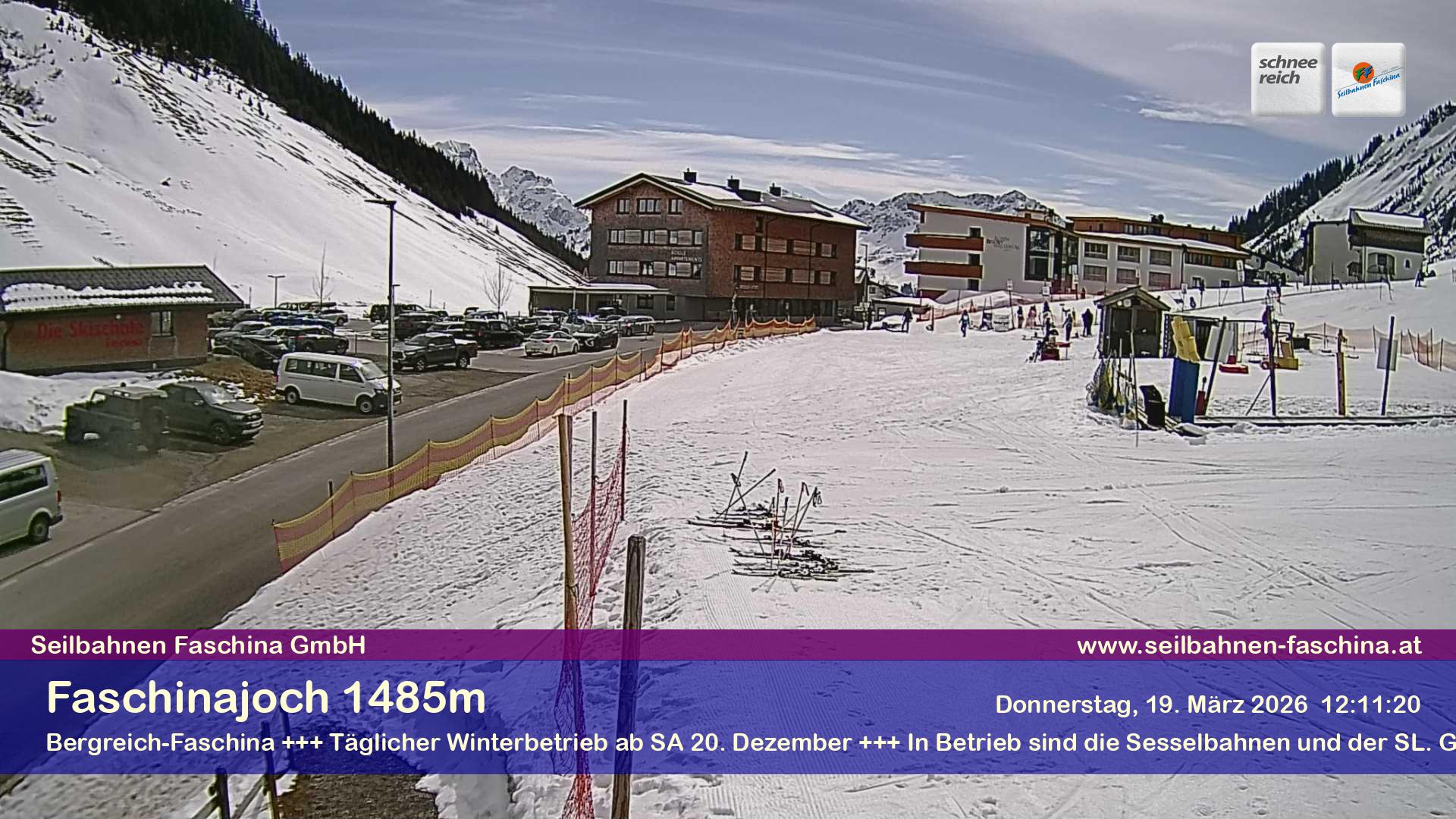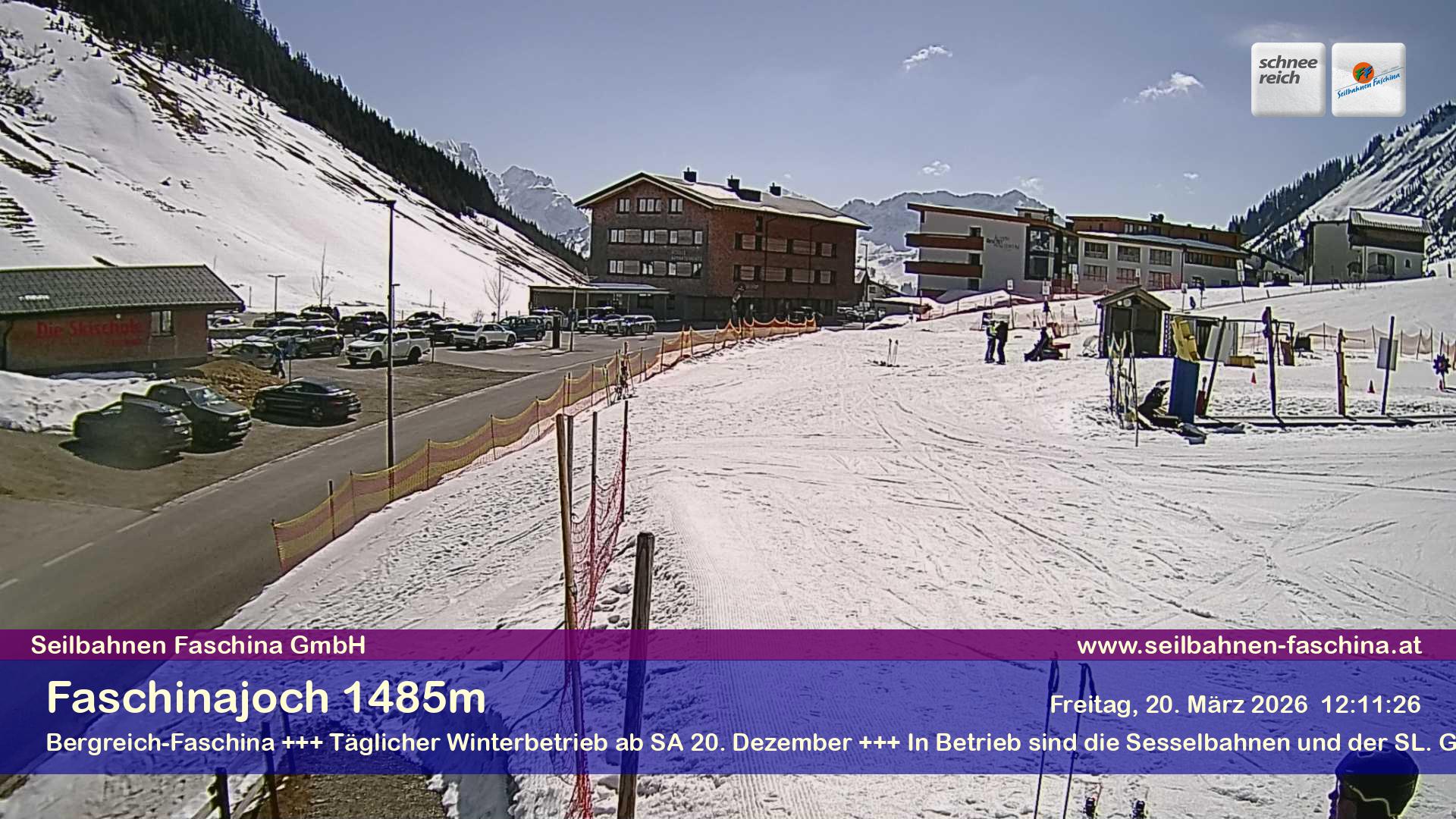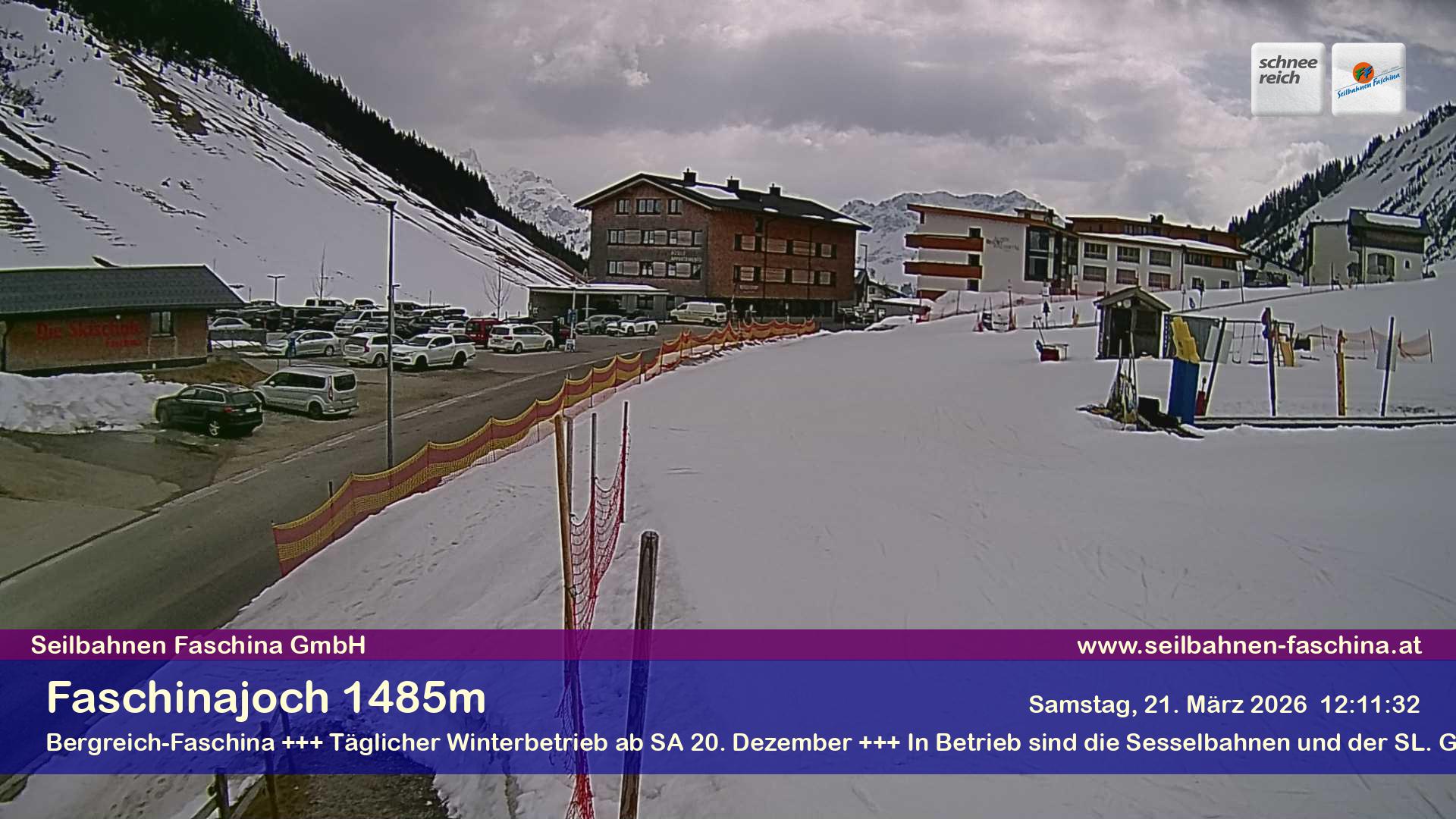Damuels, Österreich - 8.9 km von Hof: Panocam Damüls - 'Die Livecam befindet sich auf dem Dach der Uga-Express-Bergstation, direkt neben dem Gasthaus Elsenalpstube – Ihrem Ausgangspunkt ins Schneereich bzw. Bergreich Damüls-Mellau. Die Livecam zeigt den Blick Richtung Damülser Mittagspitze und rundum das gesamte Bergpanorama von Damüls.