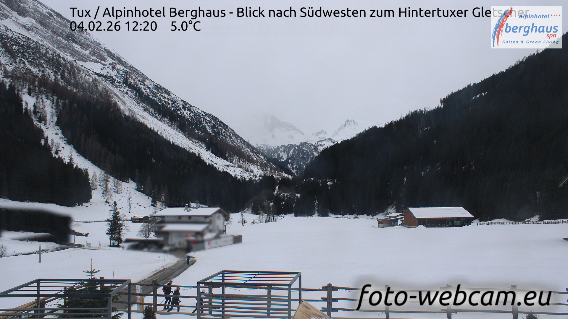 Tux, Österreich - 2.8 km von Junsberg: HD Foto-Webcam Alpinhotel Berghaus