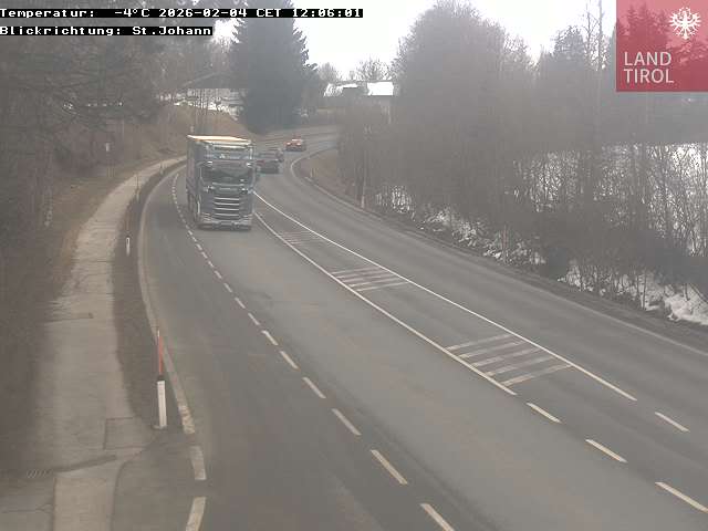 Stockach, Österreich - 4 km von Scheffau: B173, Eibergstraße - Ein Blick auf die aktuelle Verkehrssituation in Stockach in Richtung St.Johann. B173 km 0.7.