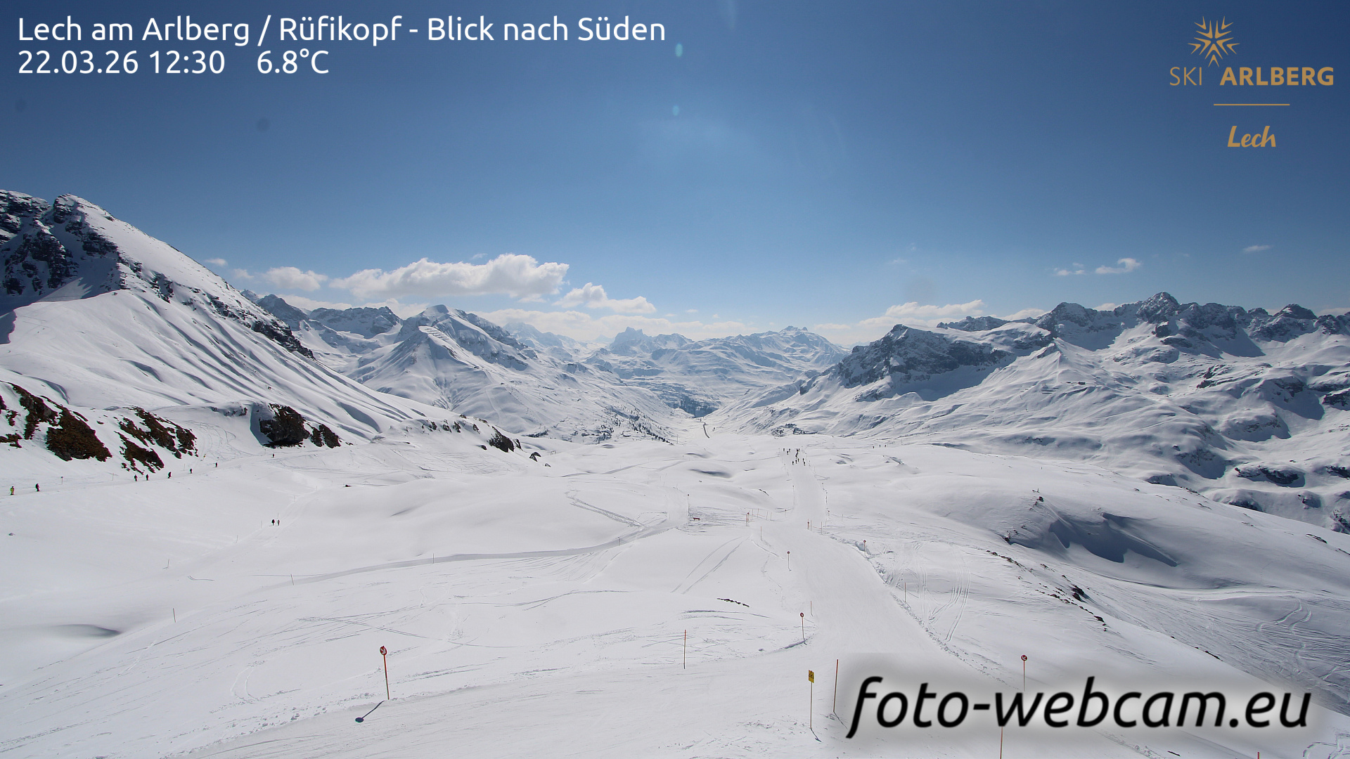 Lech am Arlberg, Österreich - 1.1 km von Tannberg: HD Foto-Webcam Lech Rüfikopf