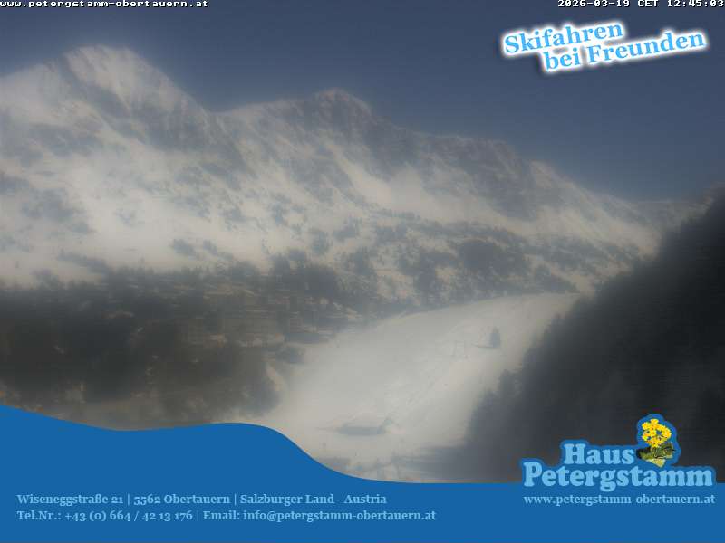 Obertauern, Österreich - 8 km von Tweng: Haus Petergstamm - Die Webcam bietet einen einzigartigen Überblick über Obertauern von der Webcam des Haus Petergstamm, von Plattenkar über Schaidberg , Kirchbühel und Zehnerkar, bis Obertauern, Pistenverhältnisse in Obertauern bestens zu erkennen.