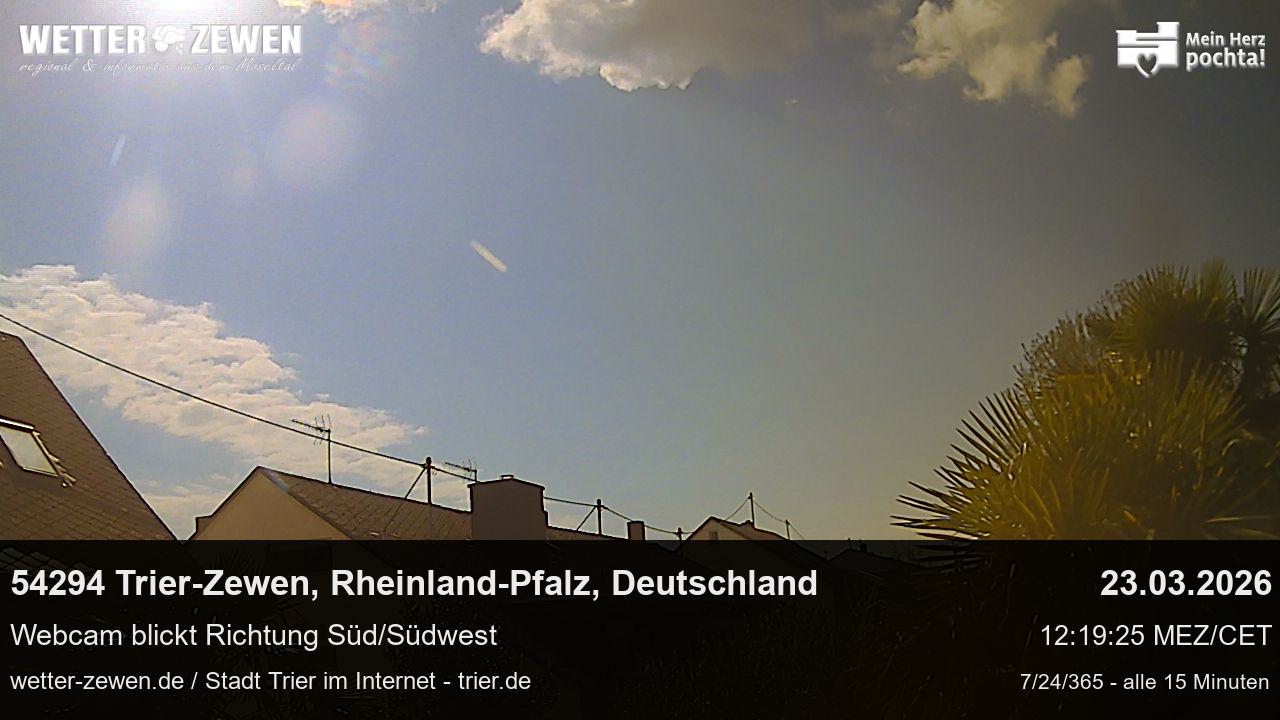 Trier, Deutschland - 70 km von Geisbourg: Wetter Kamera Trier-Zewen (54294) - Wetterkamera im Südwestlichen Stadtteil von Trier im Moseltal am Zusammenfluss von Mosel und Saar nahe Luxembourg.