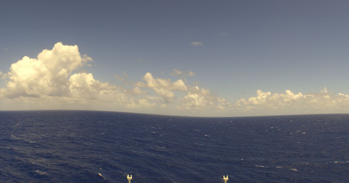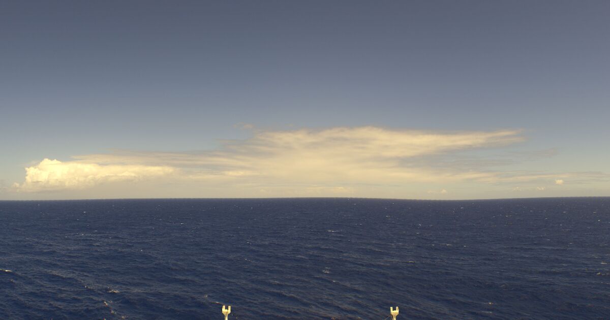 - Werfen Sie einen Blick von der Brücke des Kreuzfahrtschiffes Norwegian Pearl auf die See.