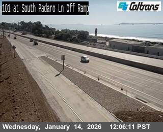 Carpinteria, California, USA - 126.7 km von ARroyo Trailer Park: Verkehr US101- South Padaro Lane Off Ramp