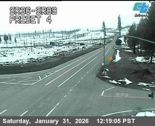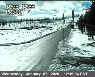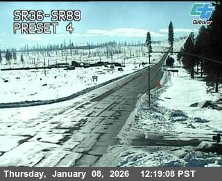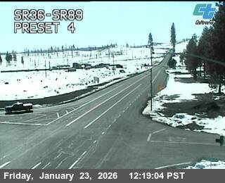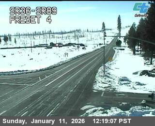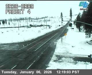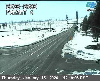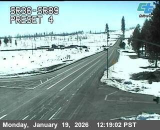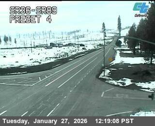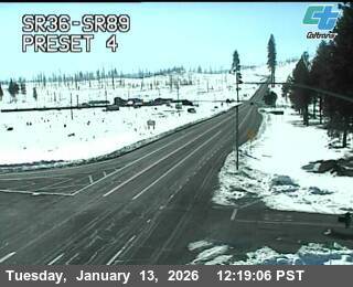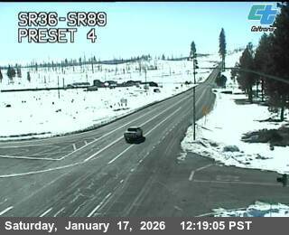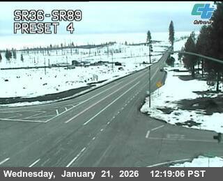 Lassen Volcanic National Park, California, USA - 39.1 km von Almanor: Kohm Yah-mah-nee Visitor Center - Ein Blick vom Kohm Yah-mah-nee Visitor Center im Lassen Volcanic National Park Richtung Mt. Diller (links) und Pilot Pinnacle (rechts).