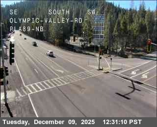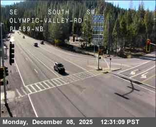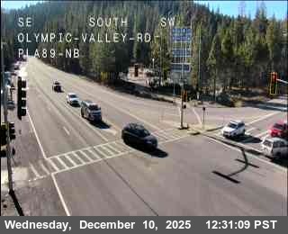 Squaw Valley, California, USA - 2.2 km von Alpine Meadows: Verkehr Hwy 89 at Olympic Valley