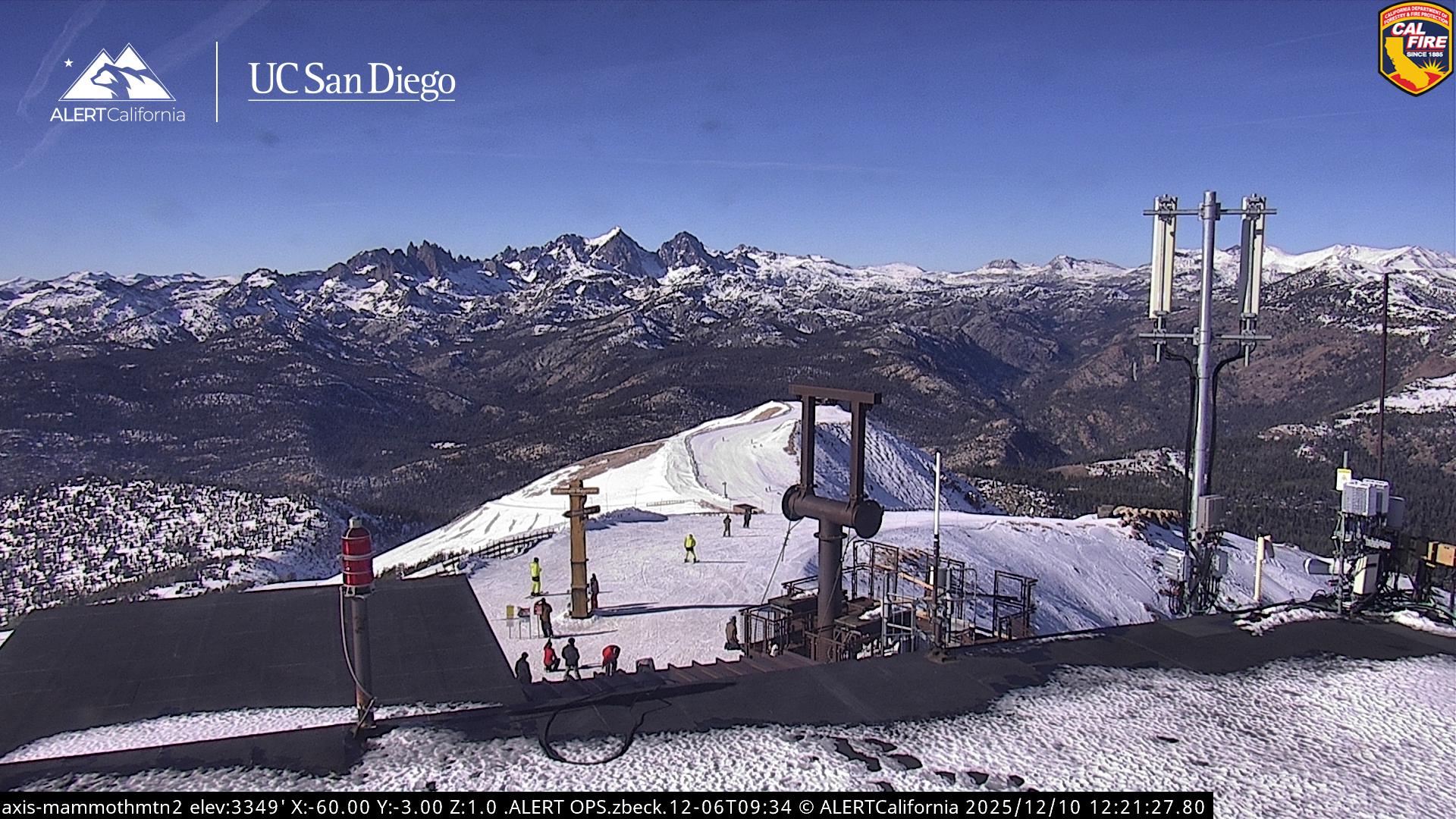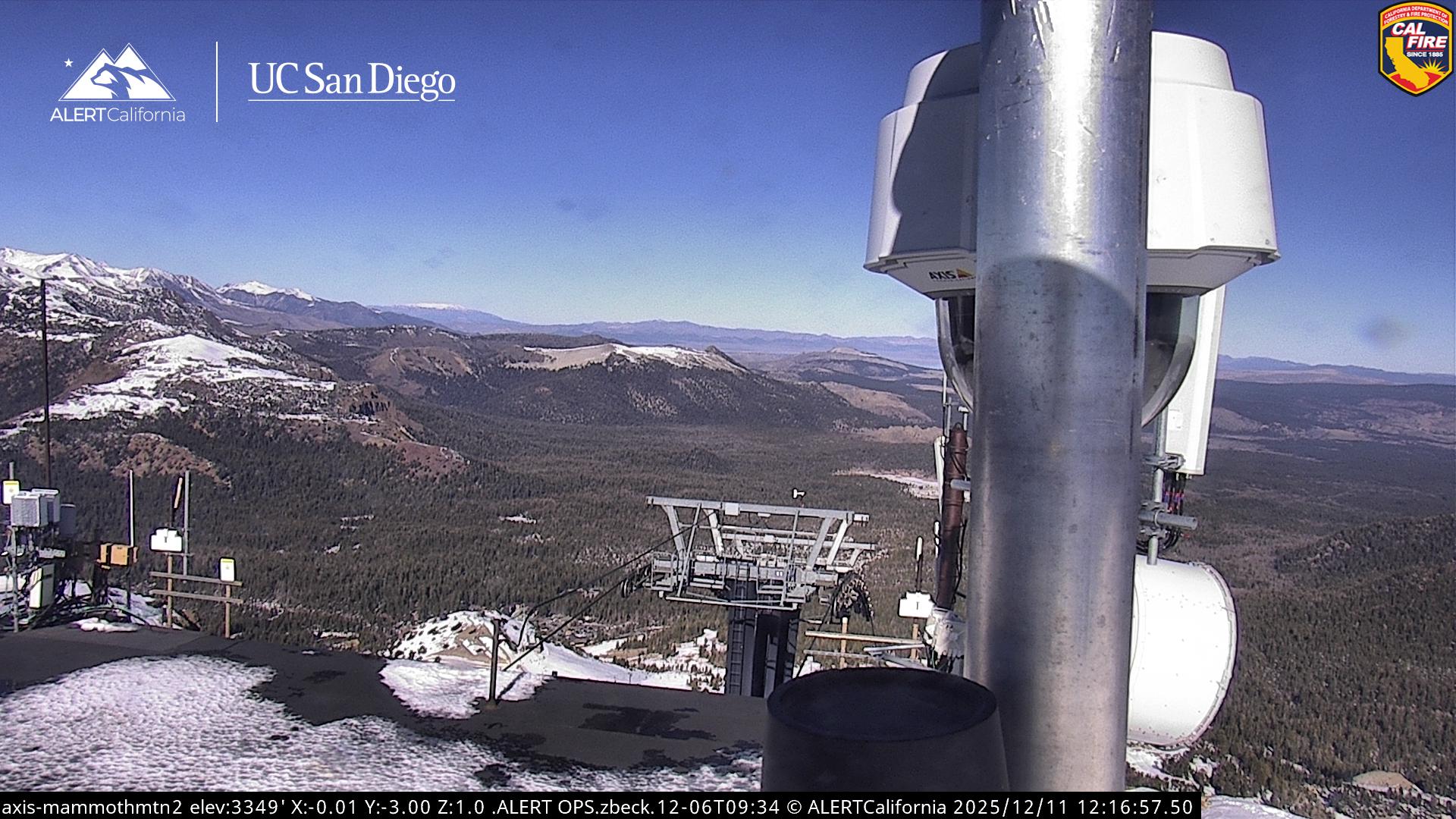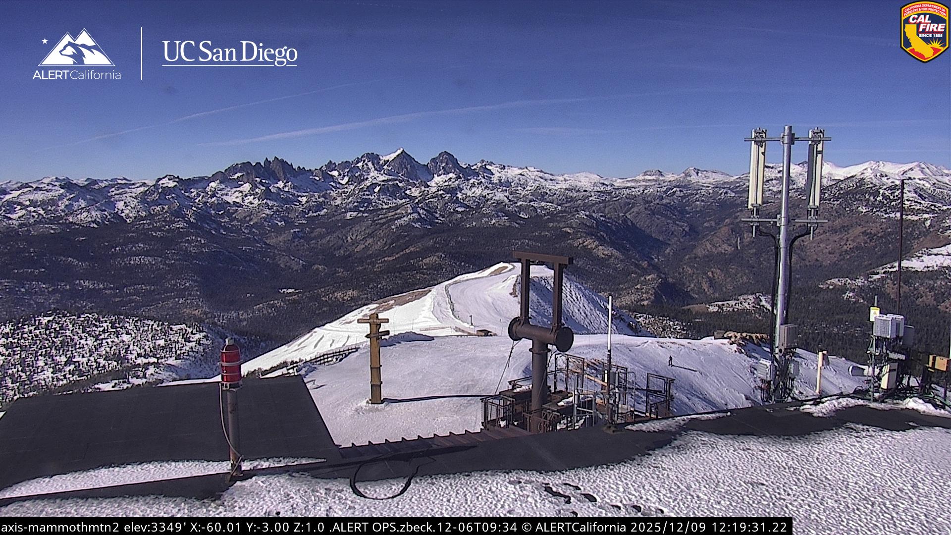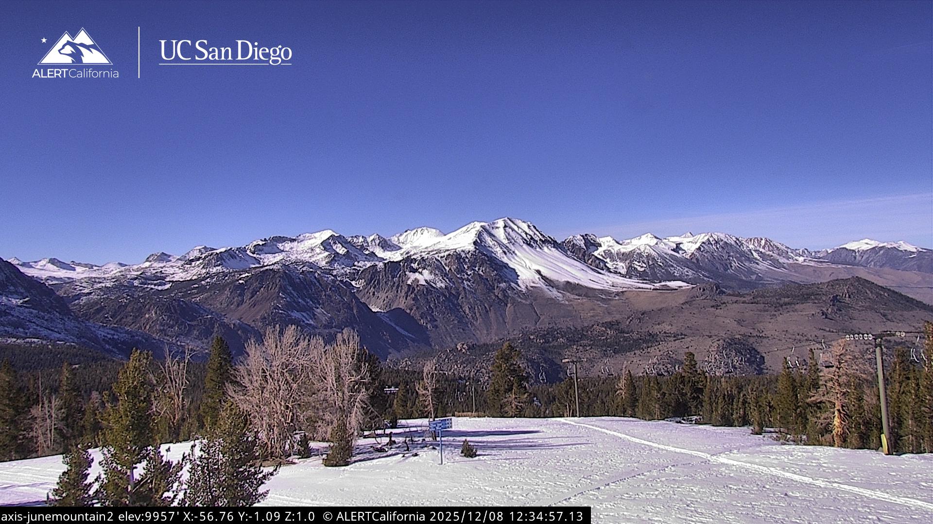 - Steuerbare Webcam am Dodge Ridge Ski Resort mit Blick auf die aktuellen Schneebedingungen.