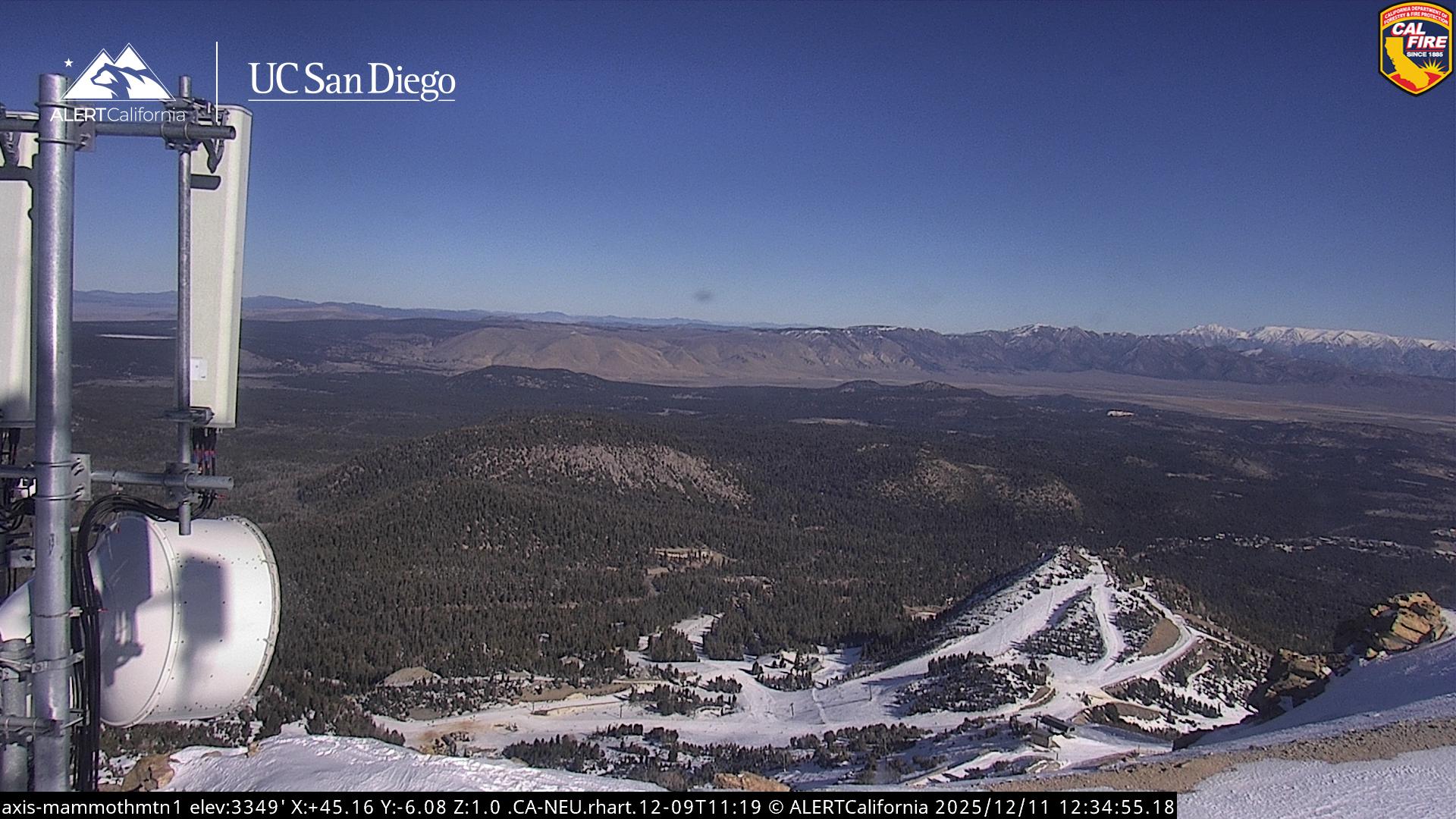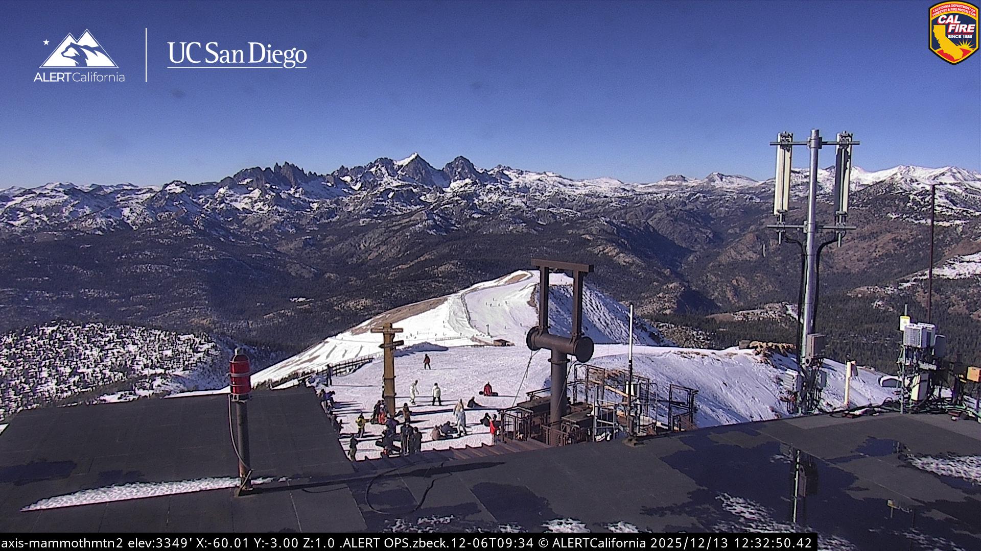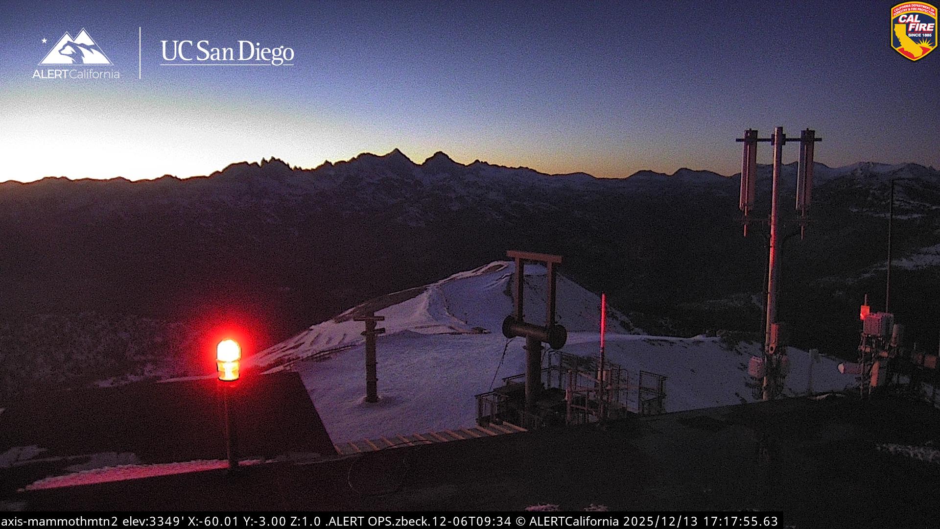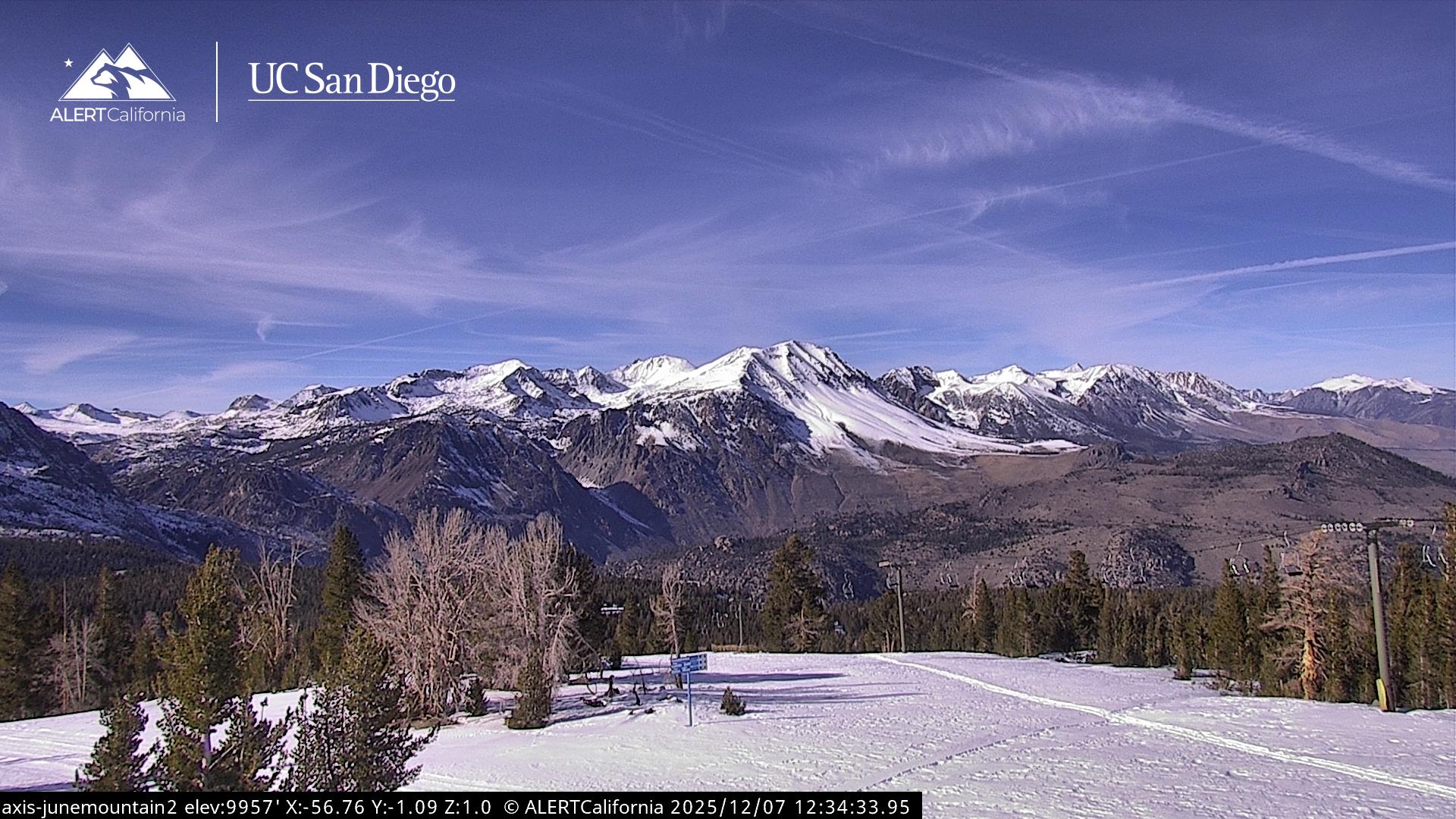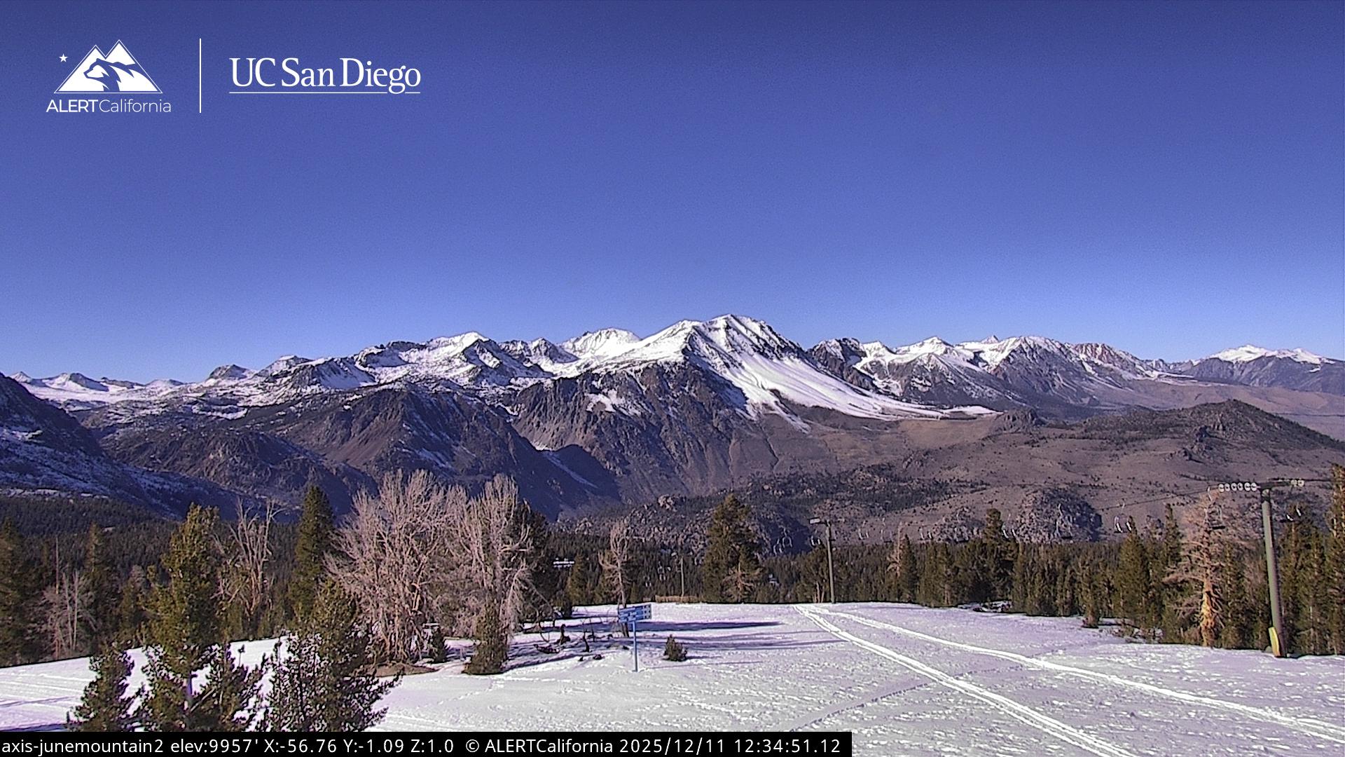 - Steuerbare Webcam am Dodge Ridge Ski Resort mit Blick auf die aktuellen Schneebedingungen.