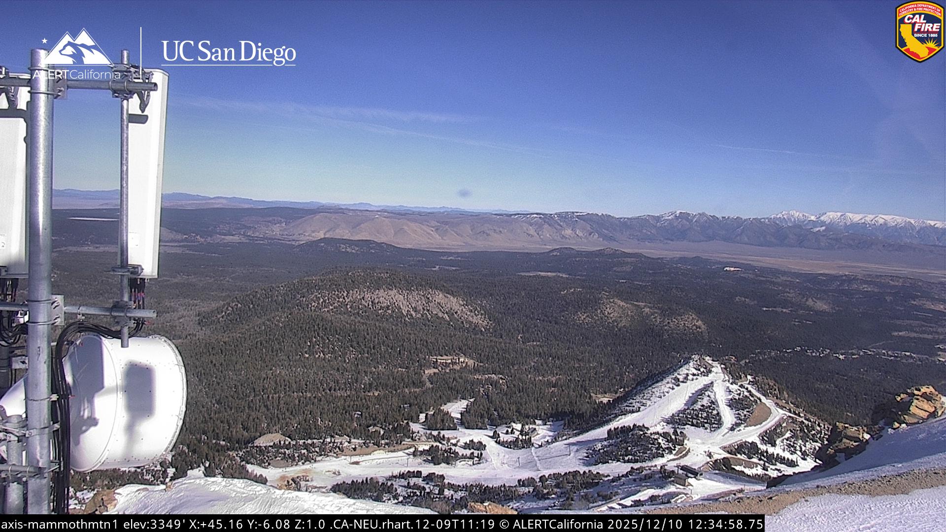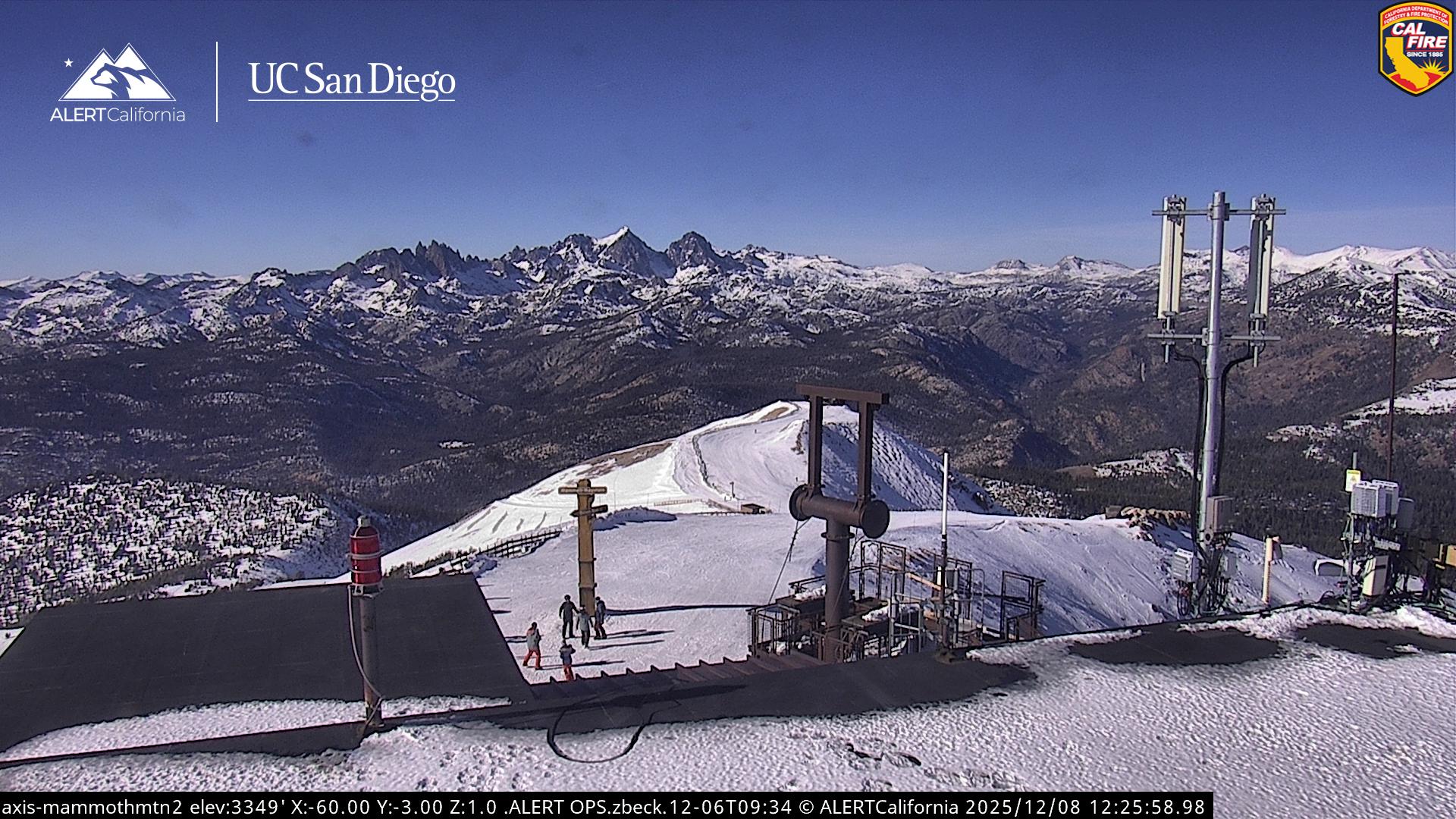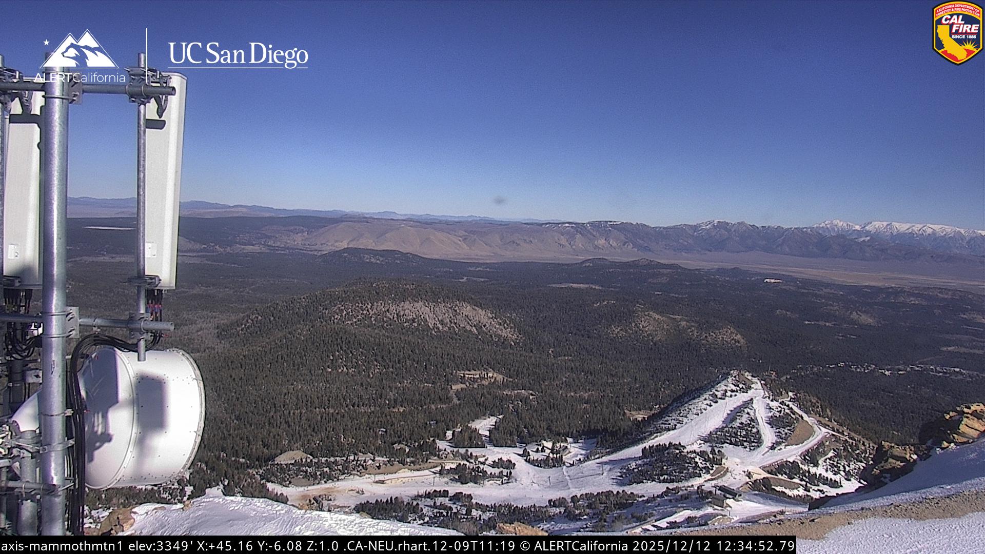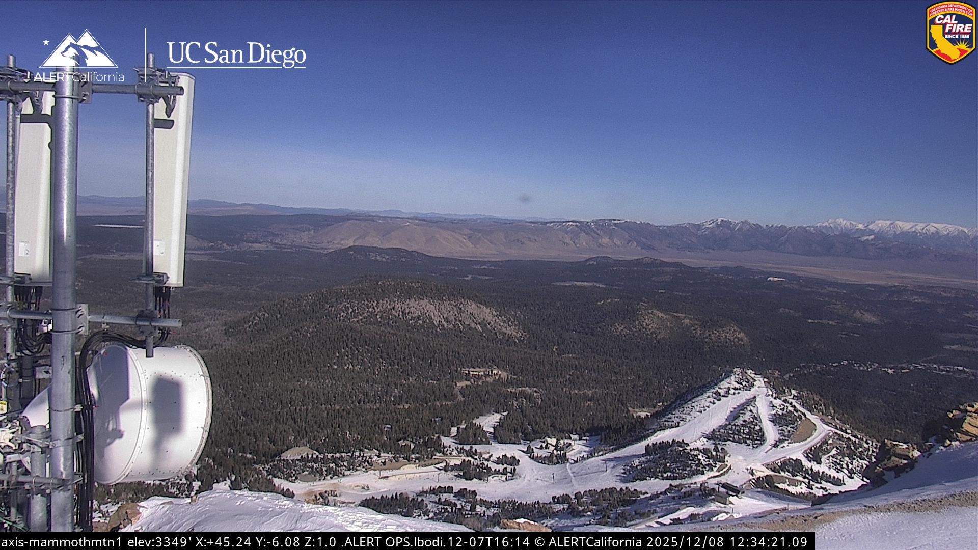 - Steuerbare Webcam am Dodge Ridge Ski Resort mit Blick auf die aktuellen Schneebedingungen.