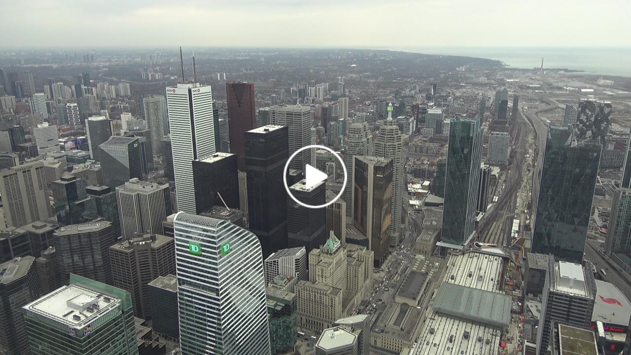 - Ein Blick nach Westen und ein Blick nach Osten vom CN Tower in Toronto.