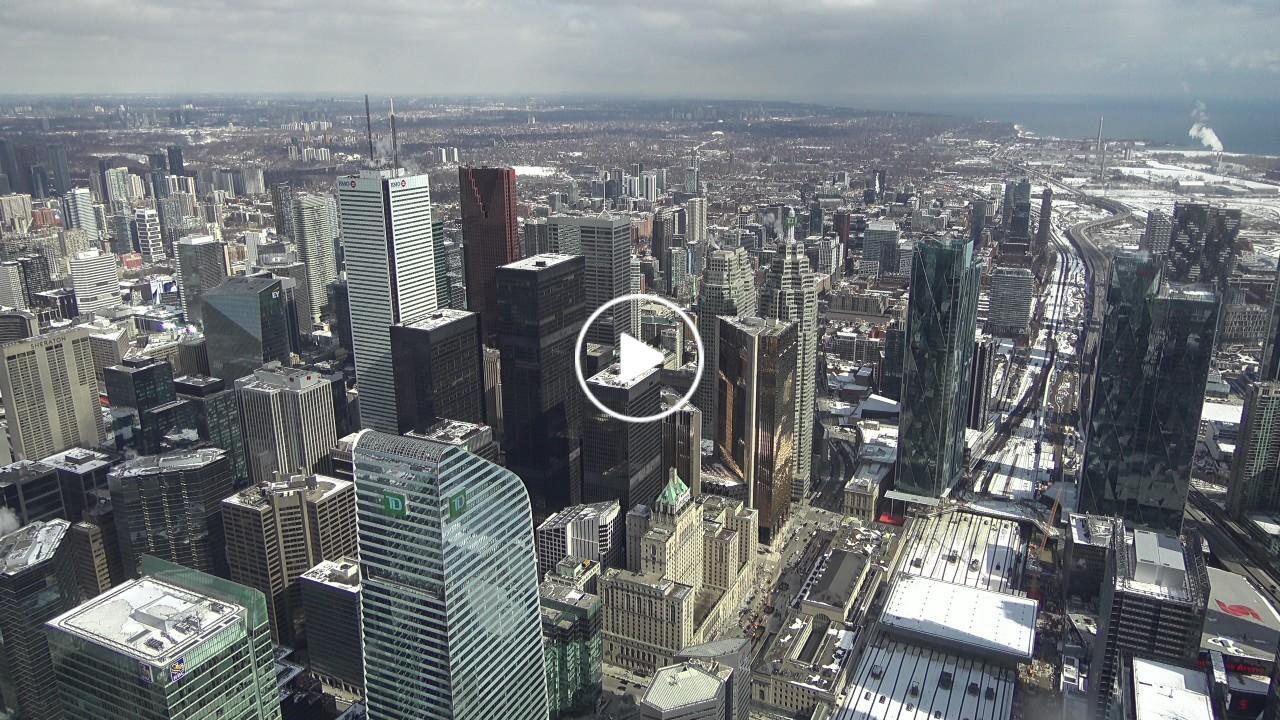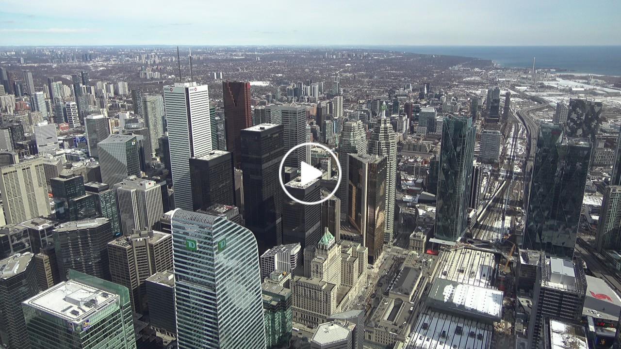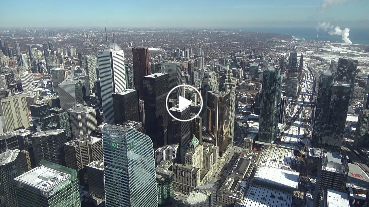 - Ein Blick nach Westen und ein Blick nach Osten vom CN Tower in Toronto.