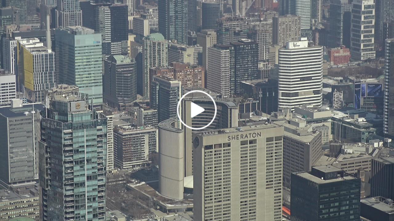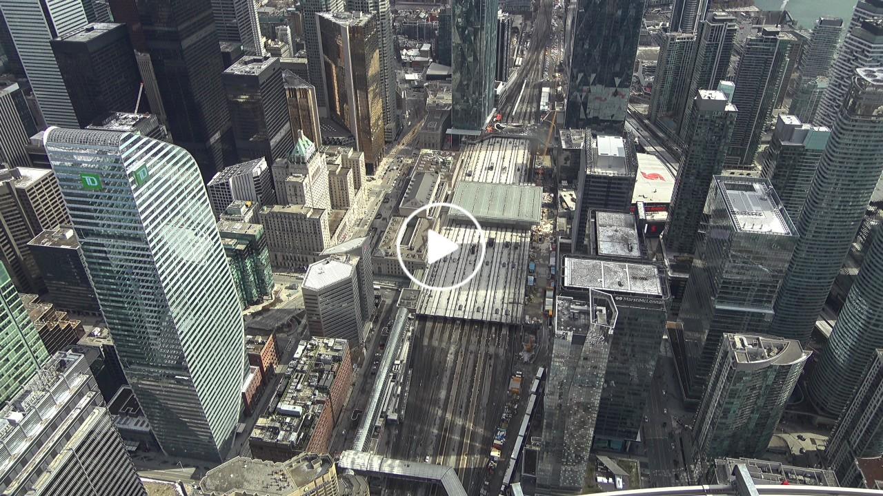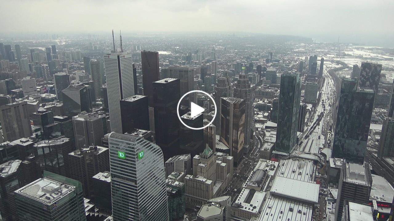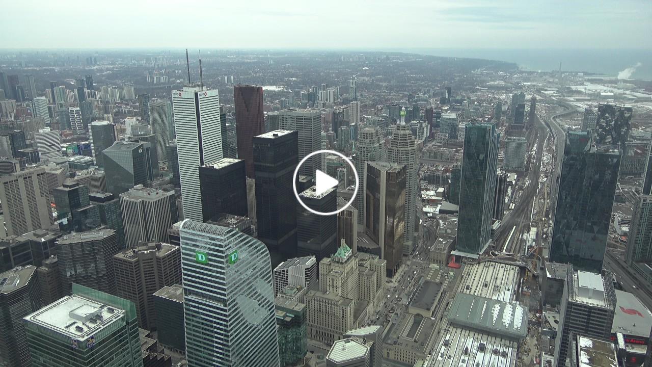 - Ein Blick nach Westen und ein Blick nach Osten vom CN Tower in Toronto.
